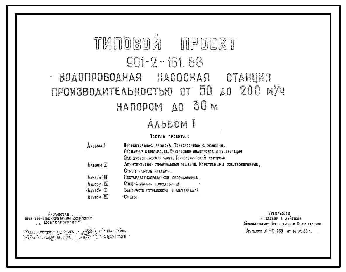 Типовой проект 901-2-161.88 Водопроводная насосная станция производительностью от 50 до 200 м3/ч напором до 30 м