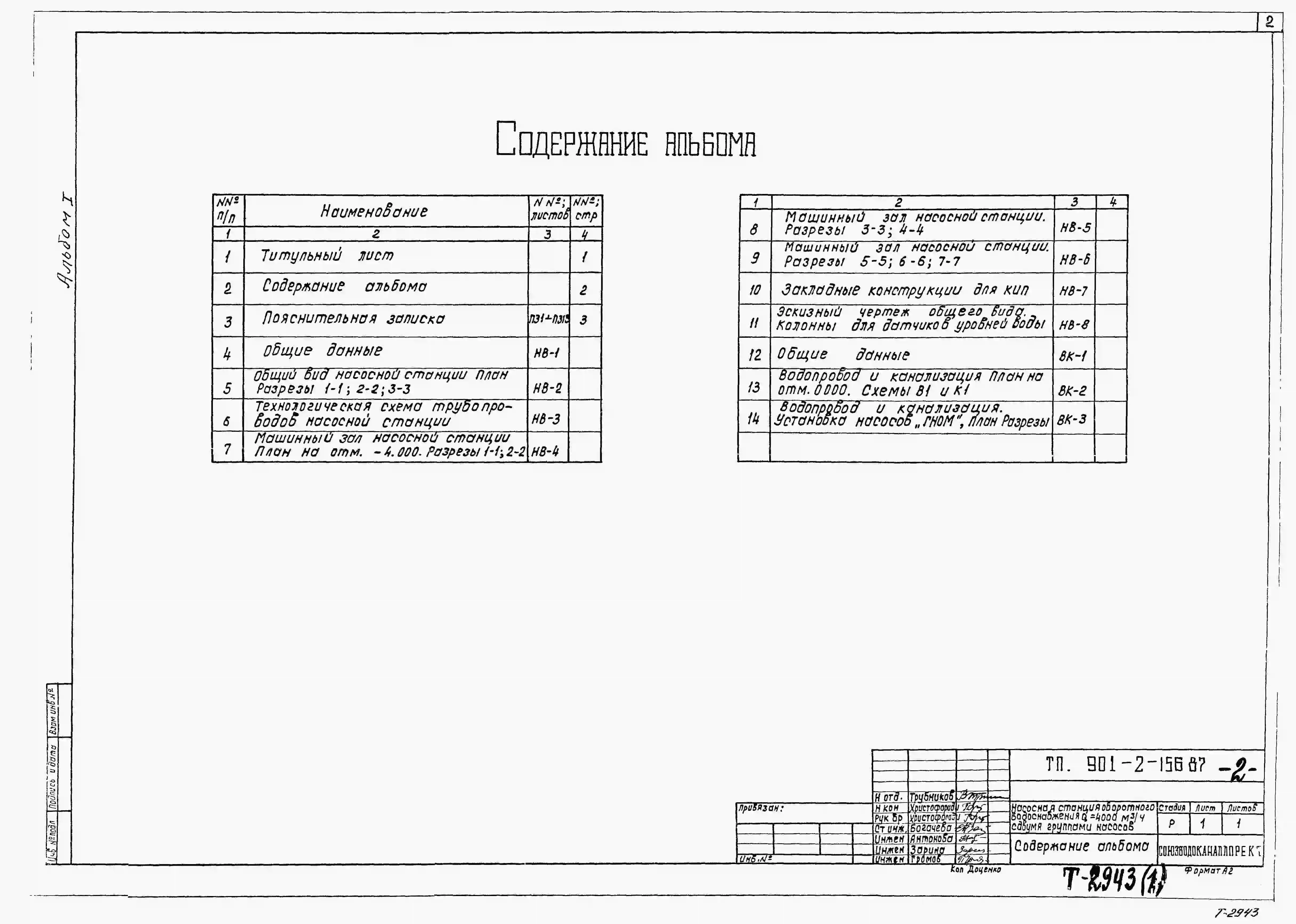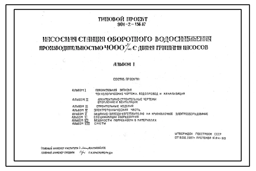 Типовой проект 901-2-156.87 Насосная станция оборотного водоснабжения производительностью 2000 м.куб/час с двумя группами насосов и установкой по обработке охлаждающей воды