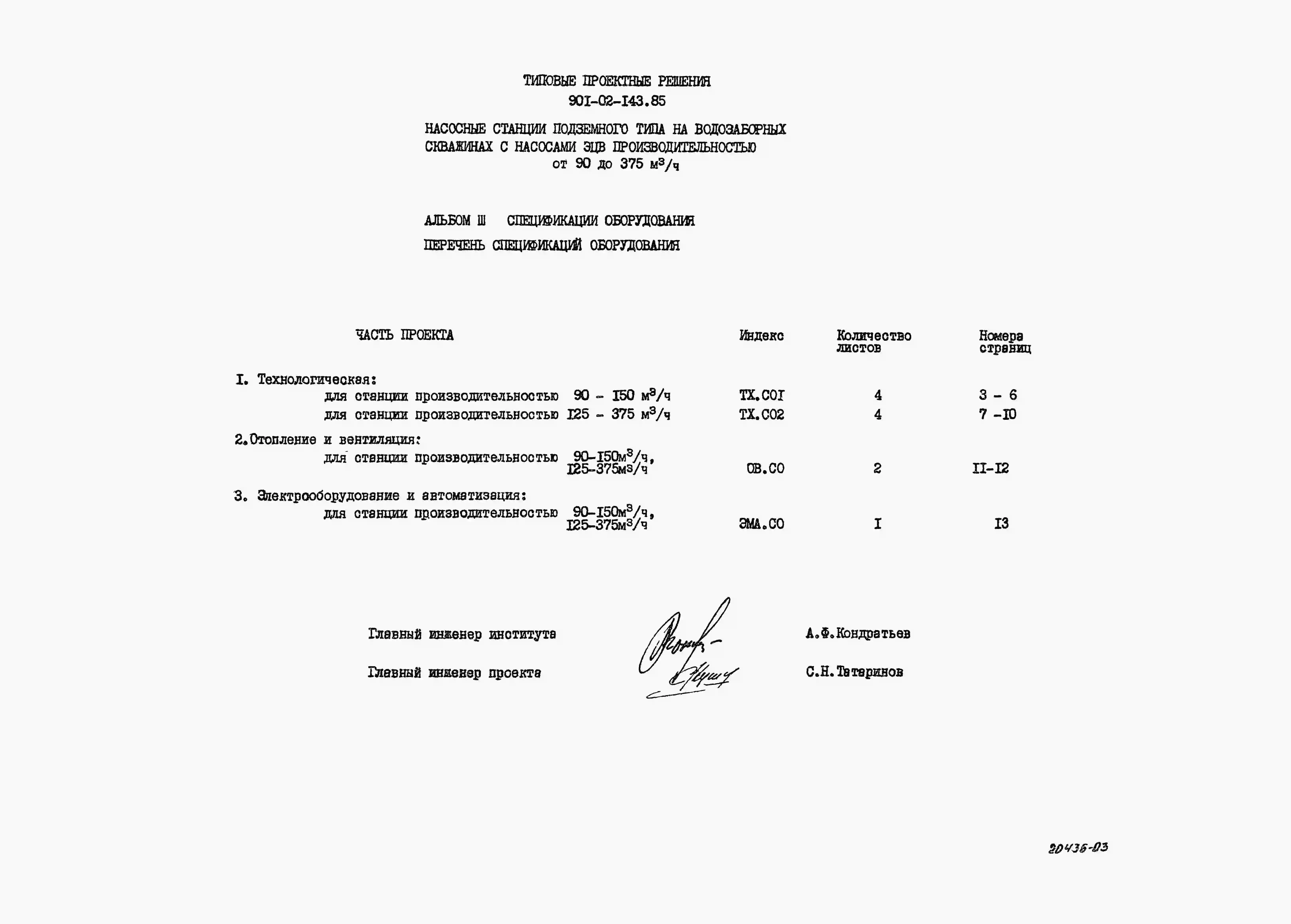Типовой проект 901-02-143.85 Насосные станции подземного типа на водозаборных скважинах с насосами ЭЦВ производительностью от 90 до 375 м3/ч