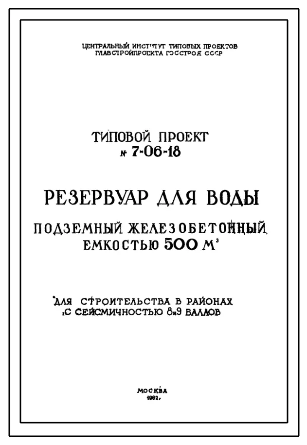 Типовой проект 7-06-18 Резервуар цилиндрический для воды подземный железобетонный монолитный емкостью 500 м.куб. для строительства в районах с сейсмичностью 8 и 9 баллов