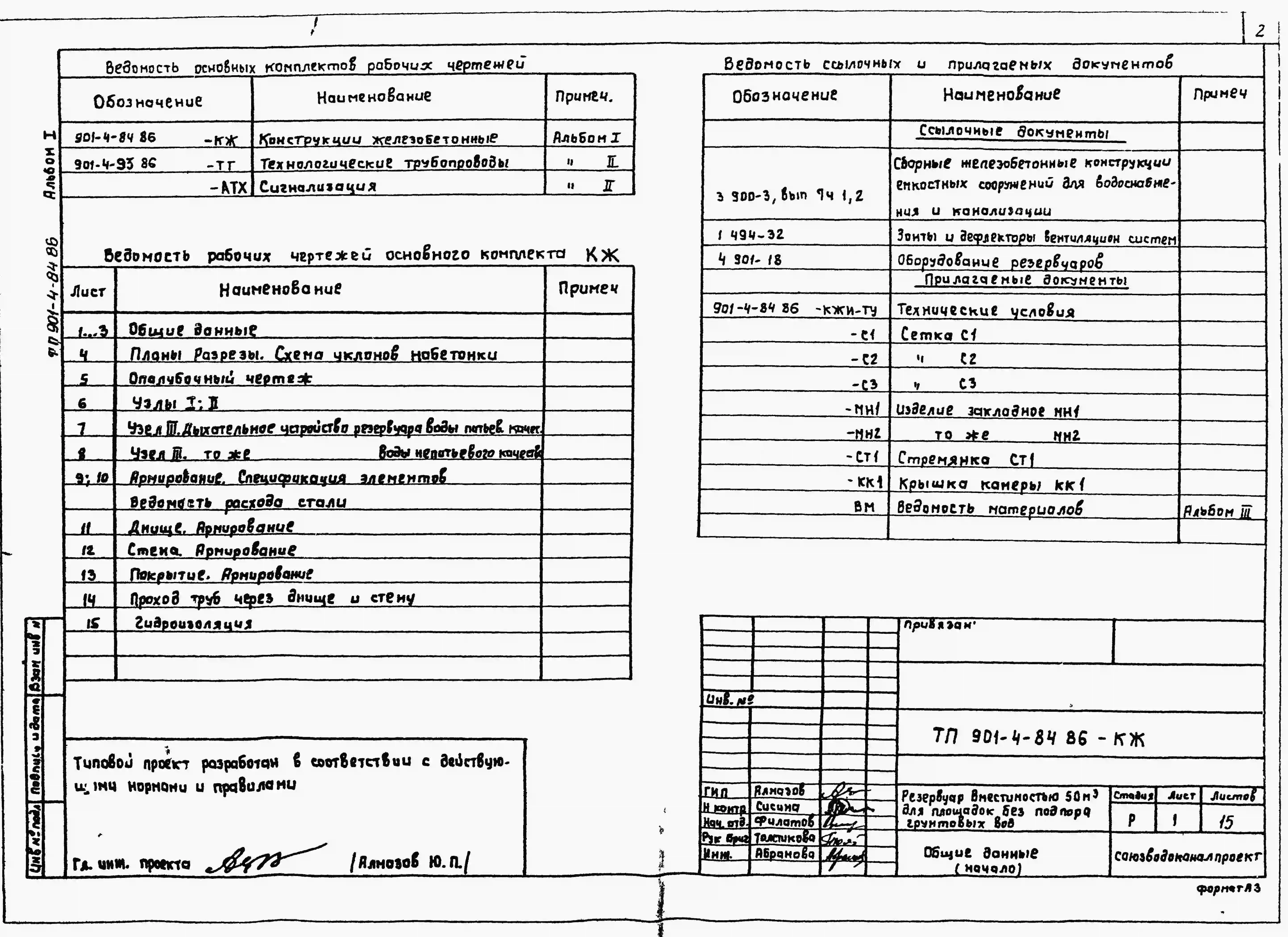 Типовой проект 901-4-84.86 РЕЗЕРВУАР ДЛЯ ВОДЫ ЦИЛИНДРИЧЕСКИЙ ЖЕЛЕЗОБЕТОННЫЙ МОНОЛИТНЫЙ ВМЕСТИМОСТЬЮ 50 М3 ДЛЯ ПЛОЩАДОК БЕЗ ПОДПОРА ГРУНТОВЫХ ВОД
