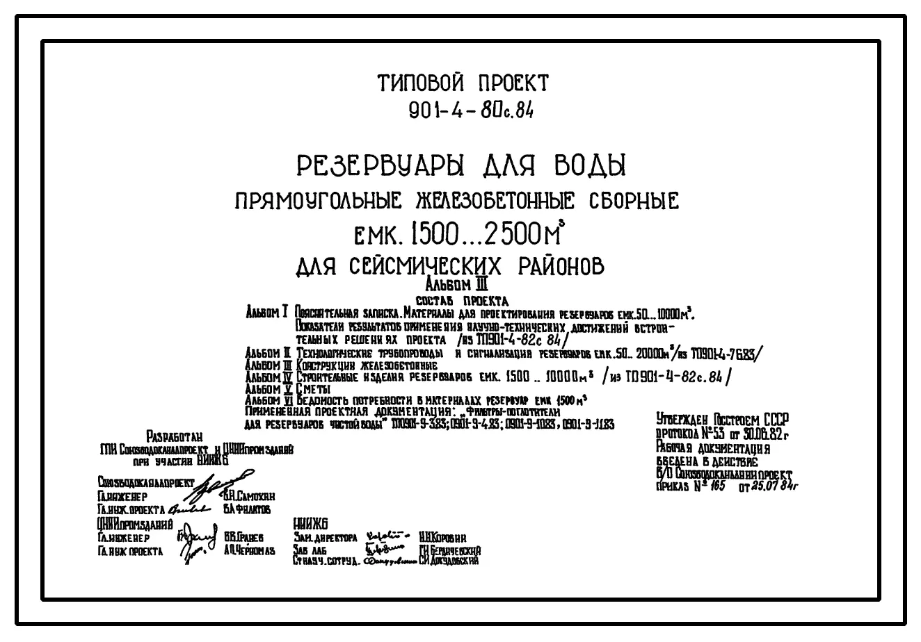 Типовой проект 901-4-80с.84 Резервуары для воды прямоугольные железобетонные сборные емкостью 1500...2500 м3 для сейсмических районов (проект переведен в DWG)