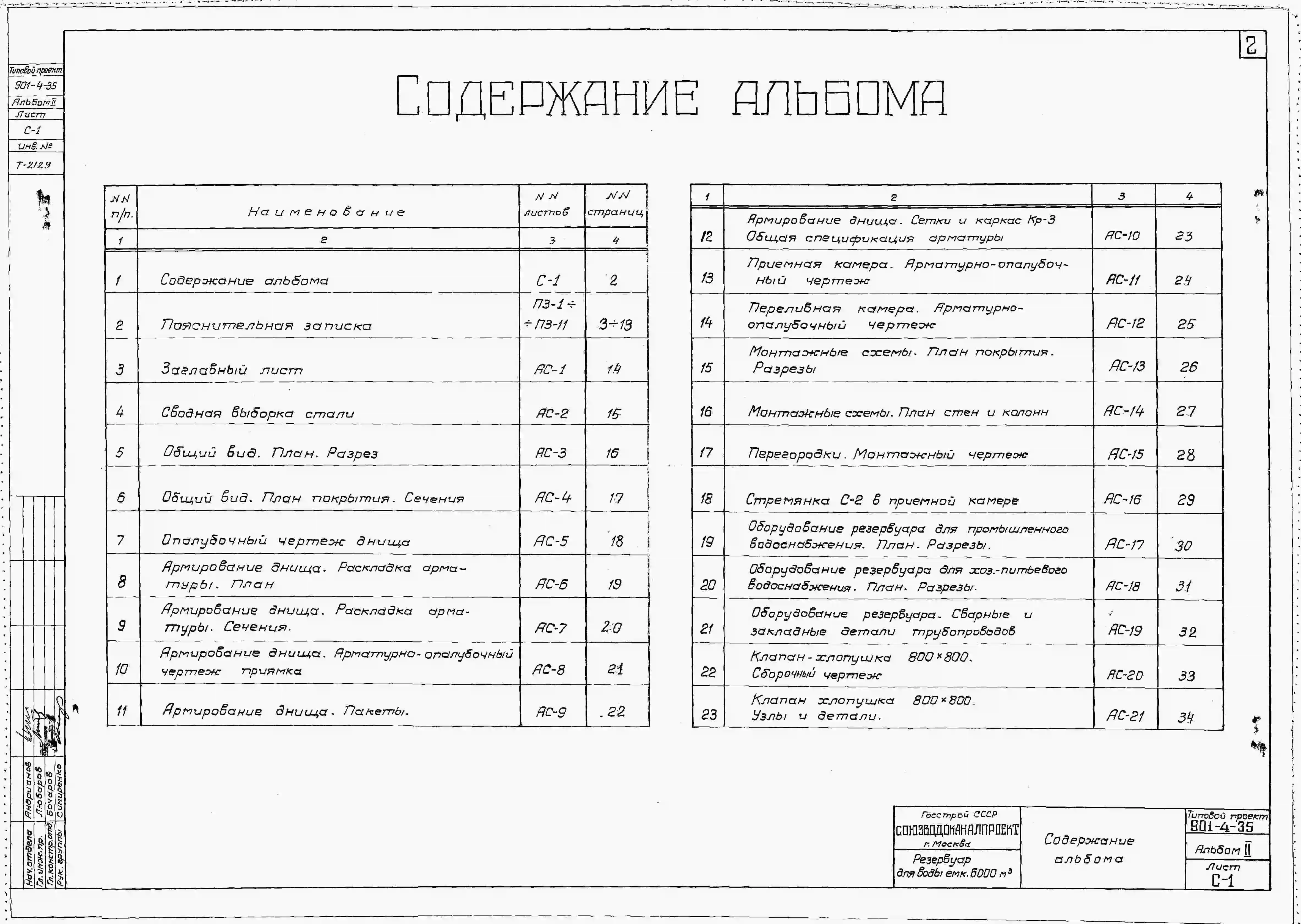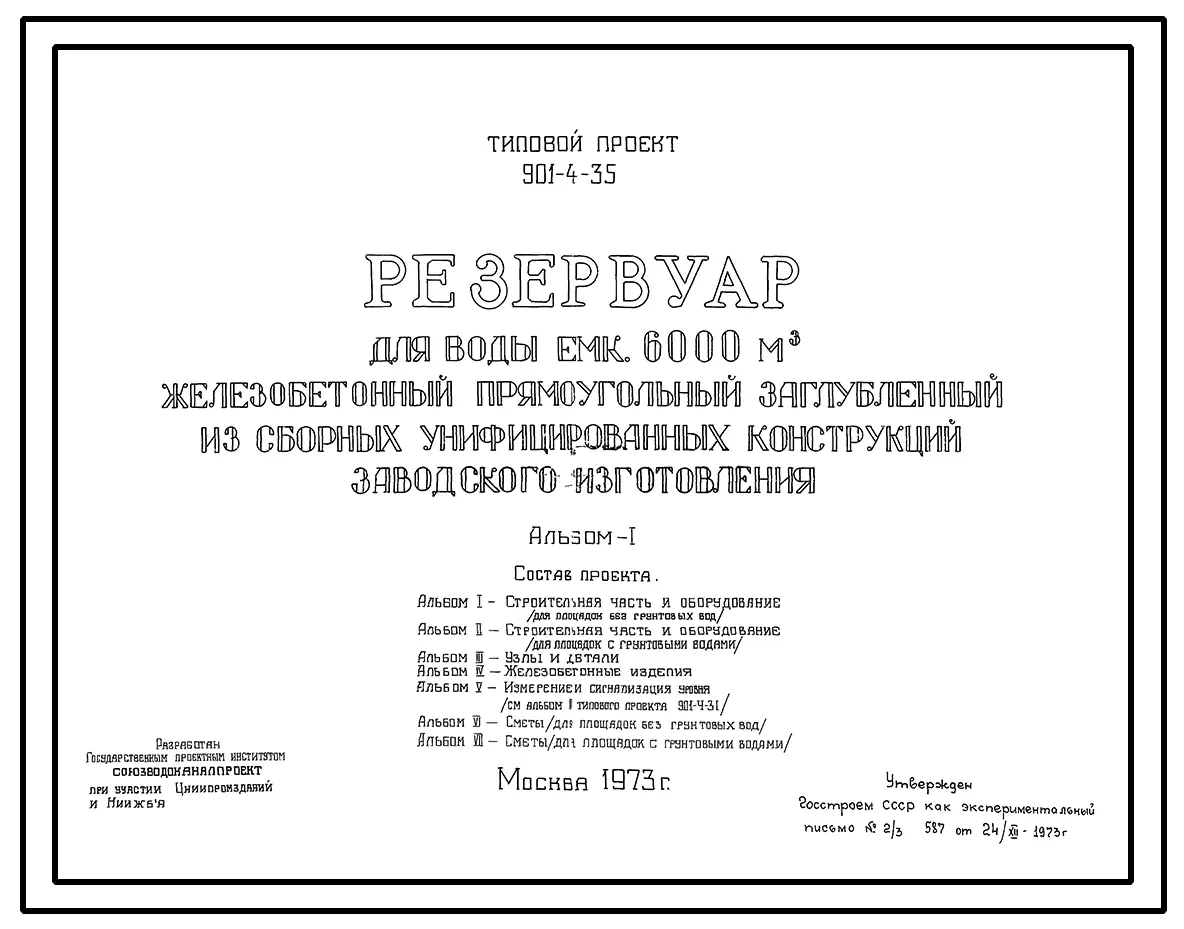 Типовой проект 901-4-35 Резервуар для воды емкостью 6000 м.куб. железобетонный прямоугольный заглубленный из сборных унифицированных конструкций заводского изготовления