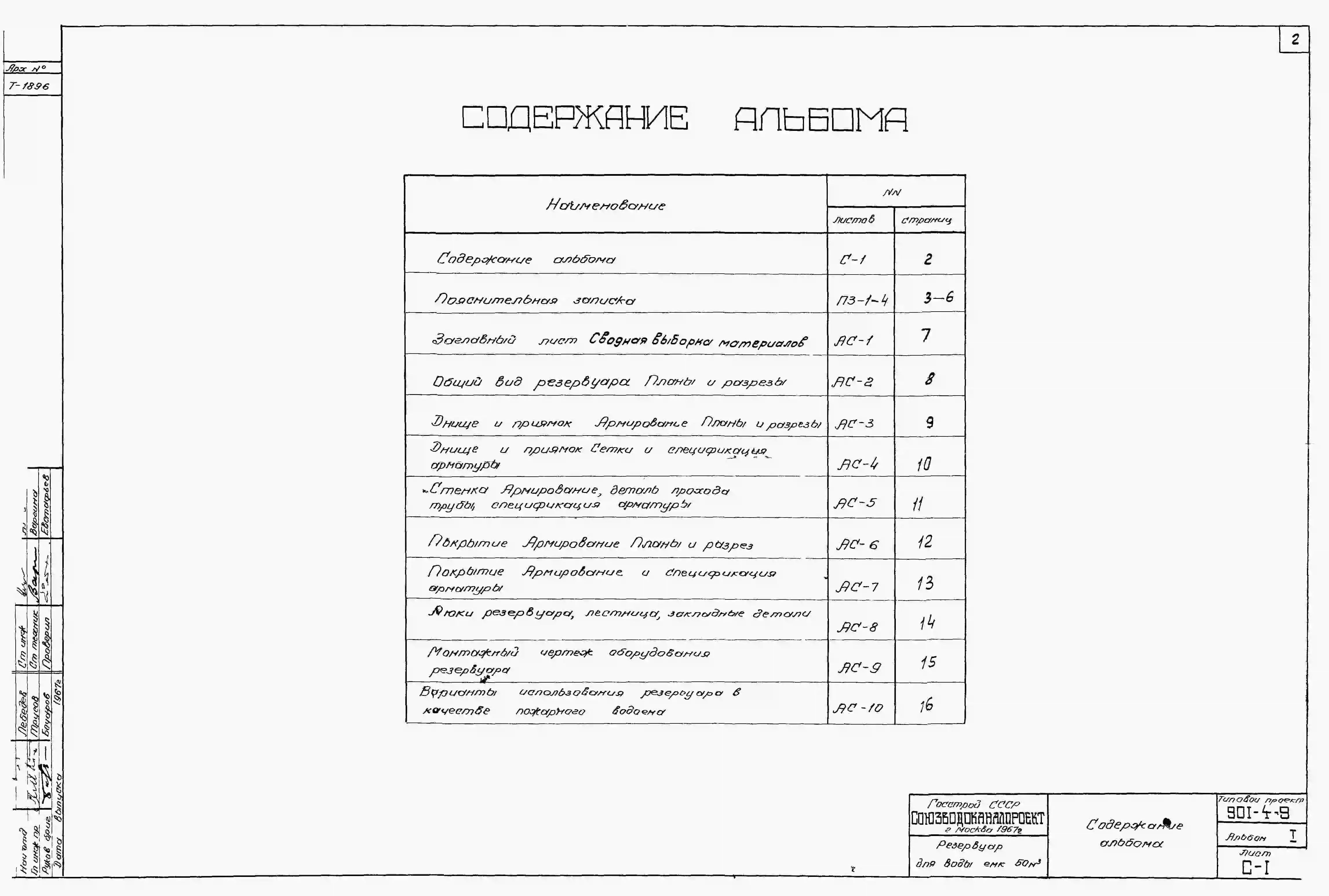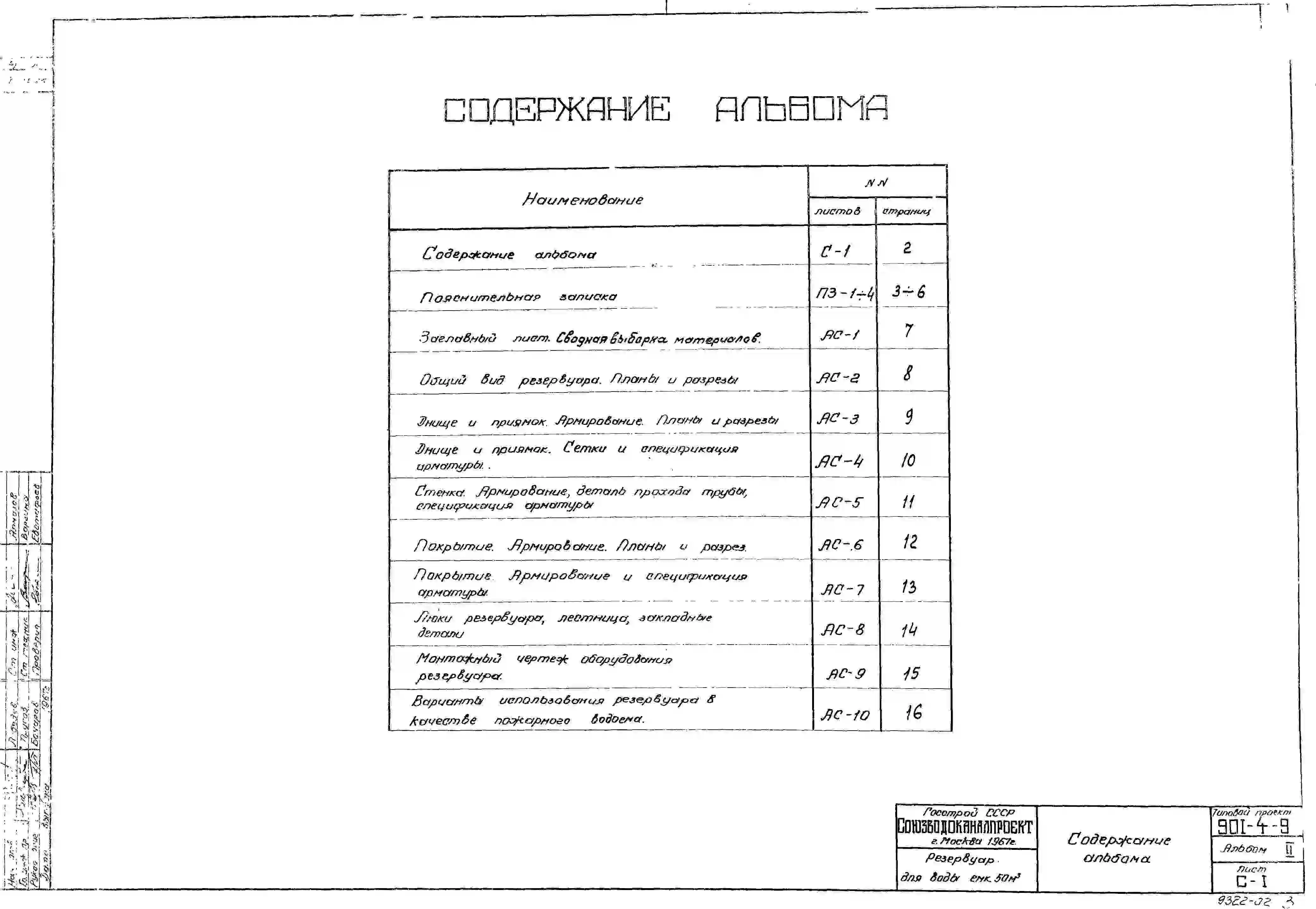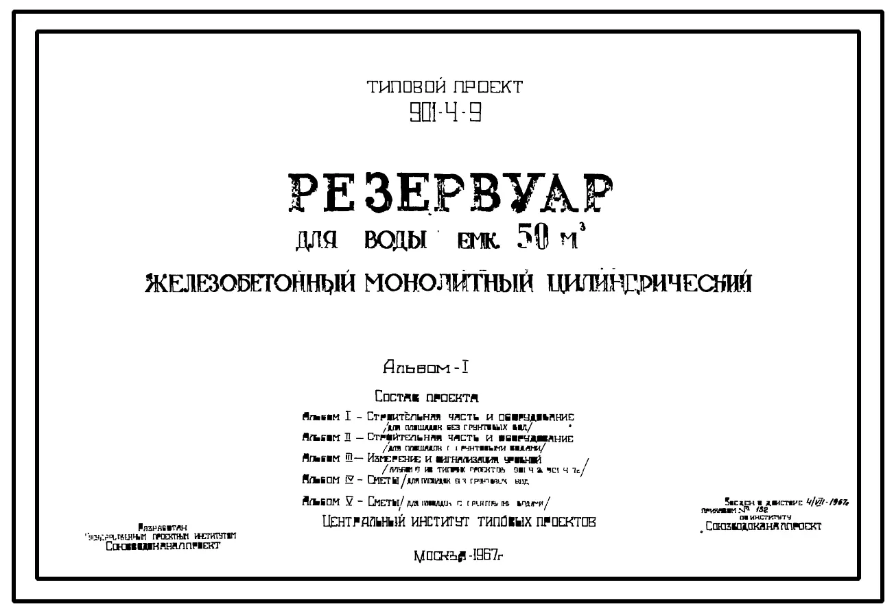 Типовой проект 901-4-9 Резервуар для воды емкостью 50 м.куб. железобетонный монолитный цилиндрический
