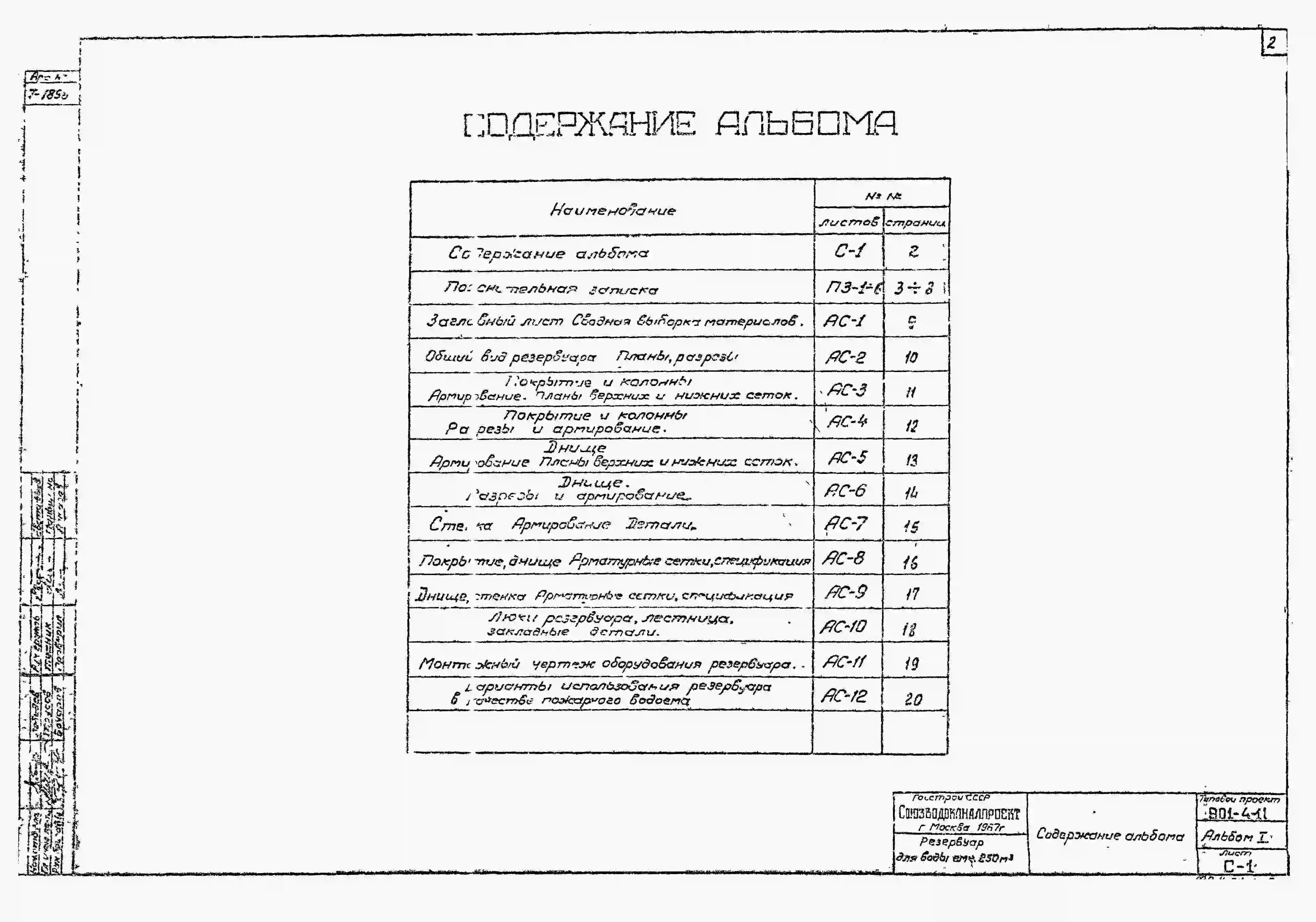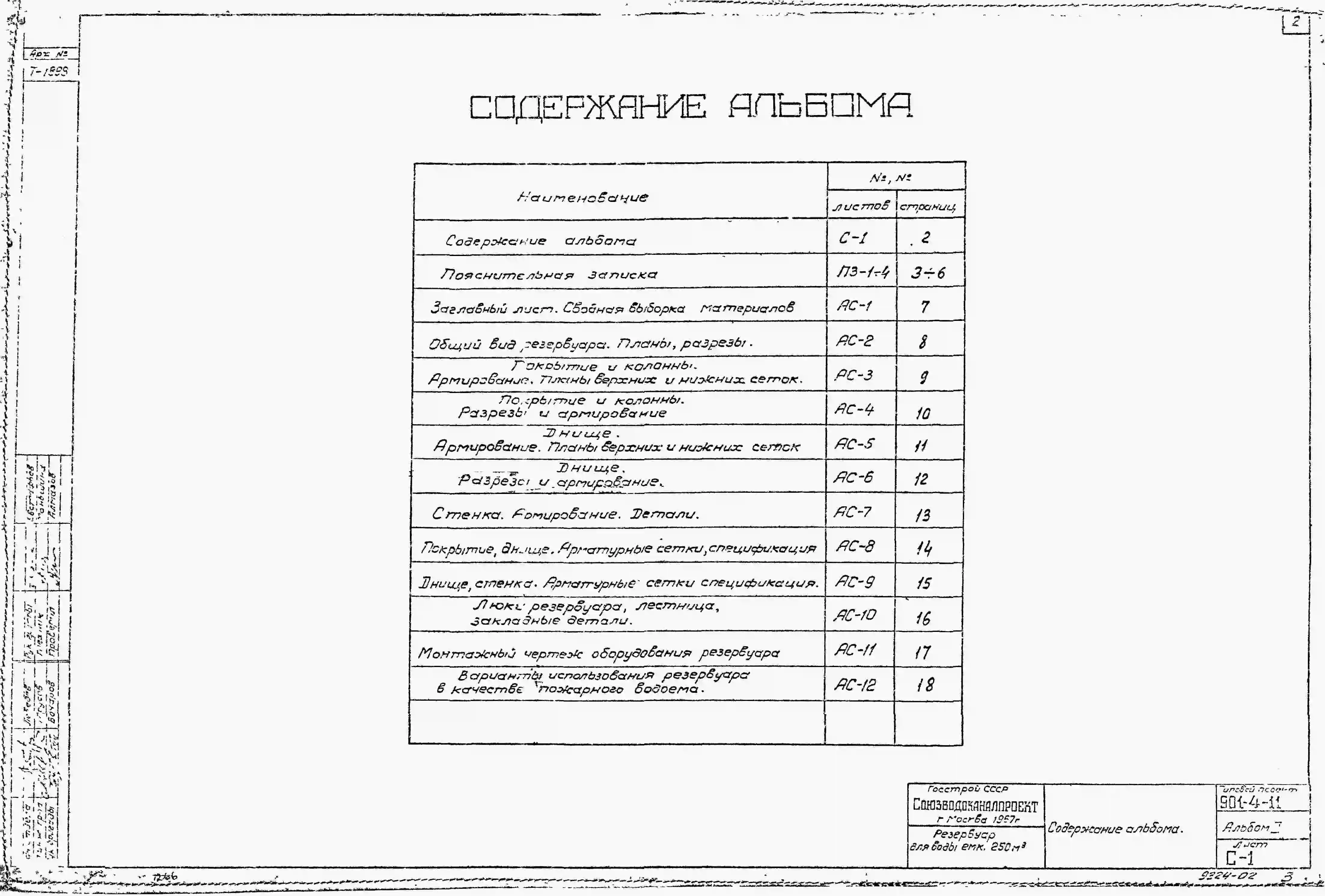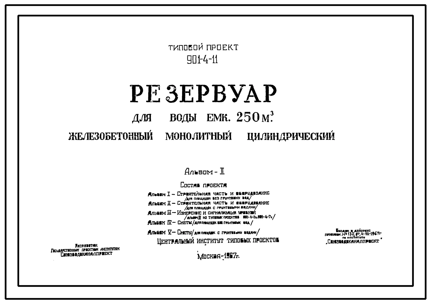Типовой проект 901-4-11 Резервуар для воды емкостью 250 м.куб. железобетонный монолитный цилиндрический заглубленный