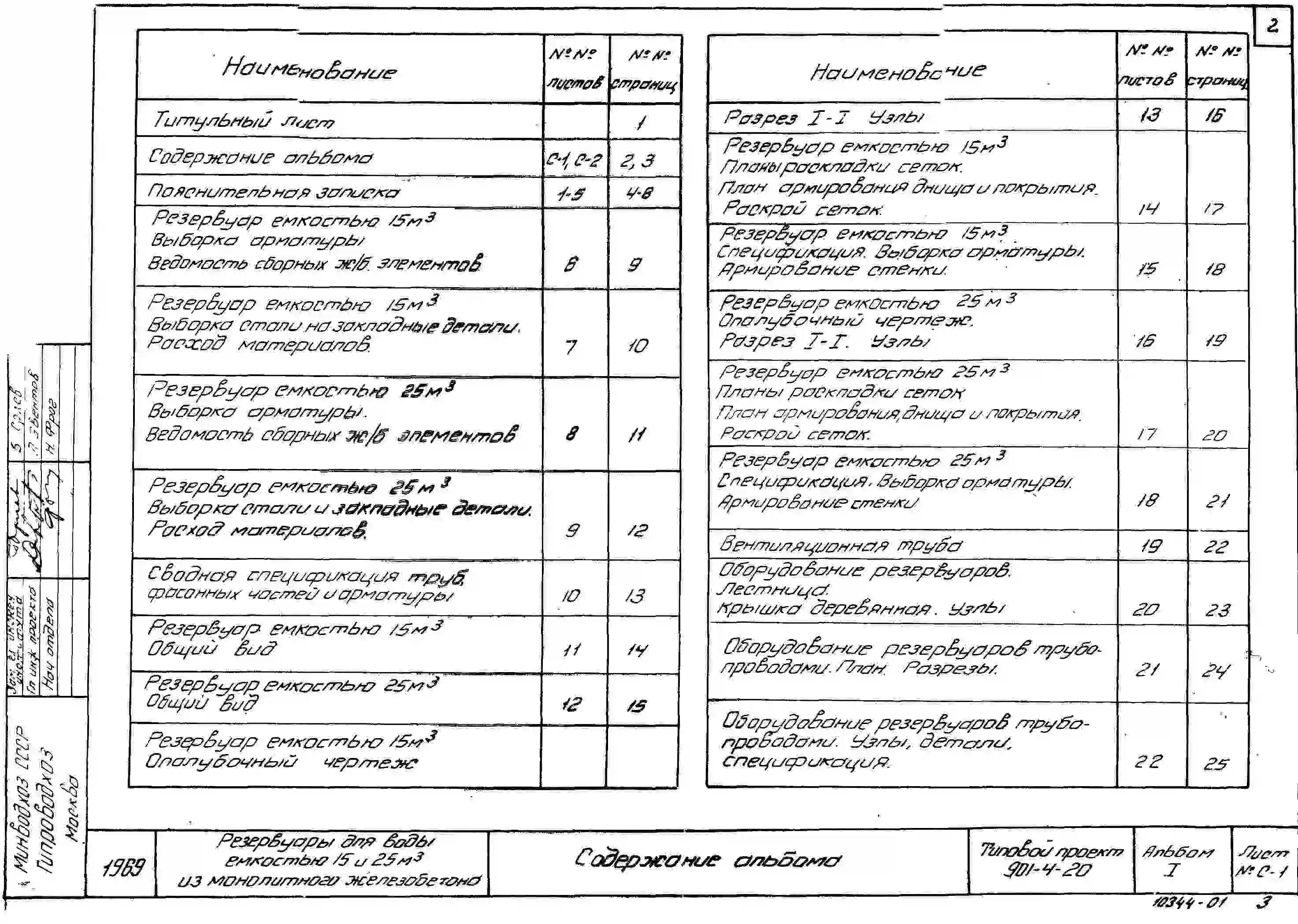 Типовой проект 901-4-20 Резервуары для воды емкостью 15 и 25м3 из монолитного железобетона.