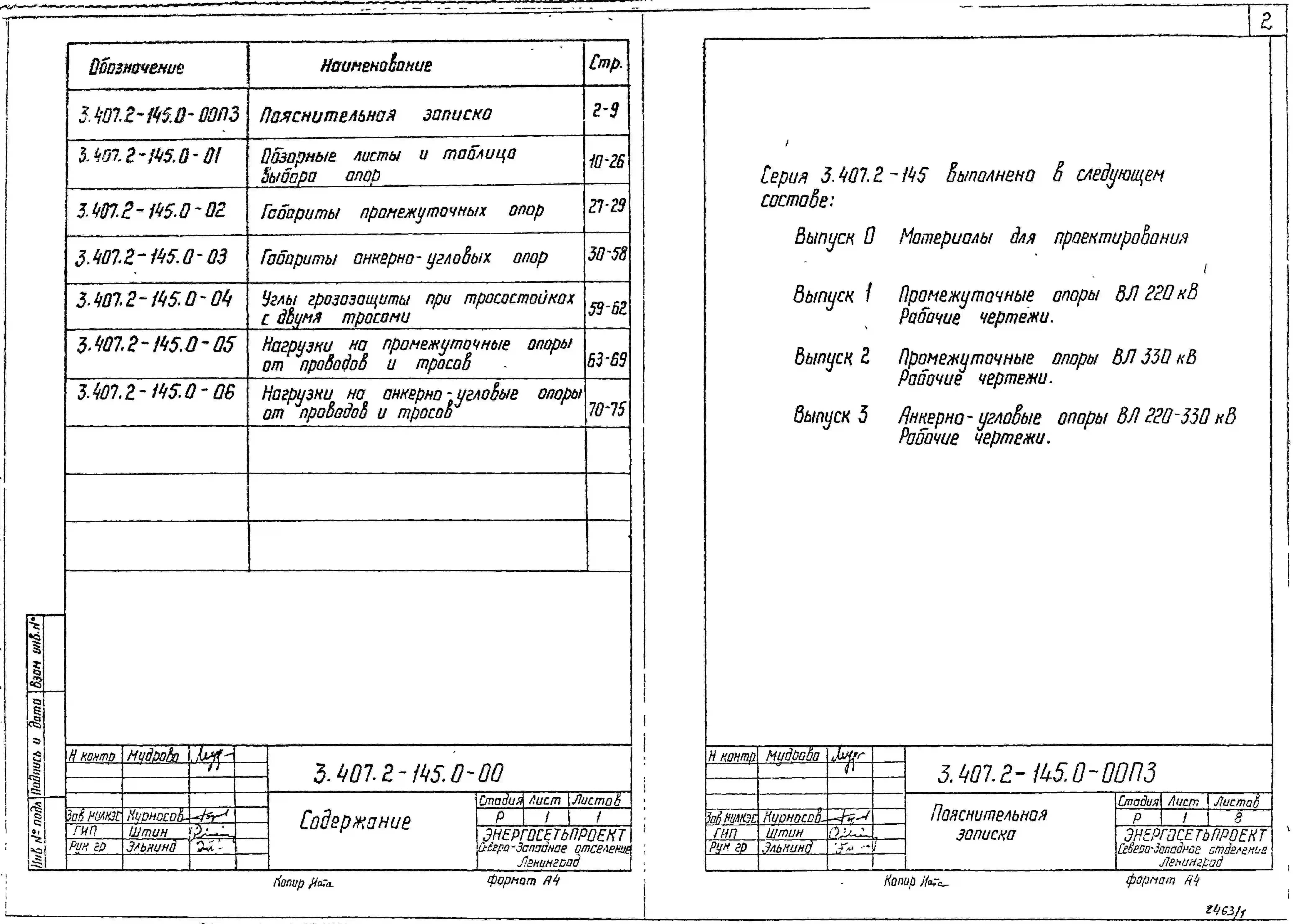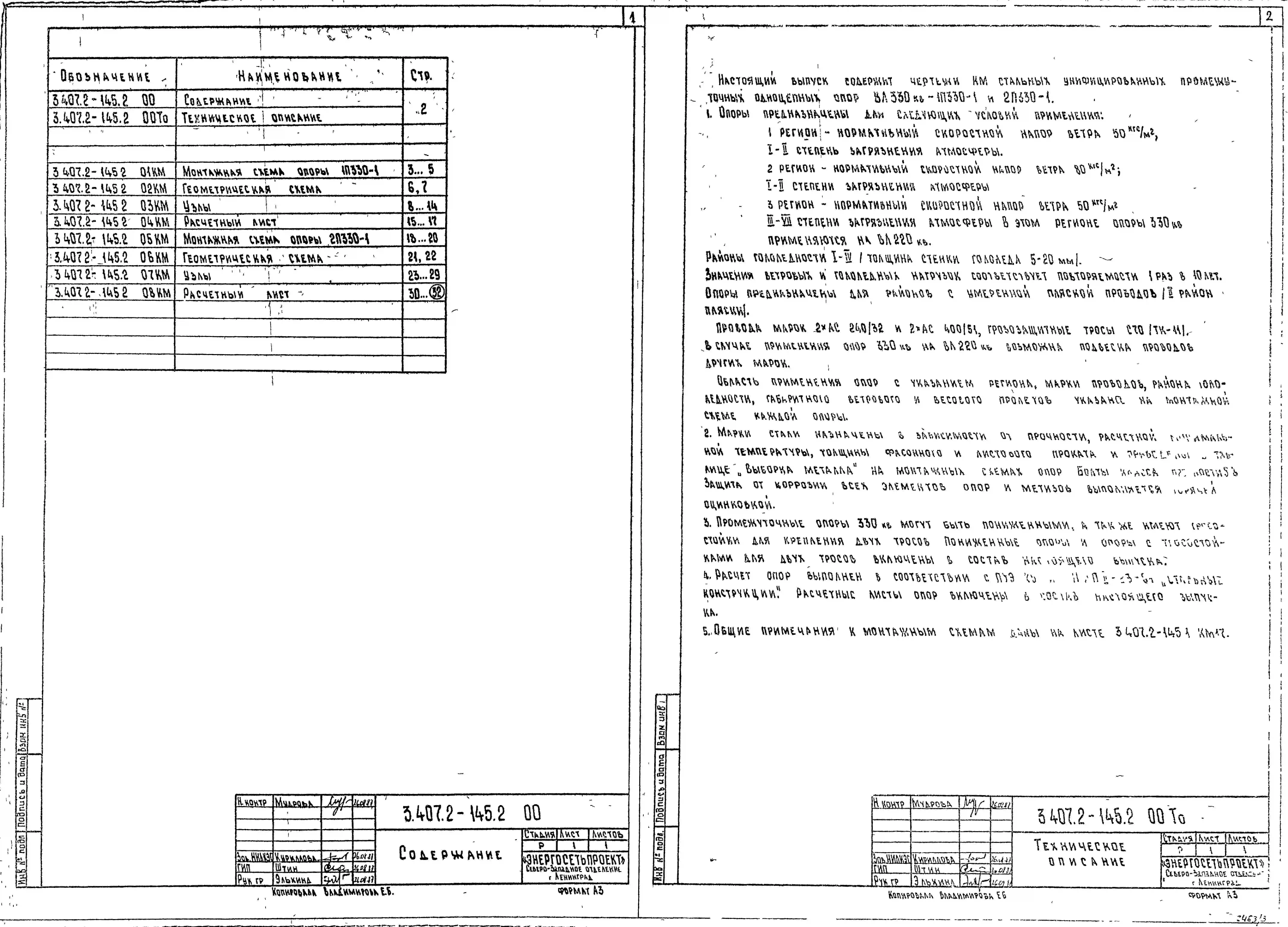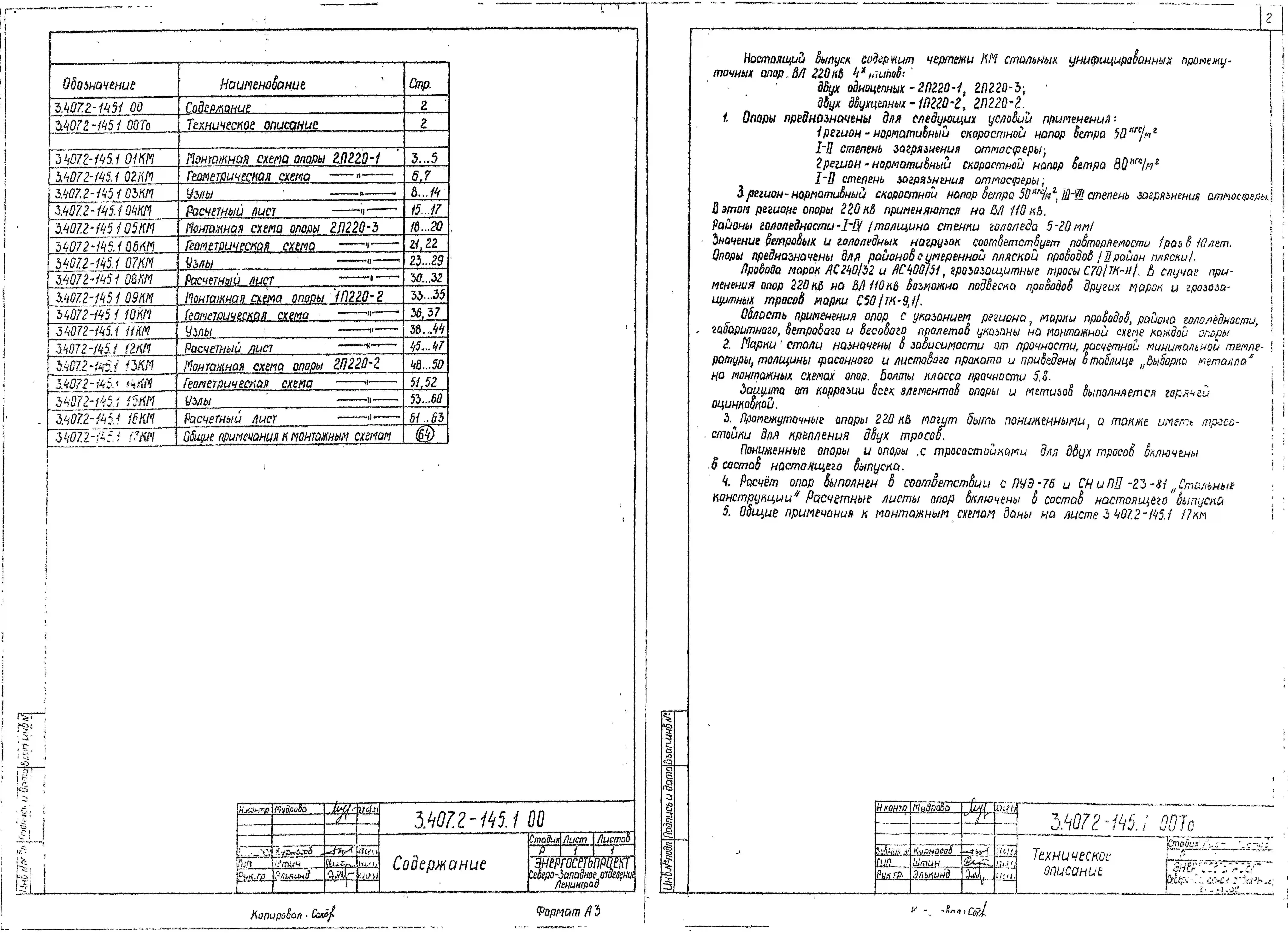 Серия 3.407.2-145 Унифицированные конструкции промежуточных и анкерно-угловых опор ВЛ 220 и 330 кВ. Материалы для проектирования и рабочие чертежи.