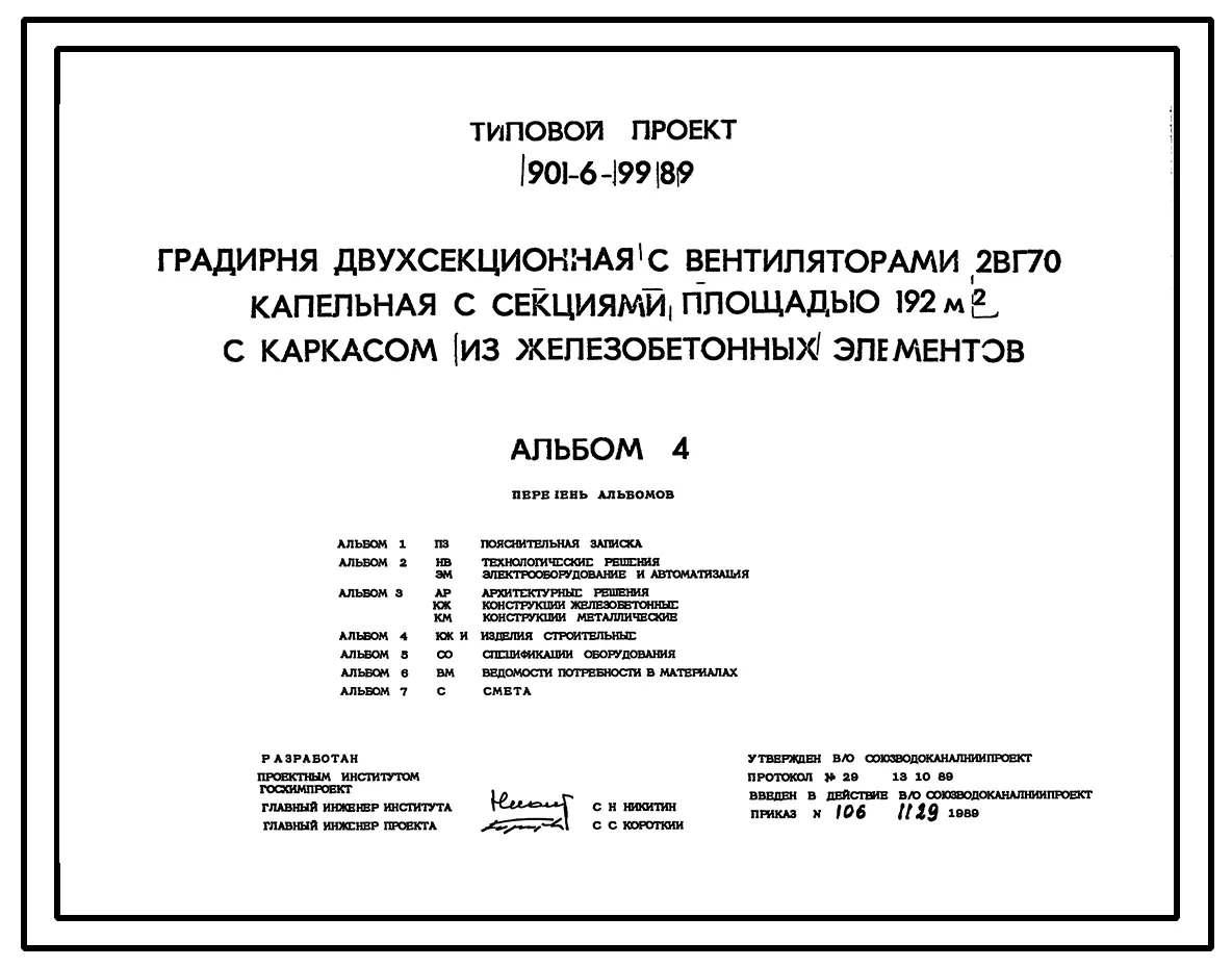 Типовой проект 901-6-99.89 Градирня двухсекционная с вентиляторами 2ВГ70 с секциями площадью 192 м2 с каркасом из железобетонных элементов. Условия строительства обычные (вариант – сейсмичность 8 баллов)