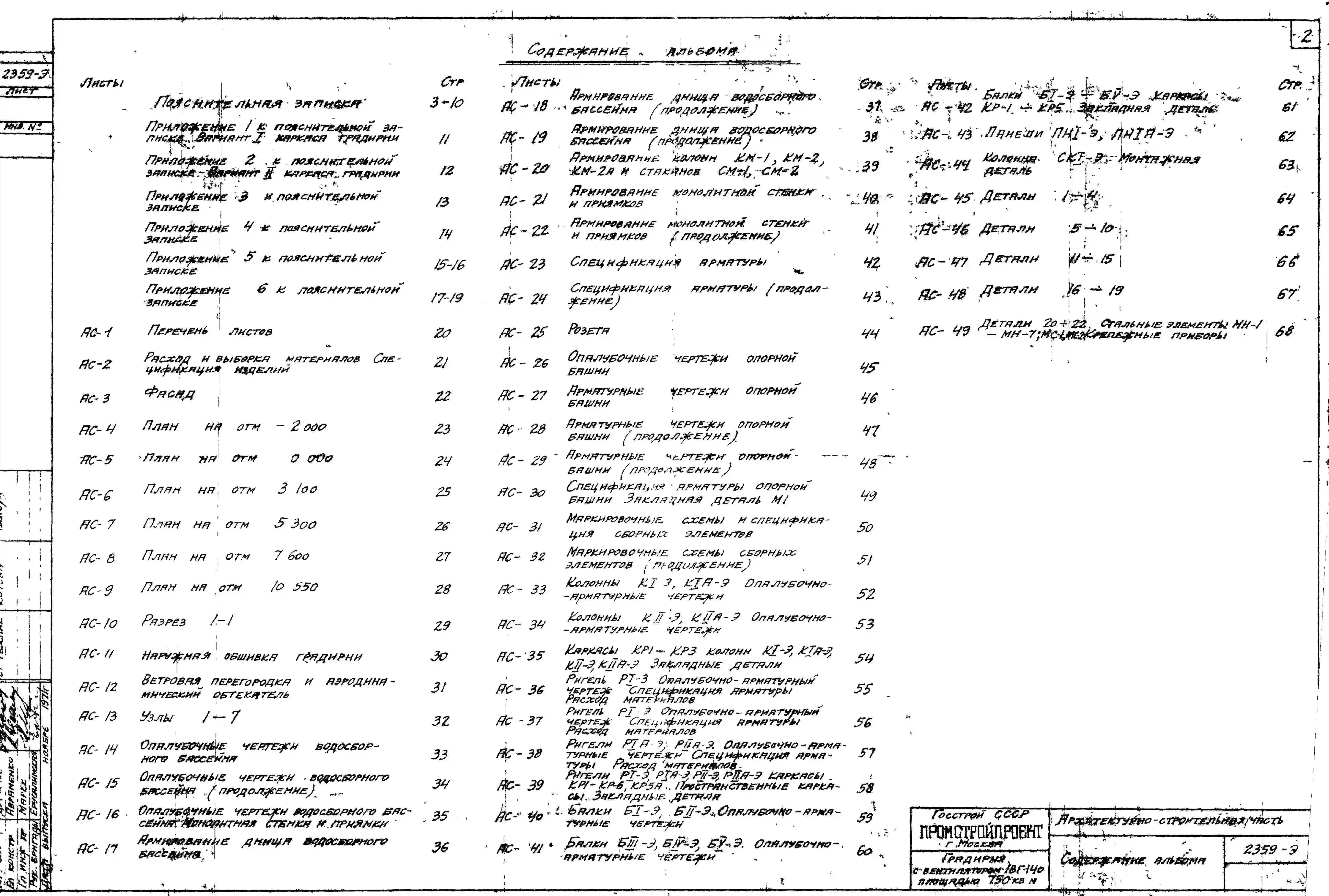 Типовой проект 2359-Э Градирня площадью 750 кв.м с вентилятором 1ВГ-140
