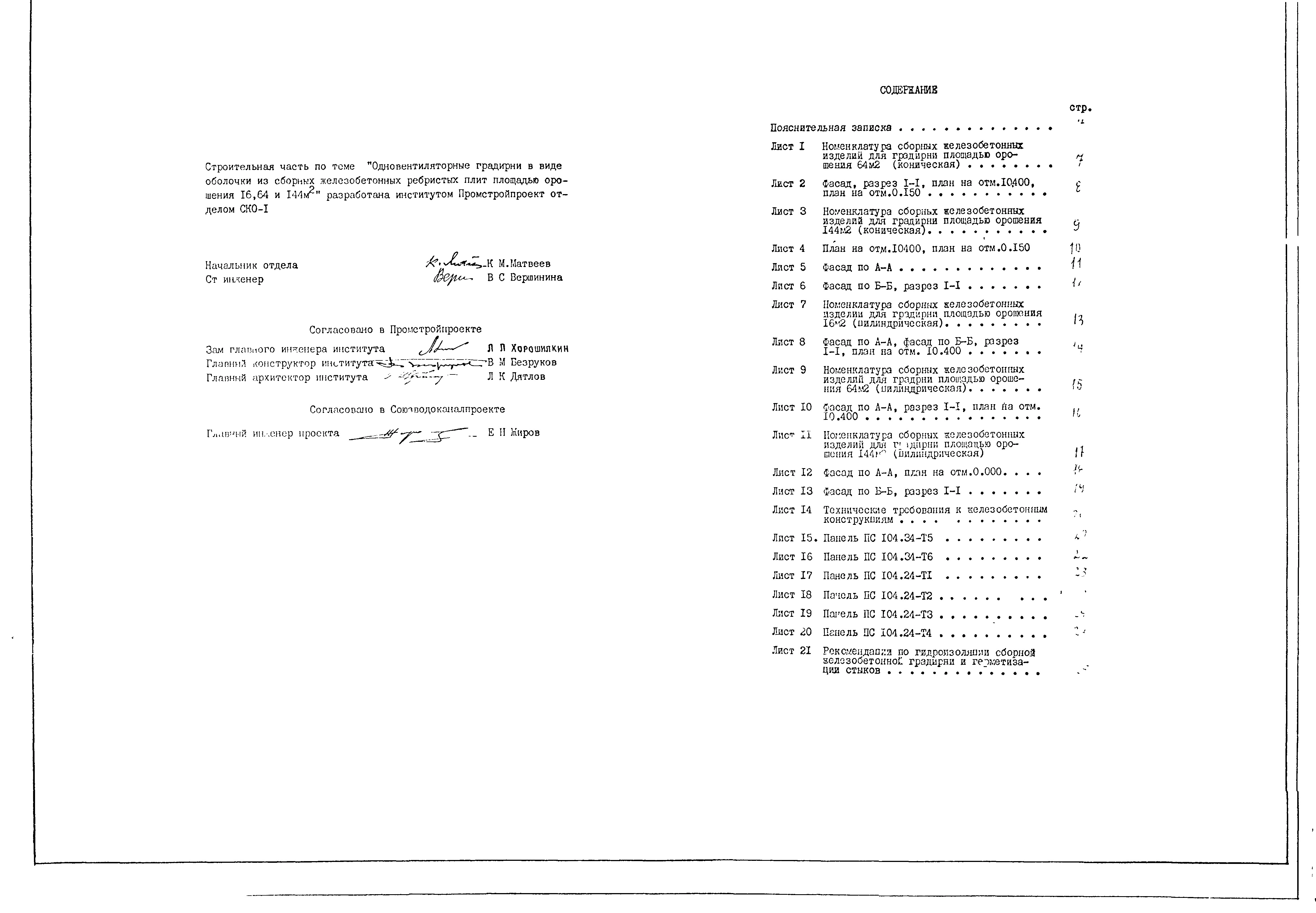 Проект Т-2678 Одновентиляторные градирни в виде оболочки из сборных железобетонных ребристых плит площадью орошения 16,64,144 кв.м (Проект 4085-Э-83)