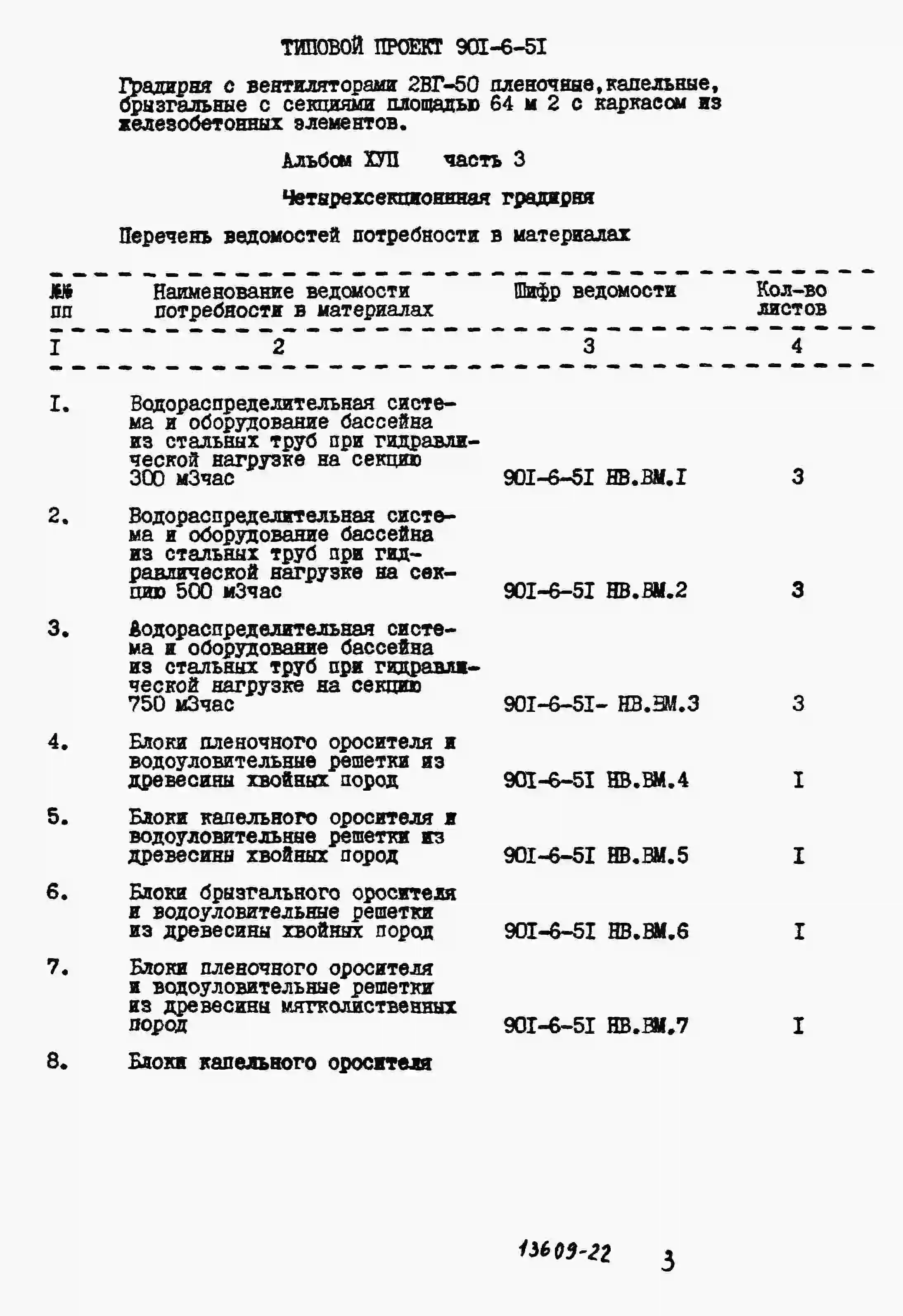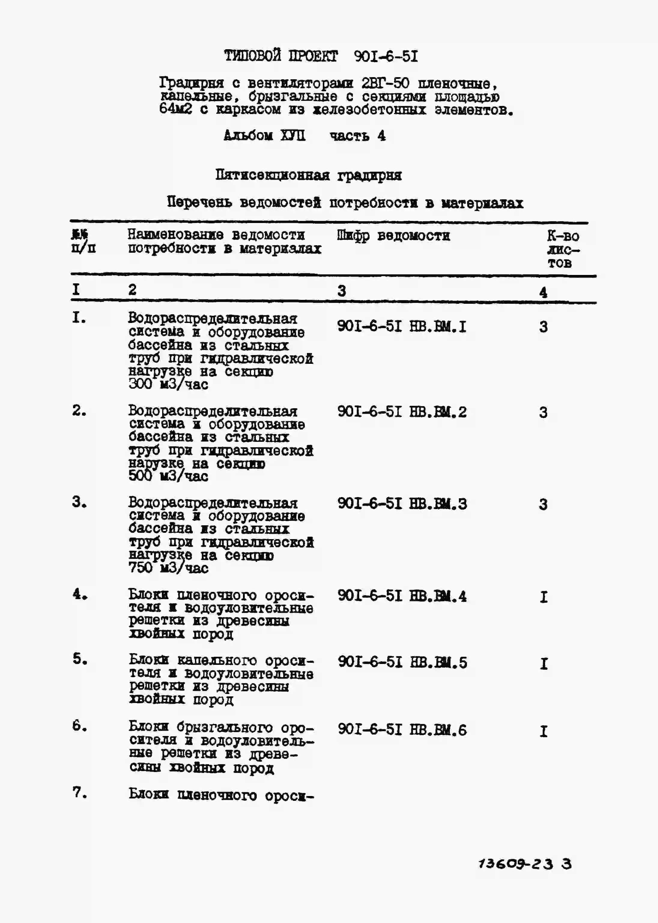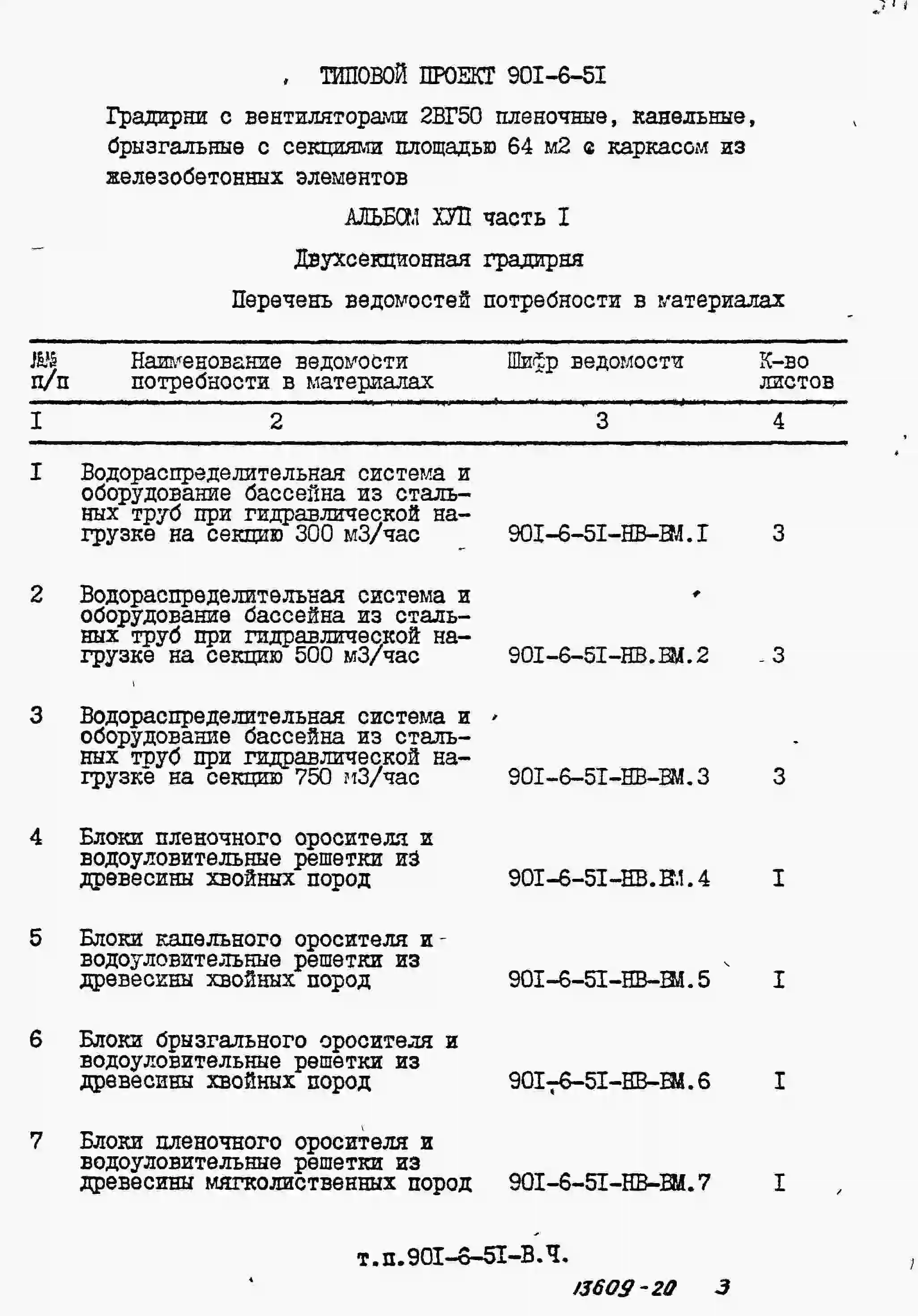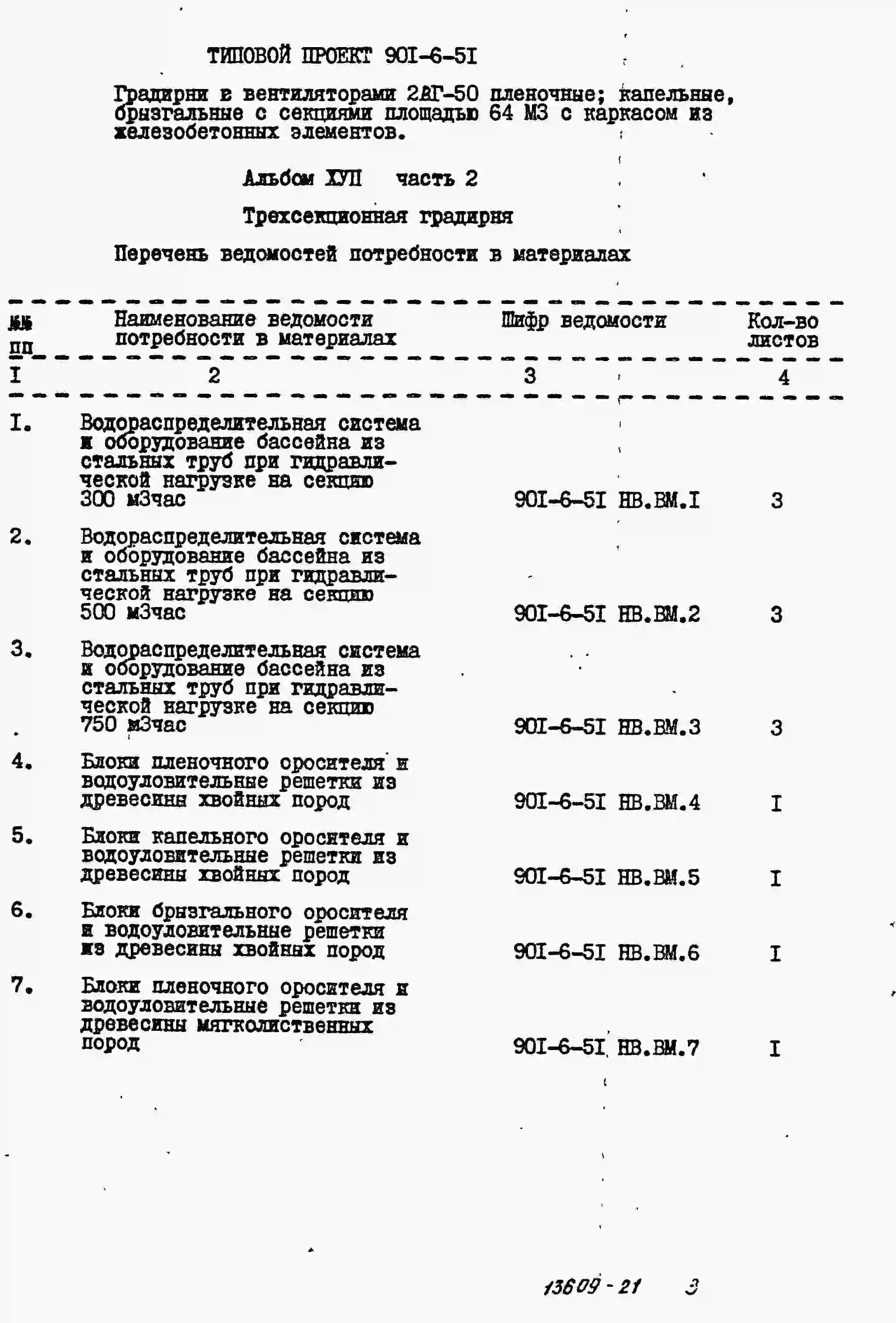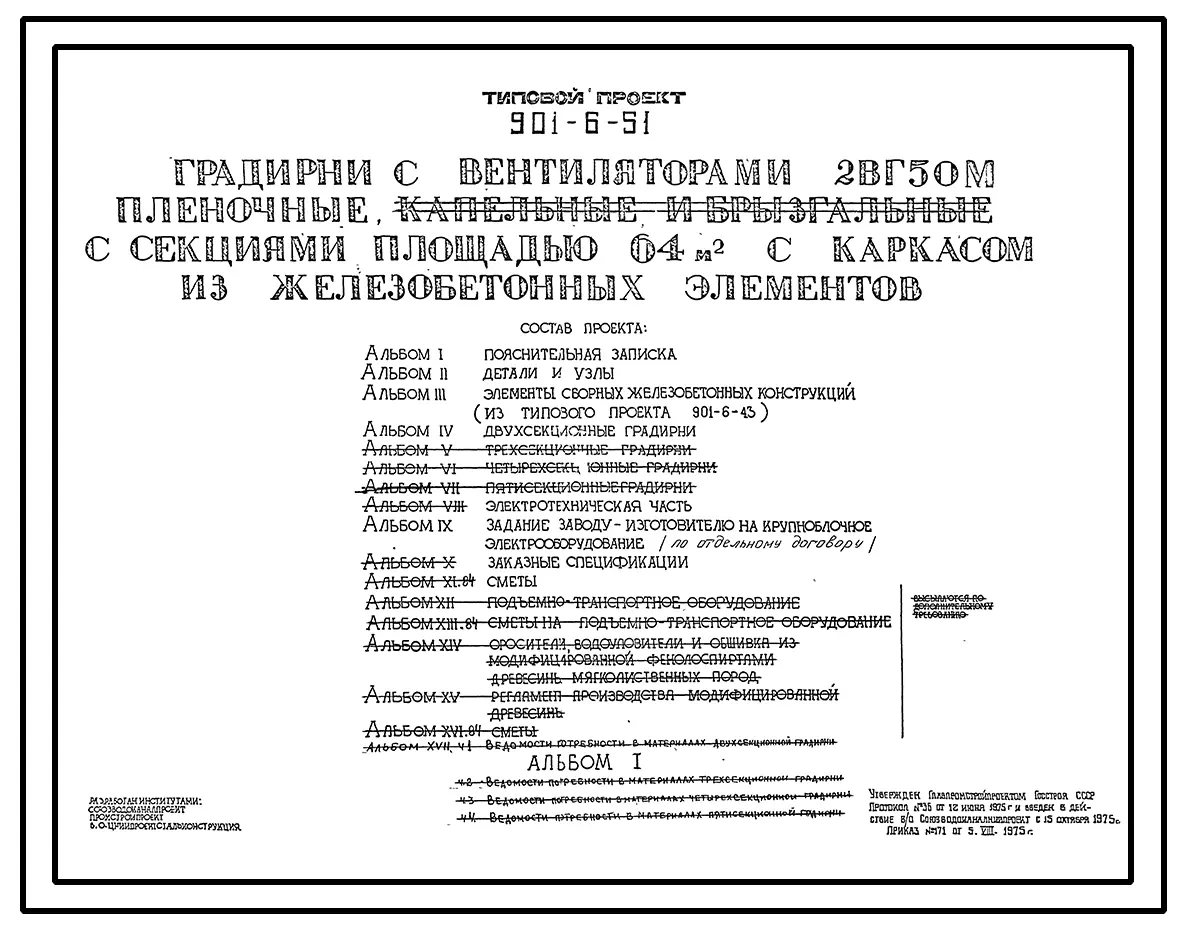 Типовой проект 901-6-51 Градирни с вентиляторами 2ВГ50 пленочные капельные и брызгальные с секциями площадью 64 куб. м с каркасом из железобетонных элементов
