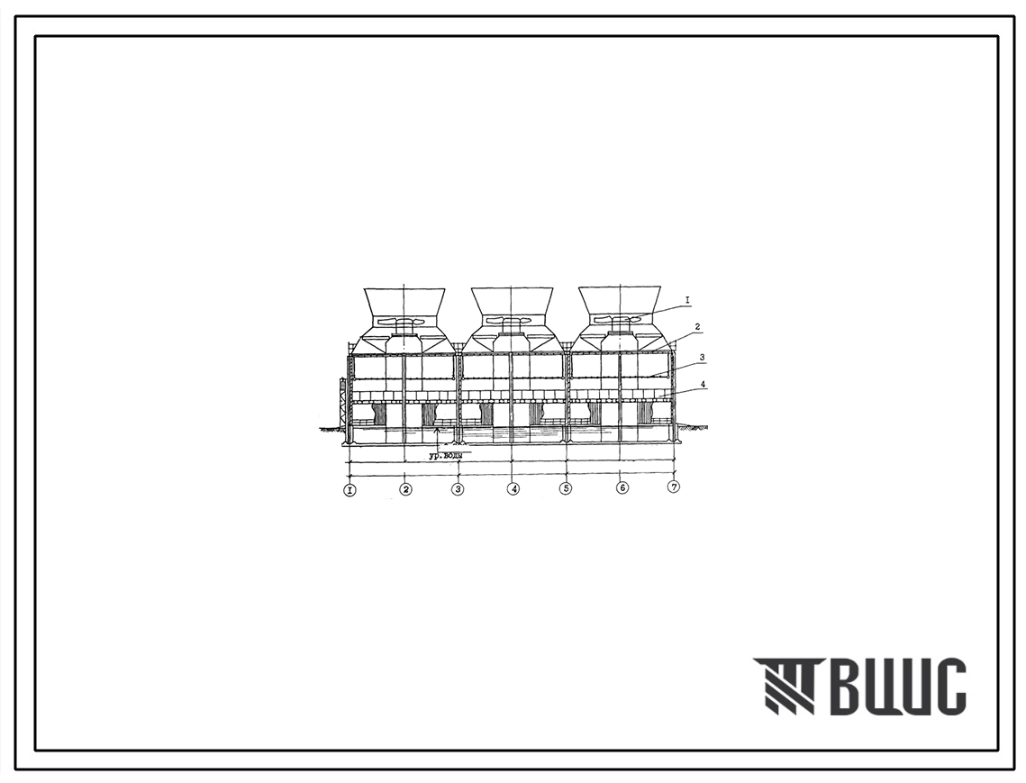 Типовой проект 901-6-72.85 Градирня трехсекционная с вентиляторами 2ВГ70 пленочная с секциями площадью 144 м.кв со стальным каркасом