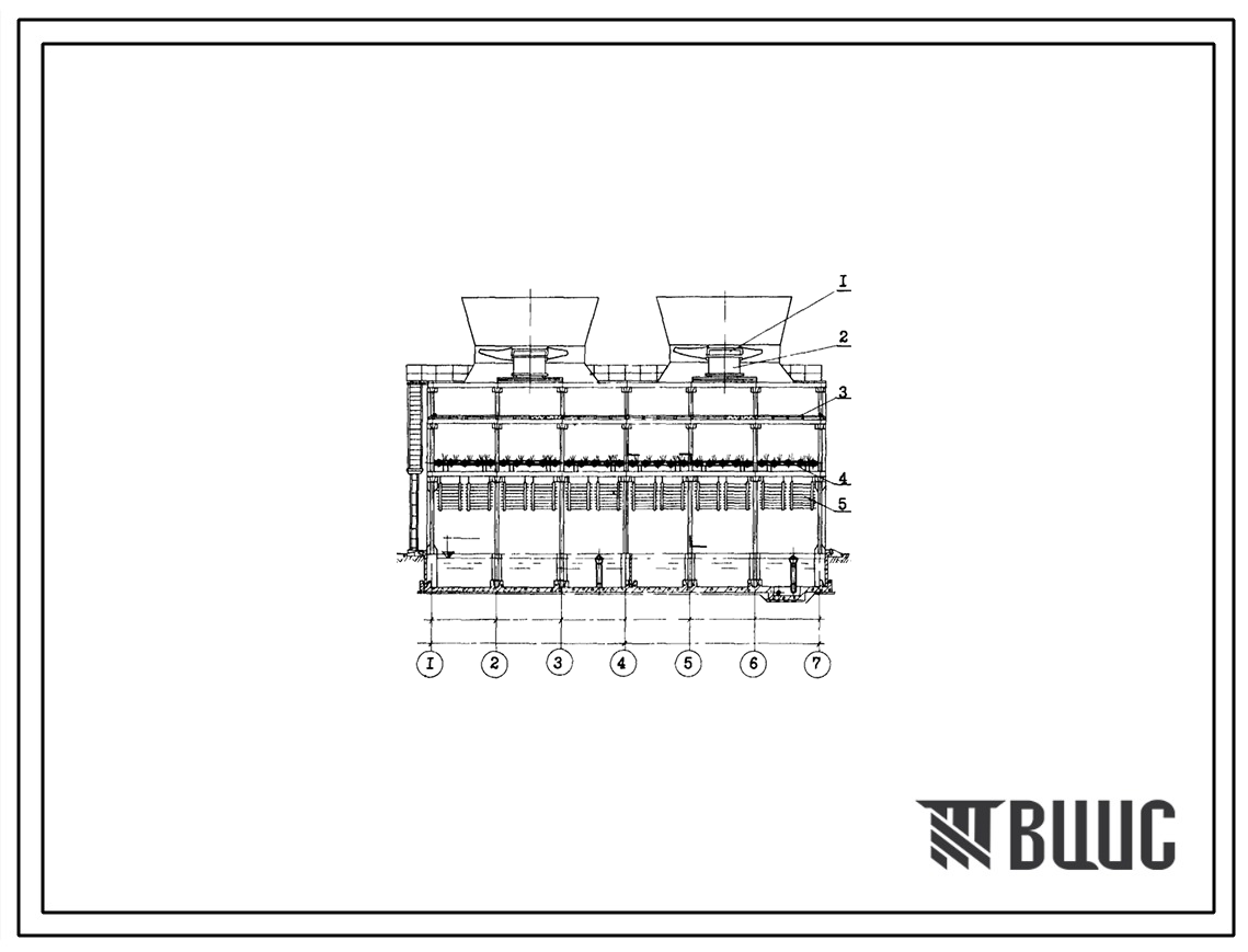 Типовой проект 901-6-62 Градирня с вентиляторами 2ВГ70 брызгальная с секиями площадью 192 кв.м с каркасом из железобетонных элементов