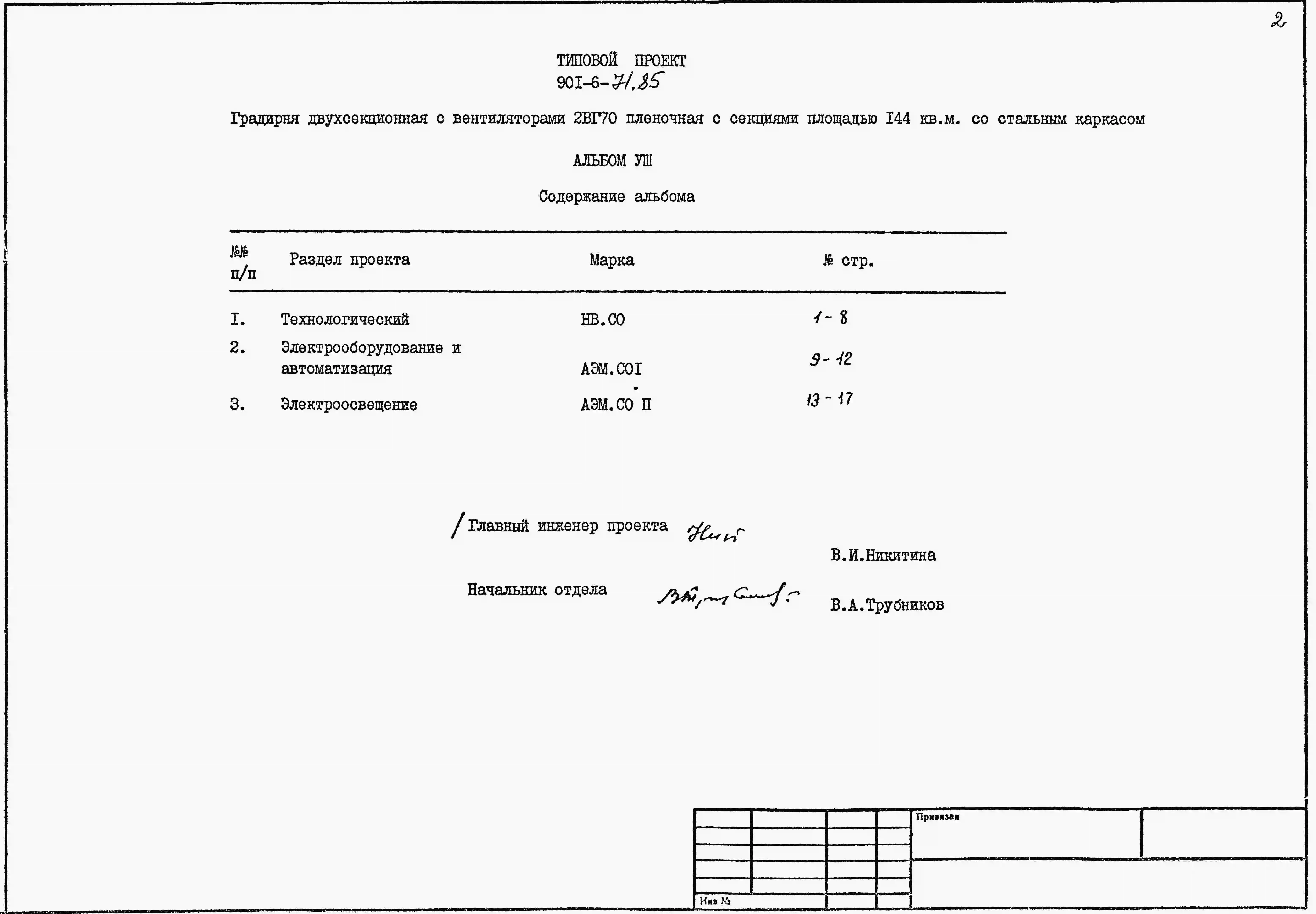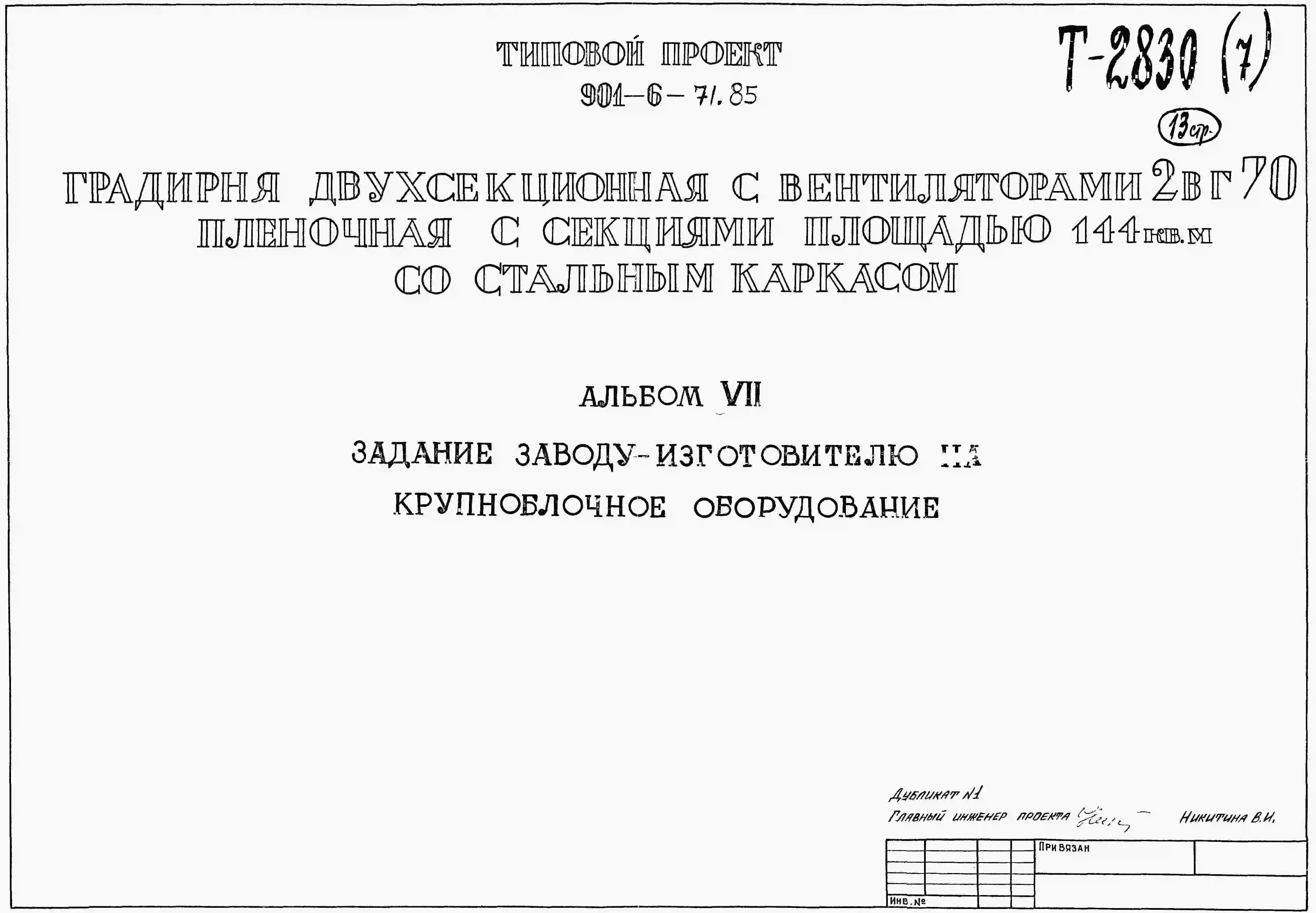 Типовой проект 901-6-71.85 Градирня двухсекционная с вентиляторами 2ВГ70 пленочная с секциями площадью 144 м.кв со стальным каркасом