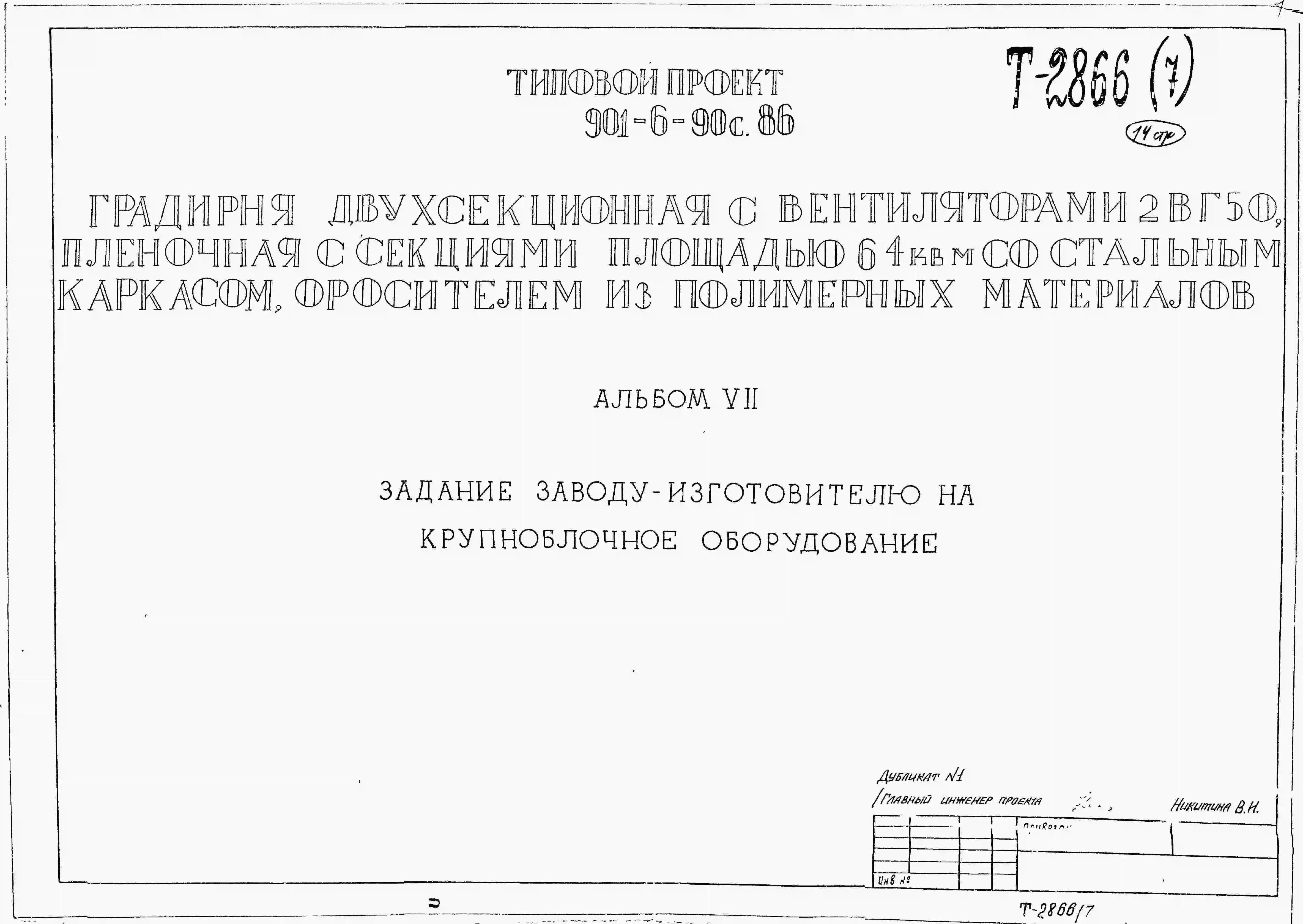 Типовой проект 901-6-90с.86 Градирня двухсекционная с вентиляторами 2ВГ50 пленочная с секциями площадью 64 м.кв со стальным каркасом, оросителем из полимерных материалов