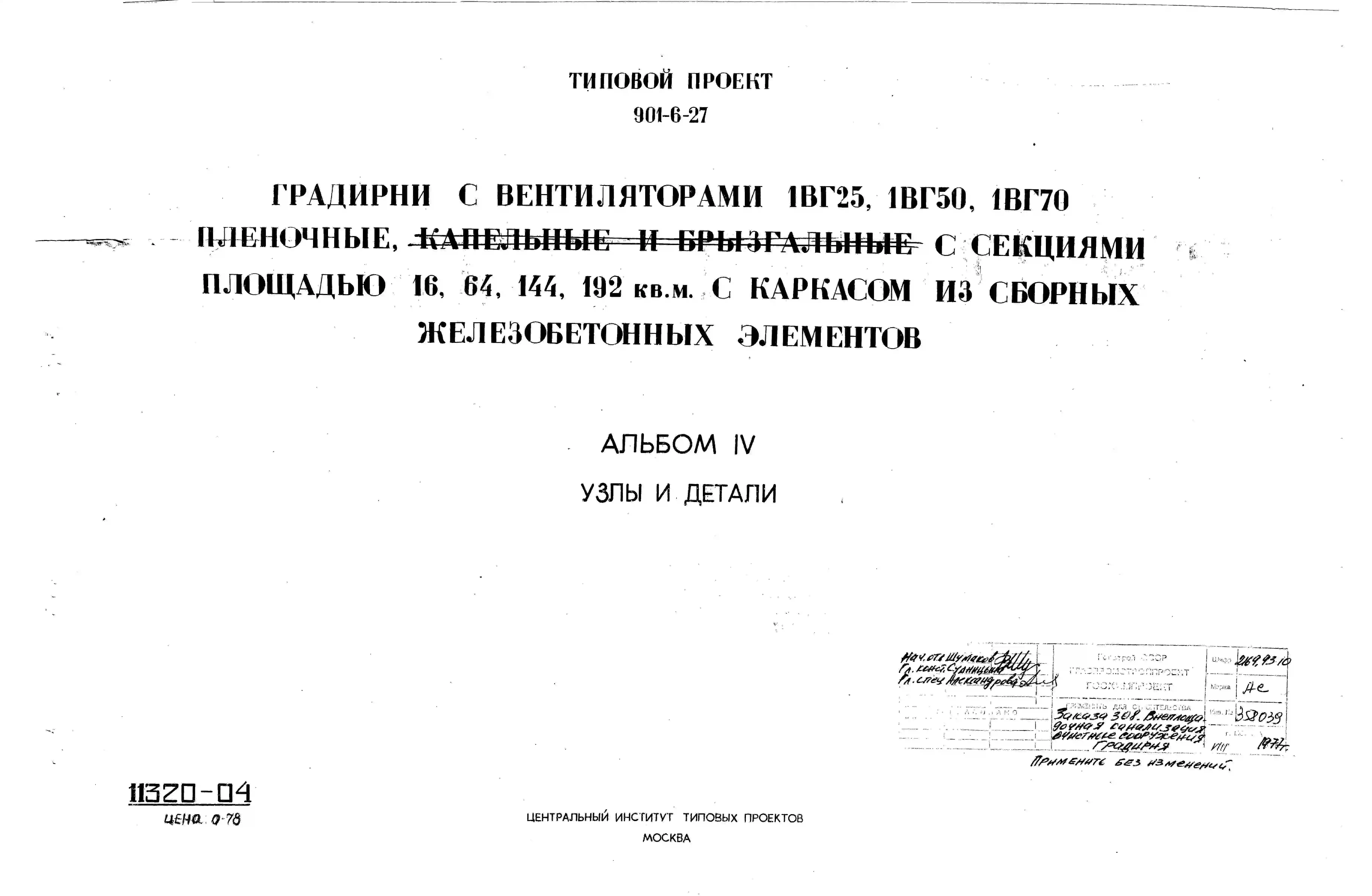 Типовой проект 901-6-21 Градирни многосекционные с вентиляторами 1ВГ50 пленочные, капельные и брызгальные с секциями площадью 64 кв. м с каркасом из сборных железобетонных элементов