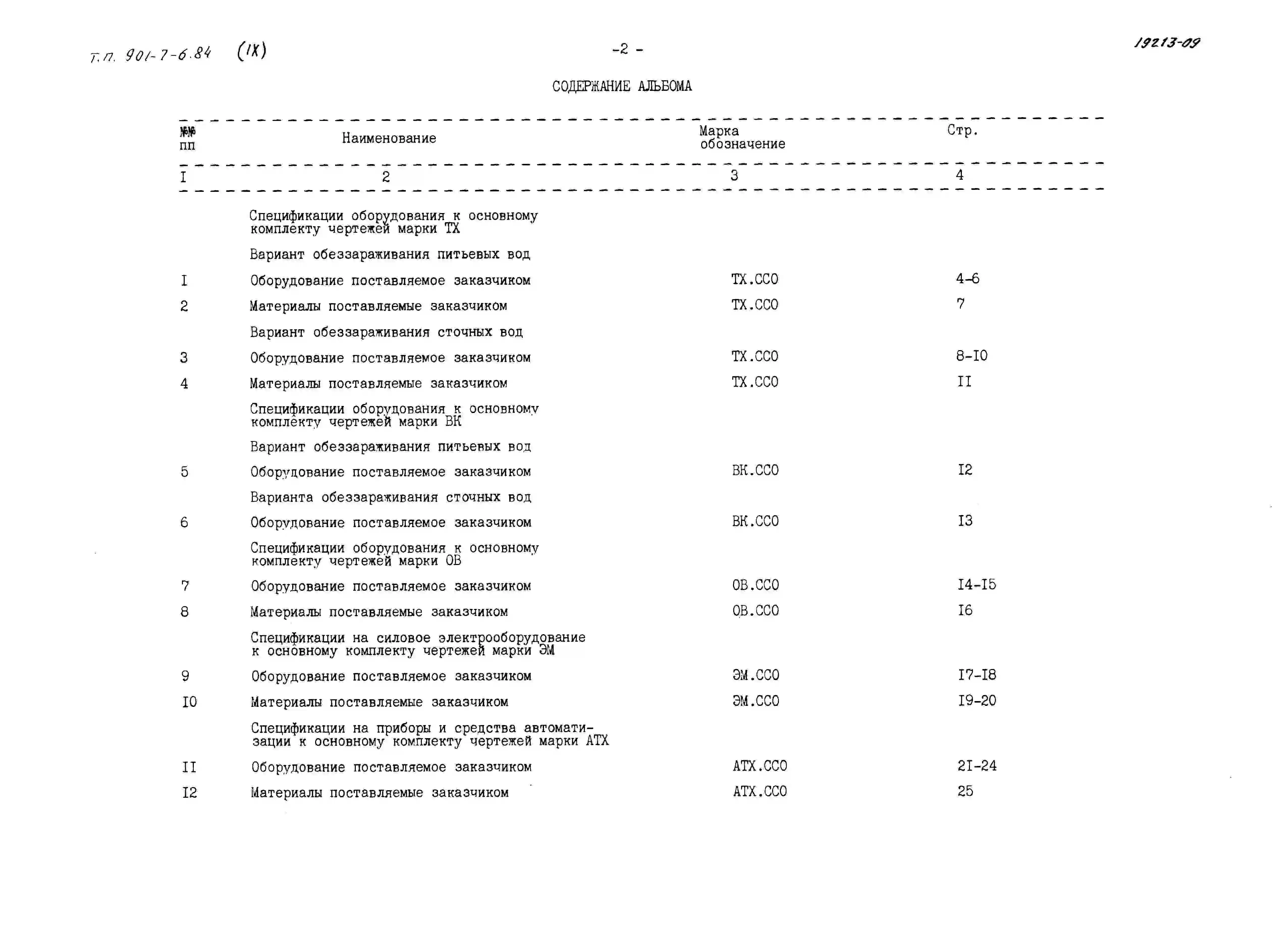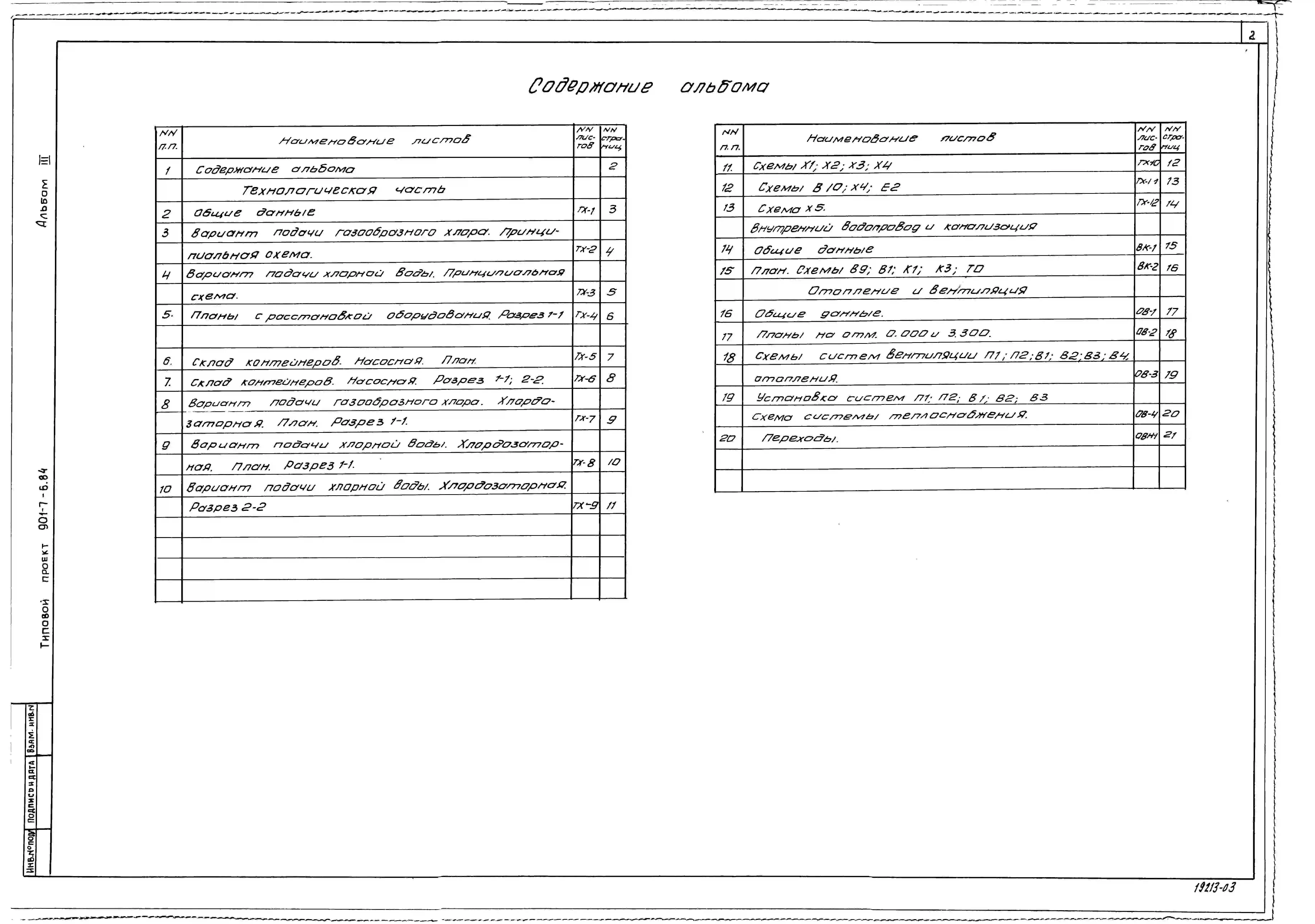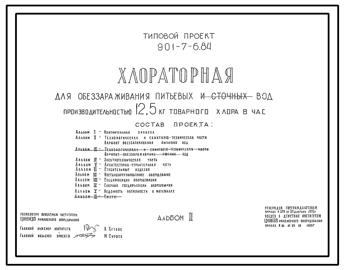 Типовой проект 901-7-6.84 Хлораторная для обеззараживания питьевых и сточных вод производительностью 12,5 кг товарного хлора в час