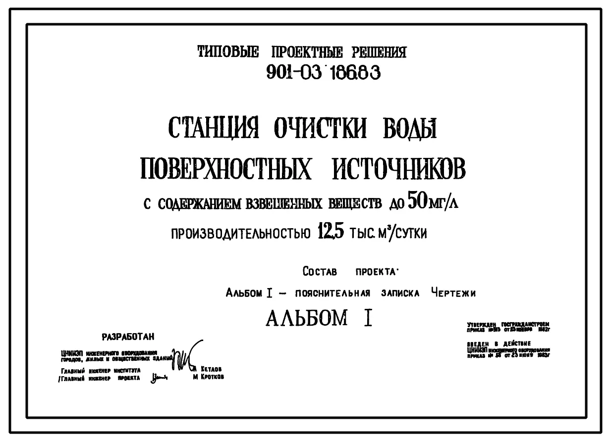 Типовой проект 901-03-186.83 Станция очистки воды поверхностных источников с содержанием взвешенных веществ до 50 мг/л производительностью 12,5 тыс. м3/сут