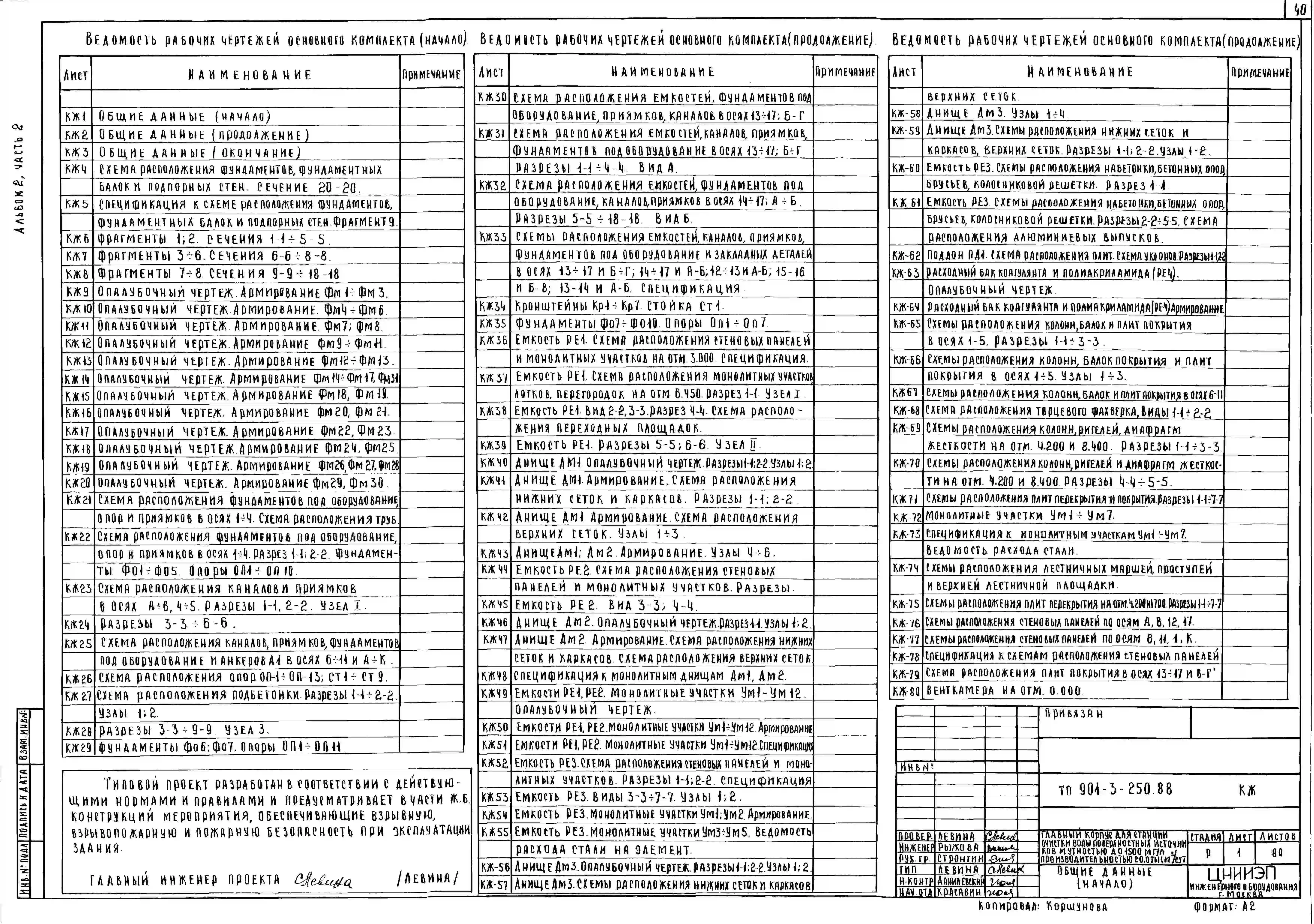 Типовой проект 901-3-250.88 Главный корпус для станции очистки воды поверхностных источников мутностью до 1500 мг/л, производительностью 20,0 тыс. м3/сут