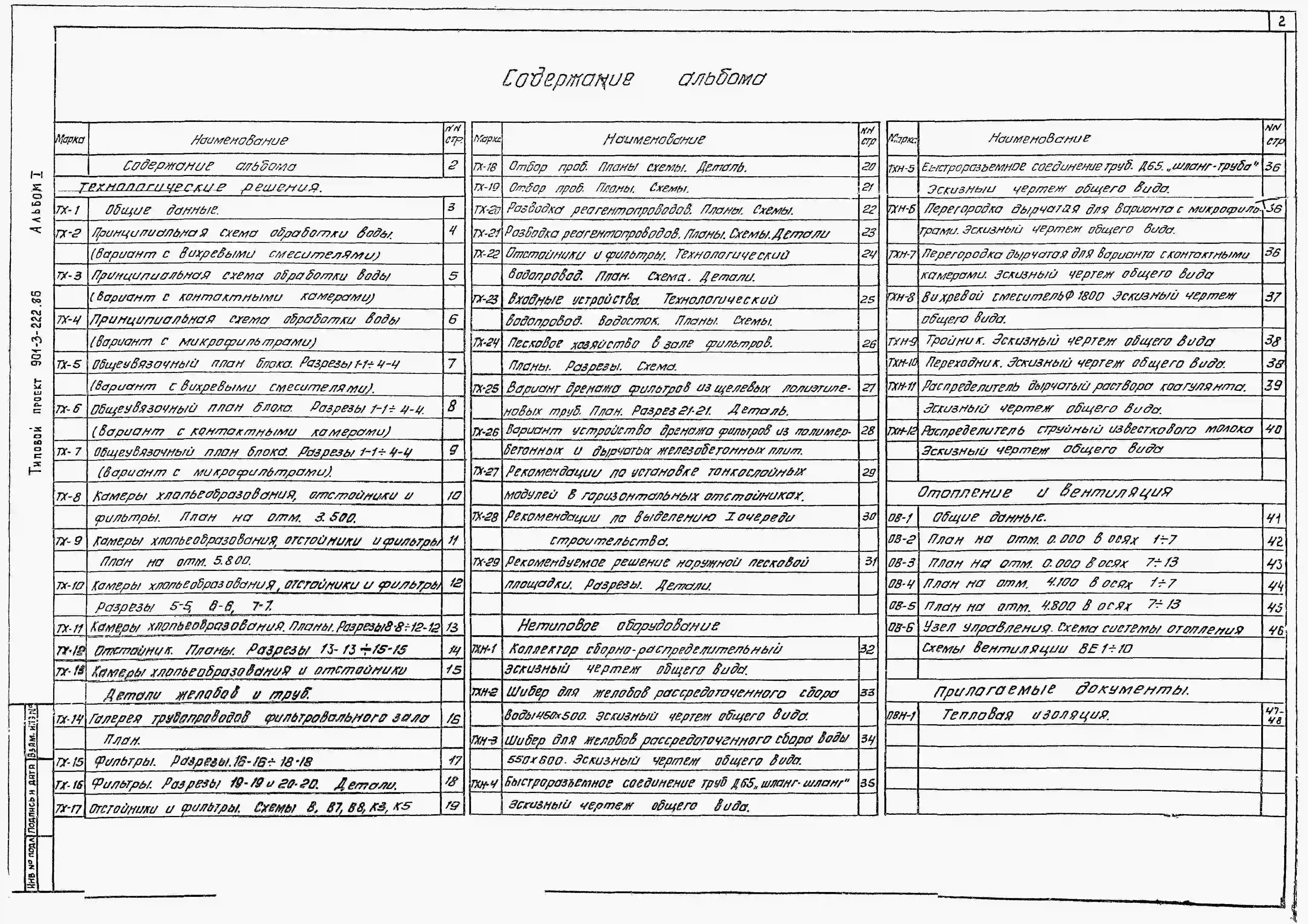 Типовой проект 901-3-222.86 Блок входных устройств, отстойников и фильтров для станции очистки воды поверхностных источников с содержанием взвешенных веществ до 1500 мг/л производительностью 50 тыс. м3/сут (вариант с вихревыми смесителями)