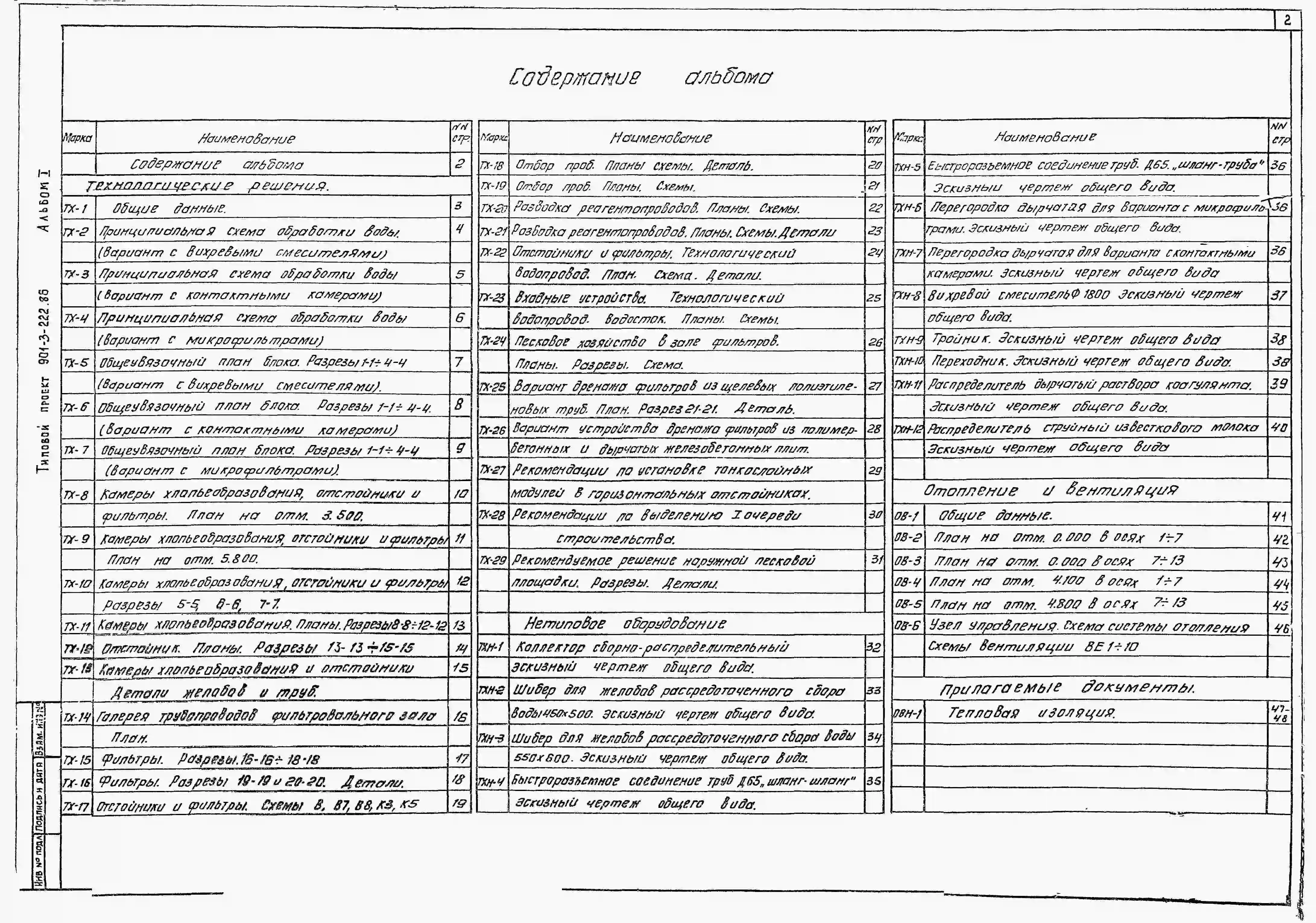 Типовой проект 901-3-223.86 Блок входных устройств, отстойников и фильтров для станции очистки воды поверхностных источников с содержанием взвешенных веществ до 1500 мг/л производительностью 50 тыс. м3/сут (вариант с контактными камерами)