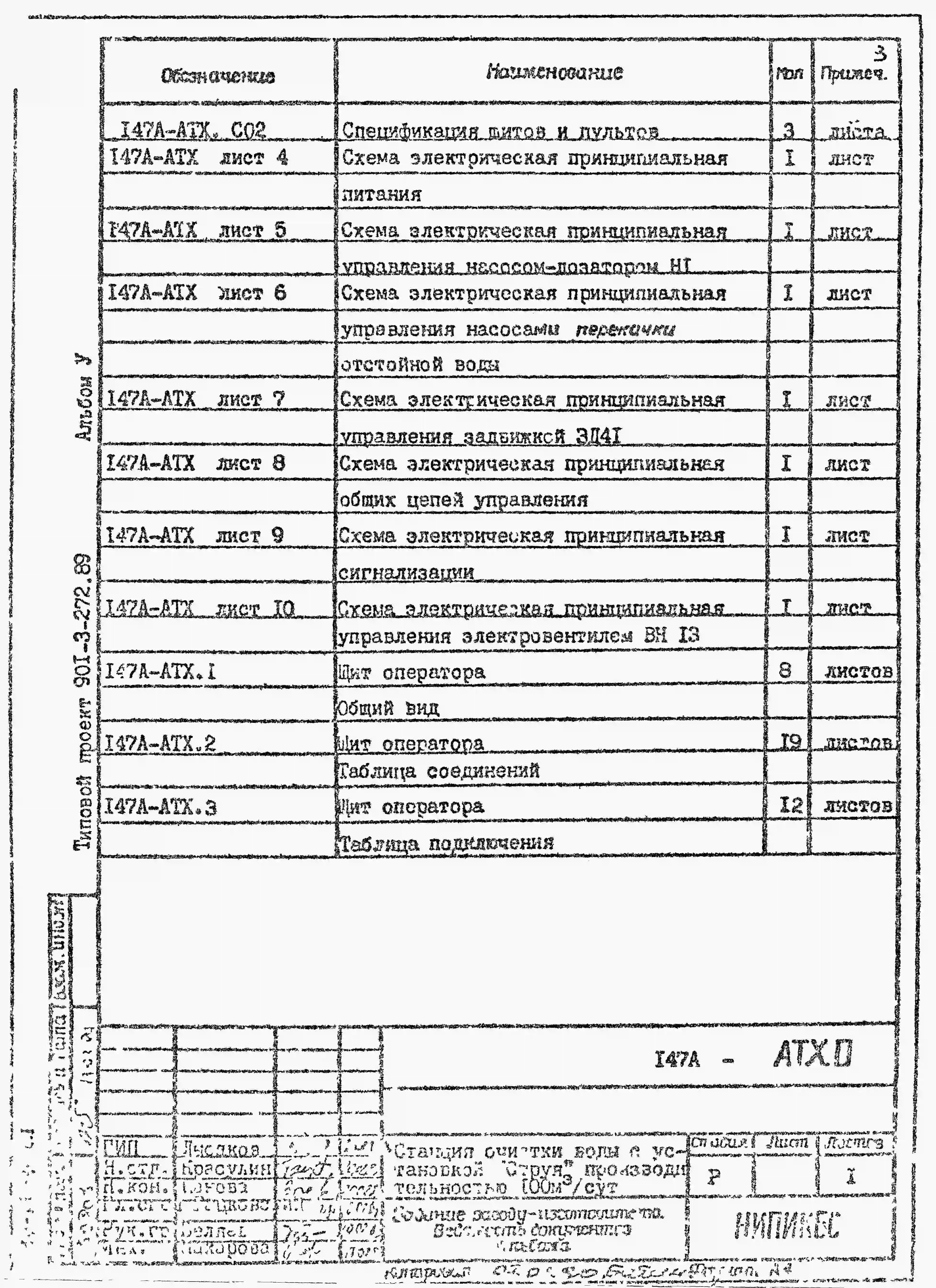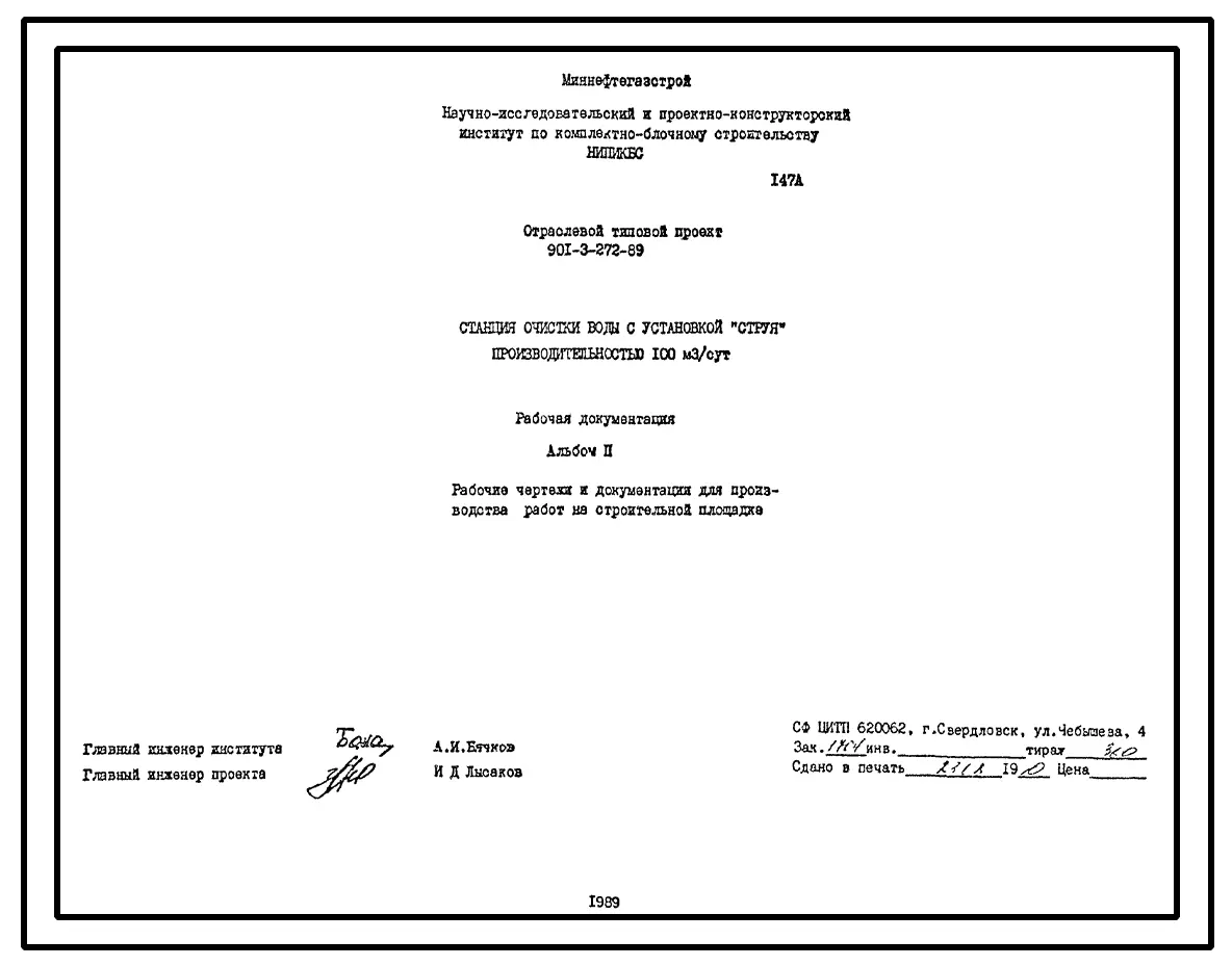 Типовой проект 901-3-272.89 Станция очистки воды с установкой заводского изготовления типа “Струя” производительностью 100 м3/сут (в комплектно-блочном исполнении)