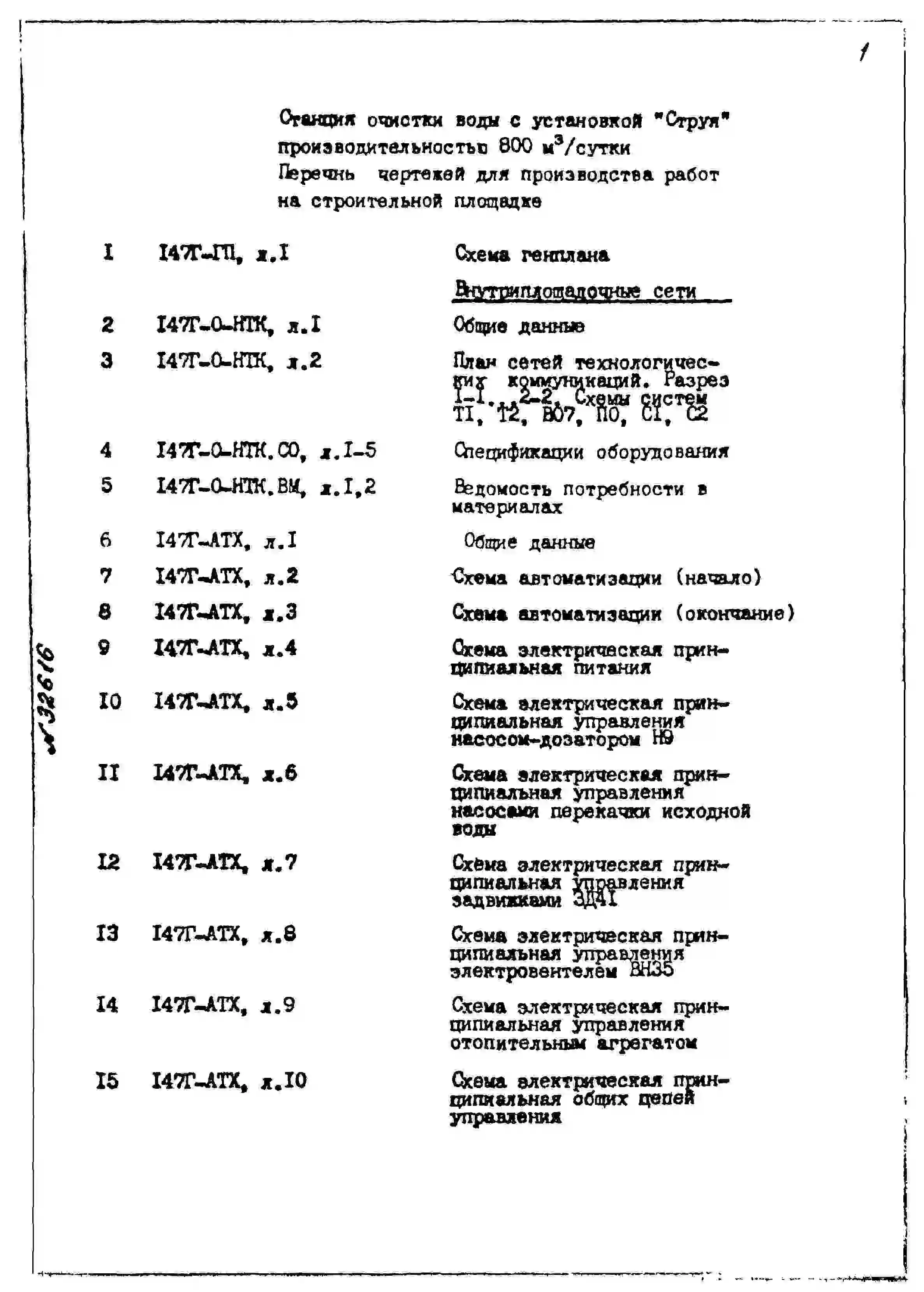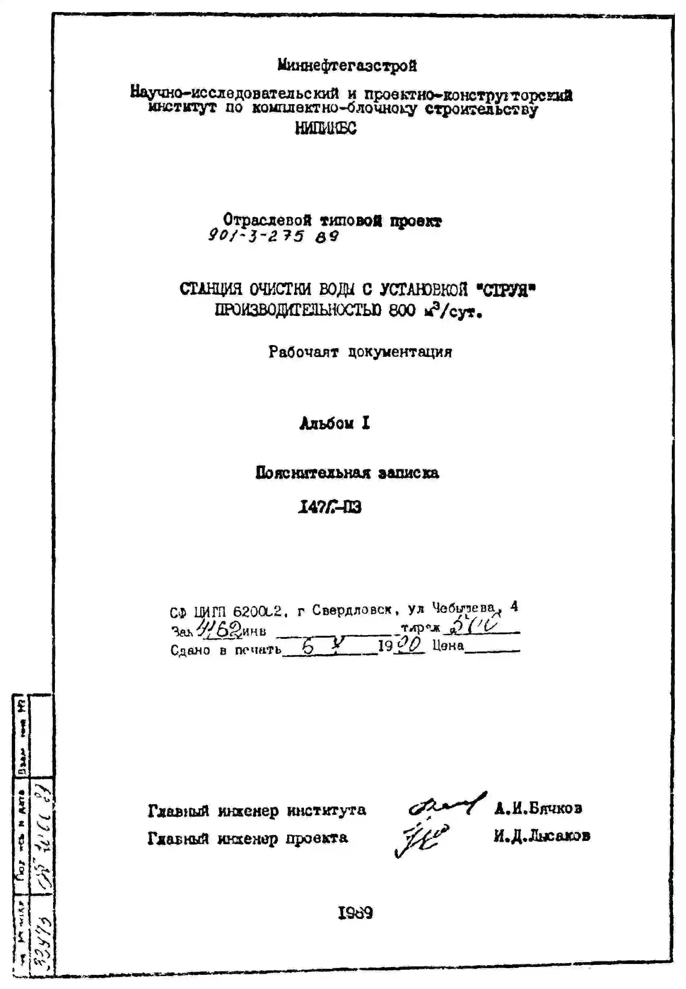 Типовой проект 901-3-275.89 Станция очистки воды с установкой заводского изготовления типа “Струя” производительностью 800 м3/сут (в комплектно-блочном исполнении)