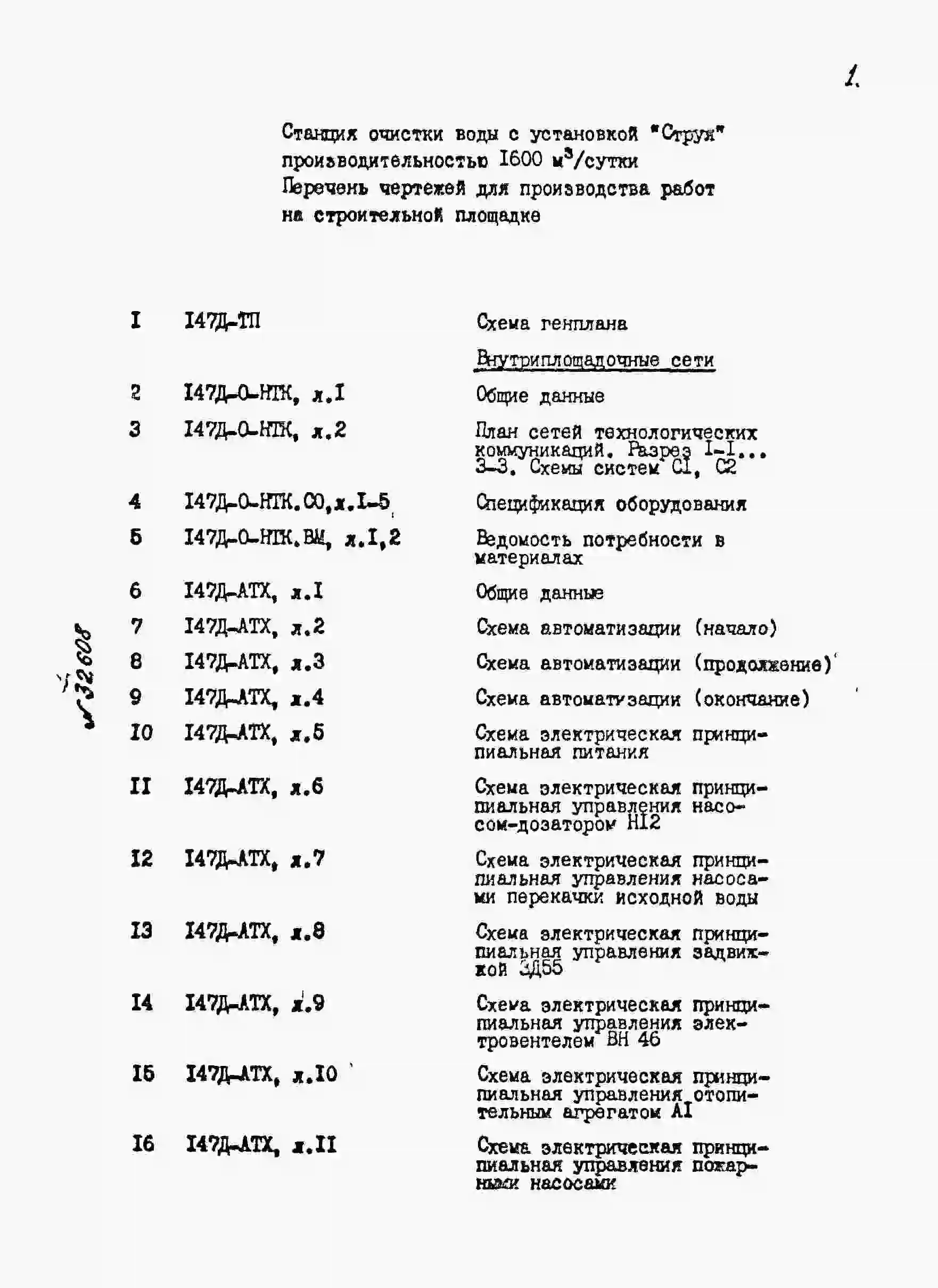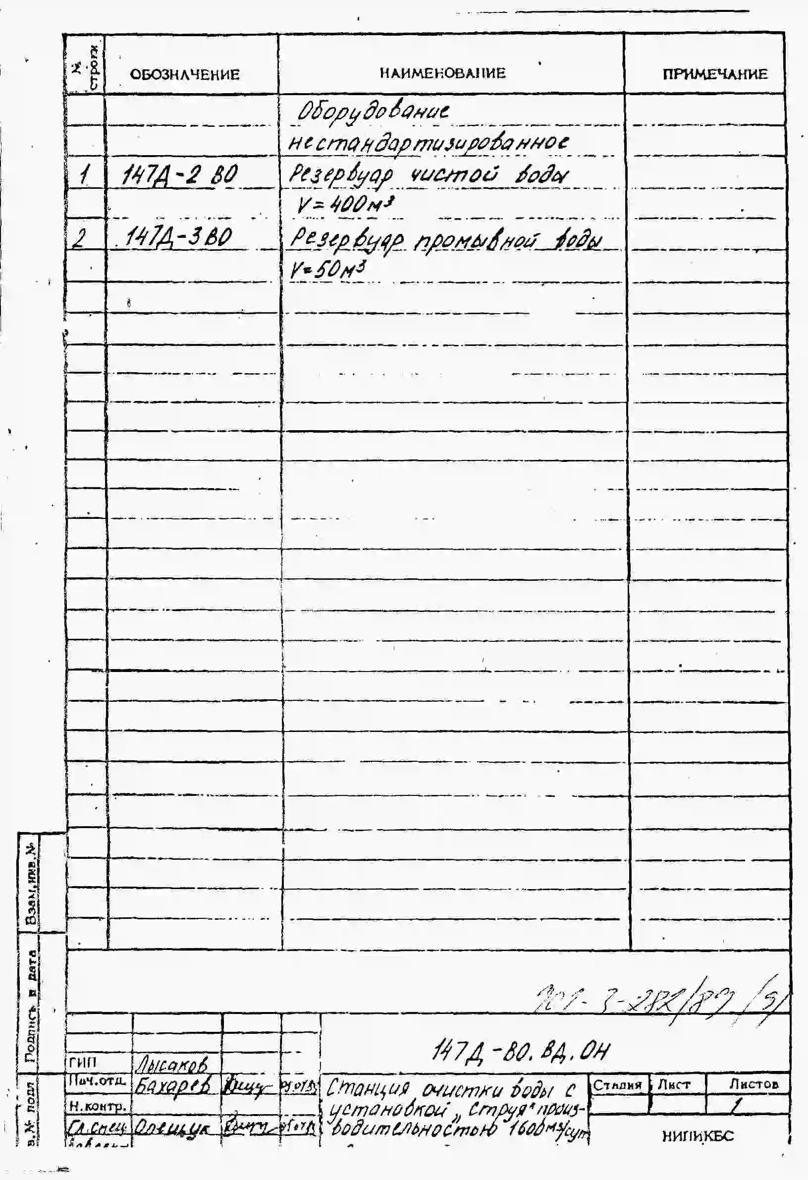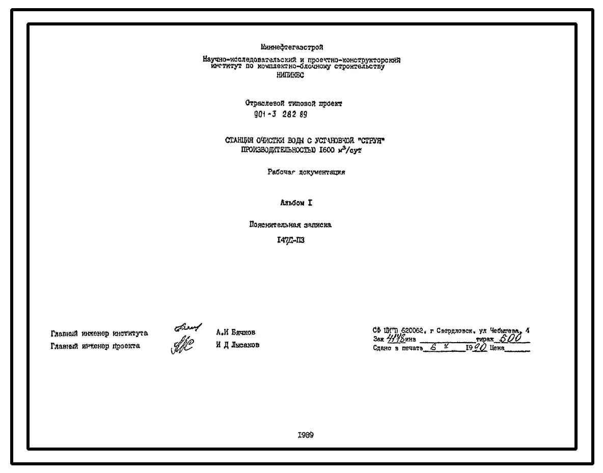 Типовой проект 901-3-282.89 Станция очистки воды с установкой заводского изготовления типа “Струя” производительностью 1600 м3/сут (в комплектно-блочном исполнении)