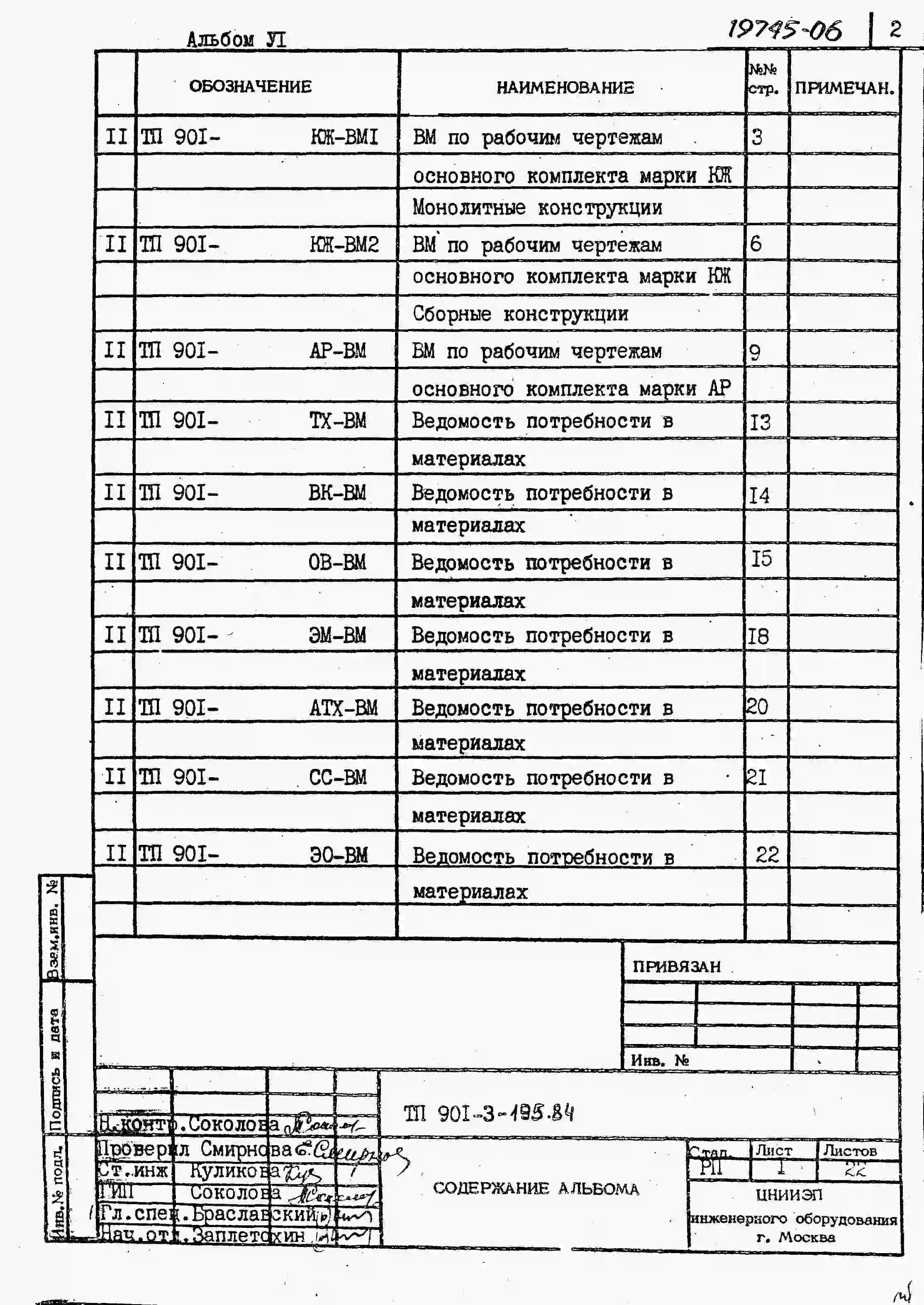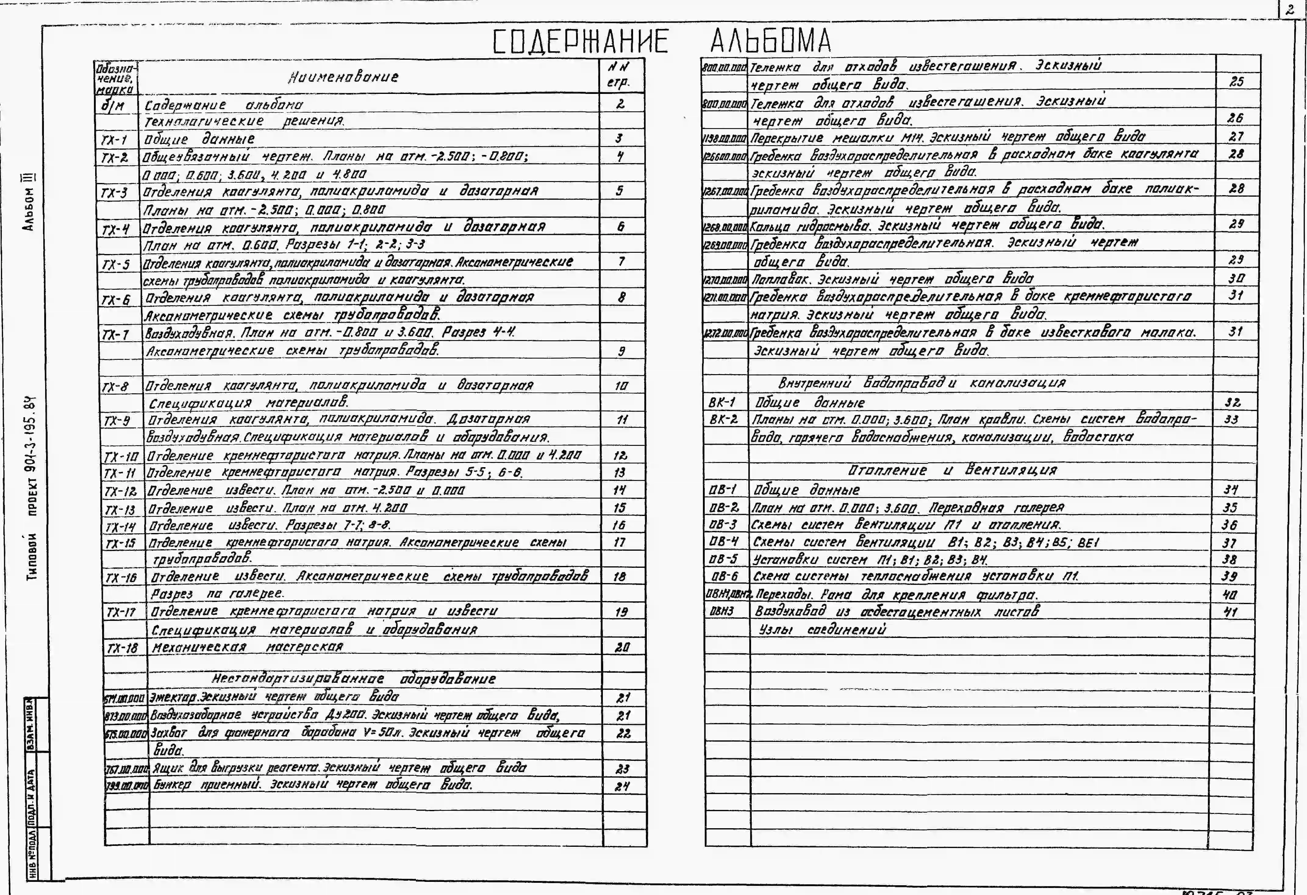 Типовой проект 901-3-195.84 Блок реагентного хозяйства для станции очистки воды поверхностных источников с содержанием взвешенных веществ до 50 мг/л производительностью 50 тыс. м3/сут