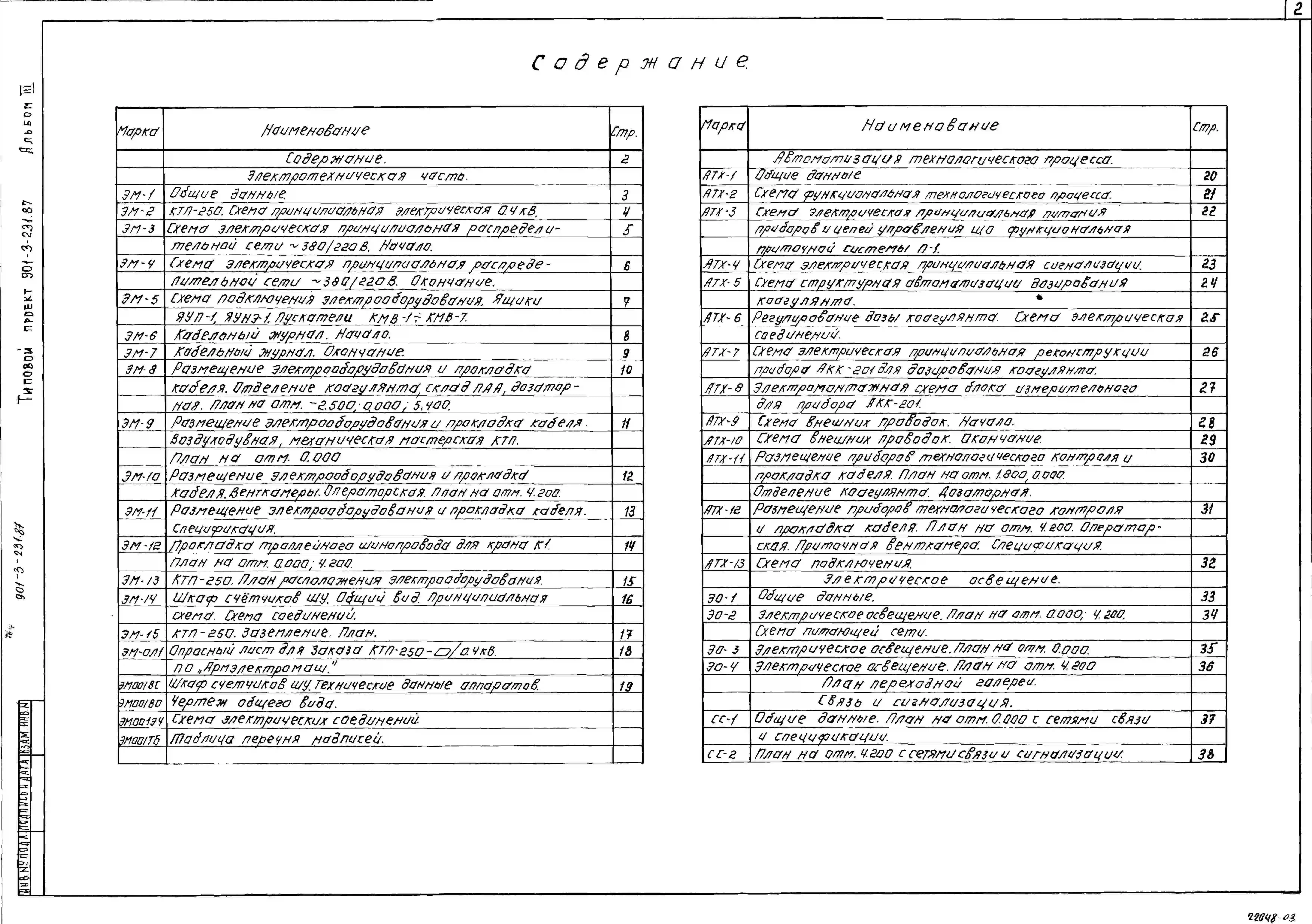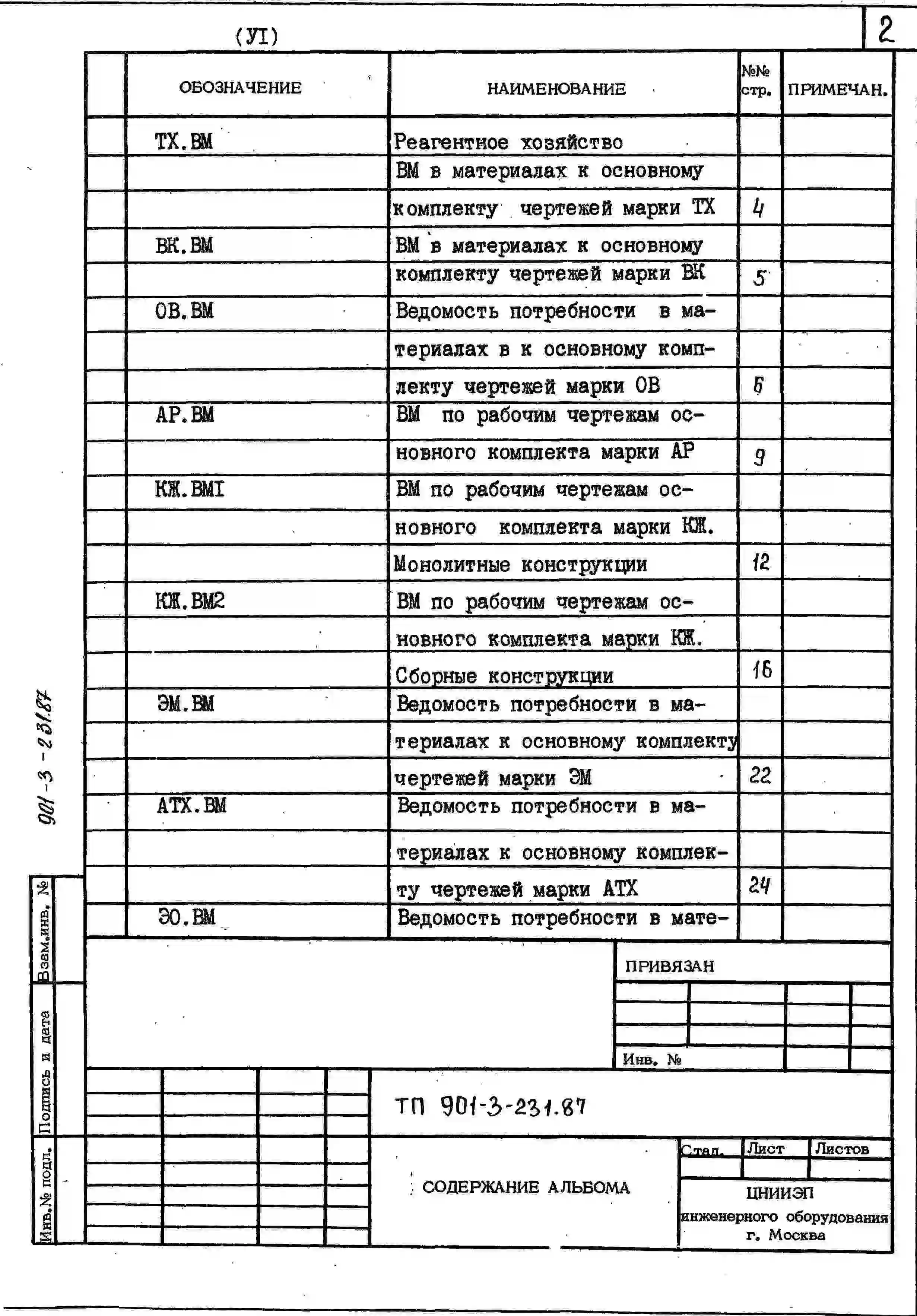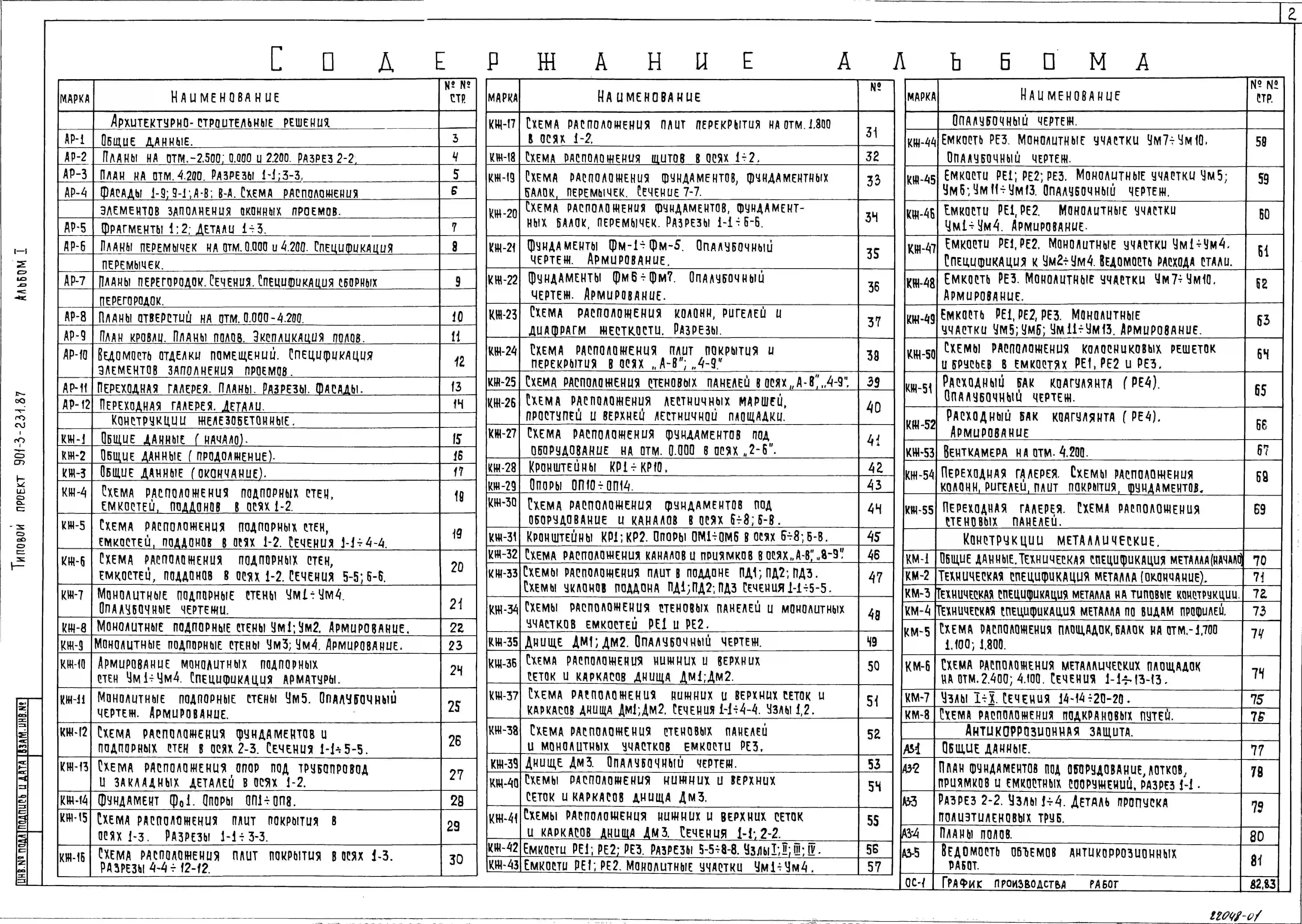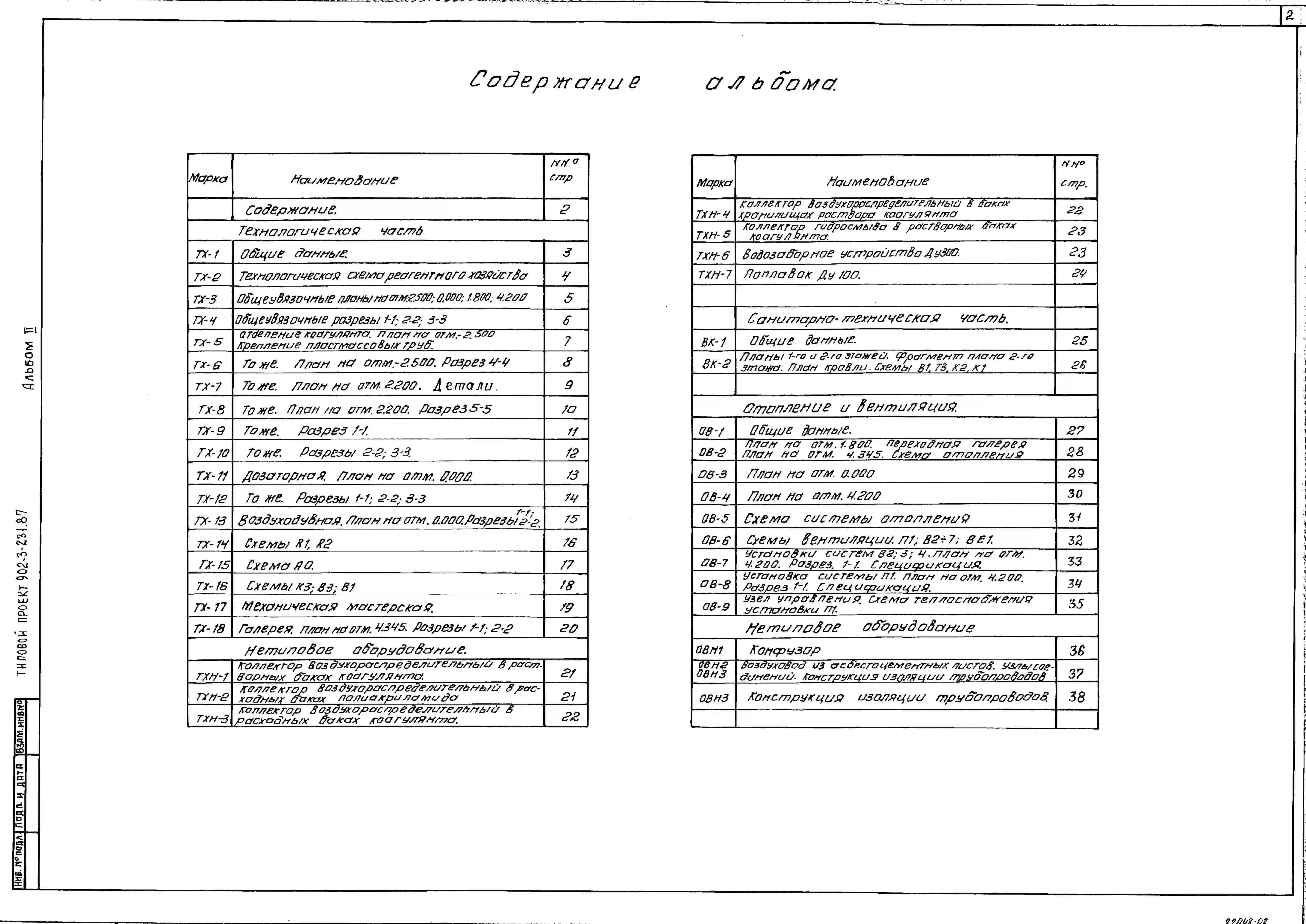 Типовой проект 901-3-231.87 Реагентное хозяйство для станции очистки воды поверхностных источников с содержанием взвешенных веществ до 1500 мг/л производительностью 50 тыс. м3/сут (на 2 реагента)