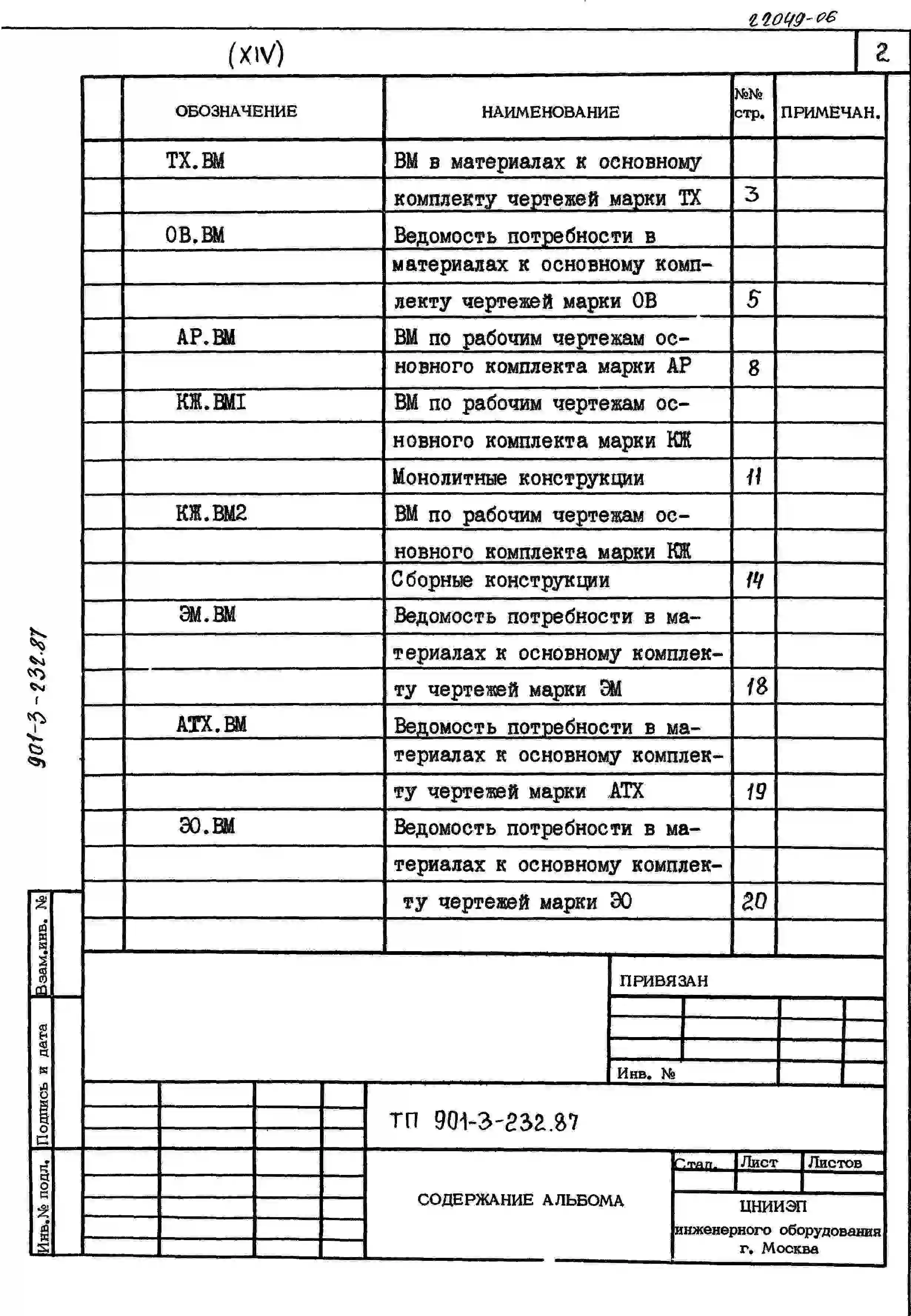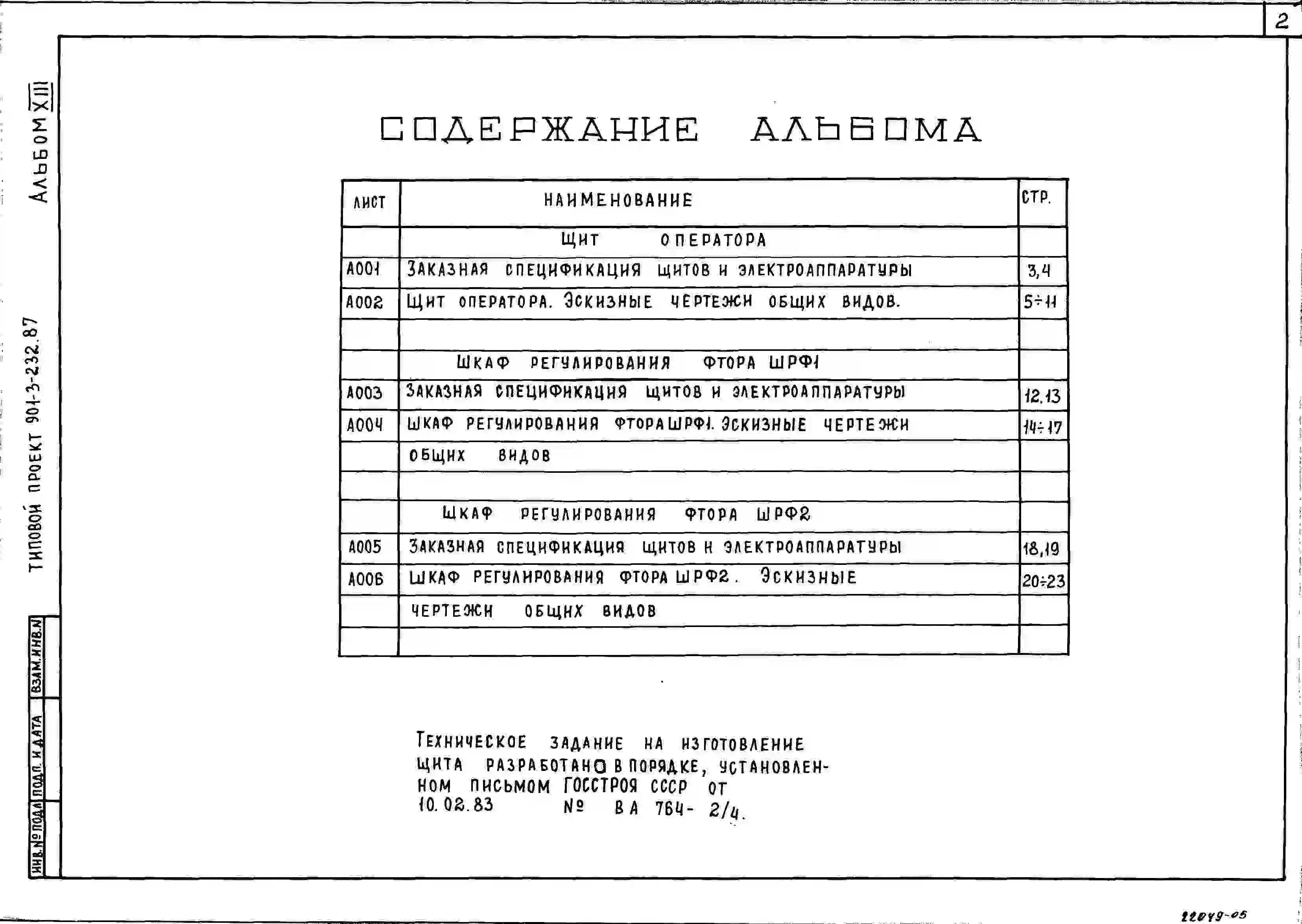 Типовой проект 901-3-232.87 Реагентное хозяйство для станции очистки воды поверхностных источников с содержанием взвешенных веществ до 1500 мг/л производительностью 50 тыс. м3/сут (на 5 реагентов)