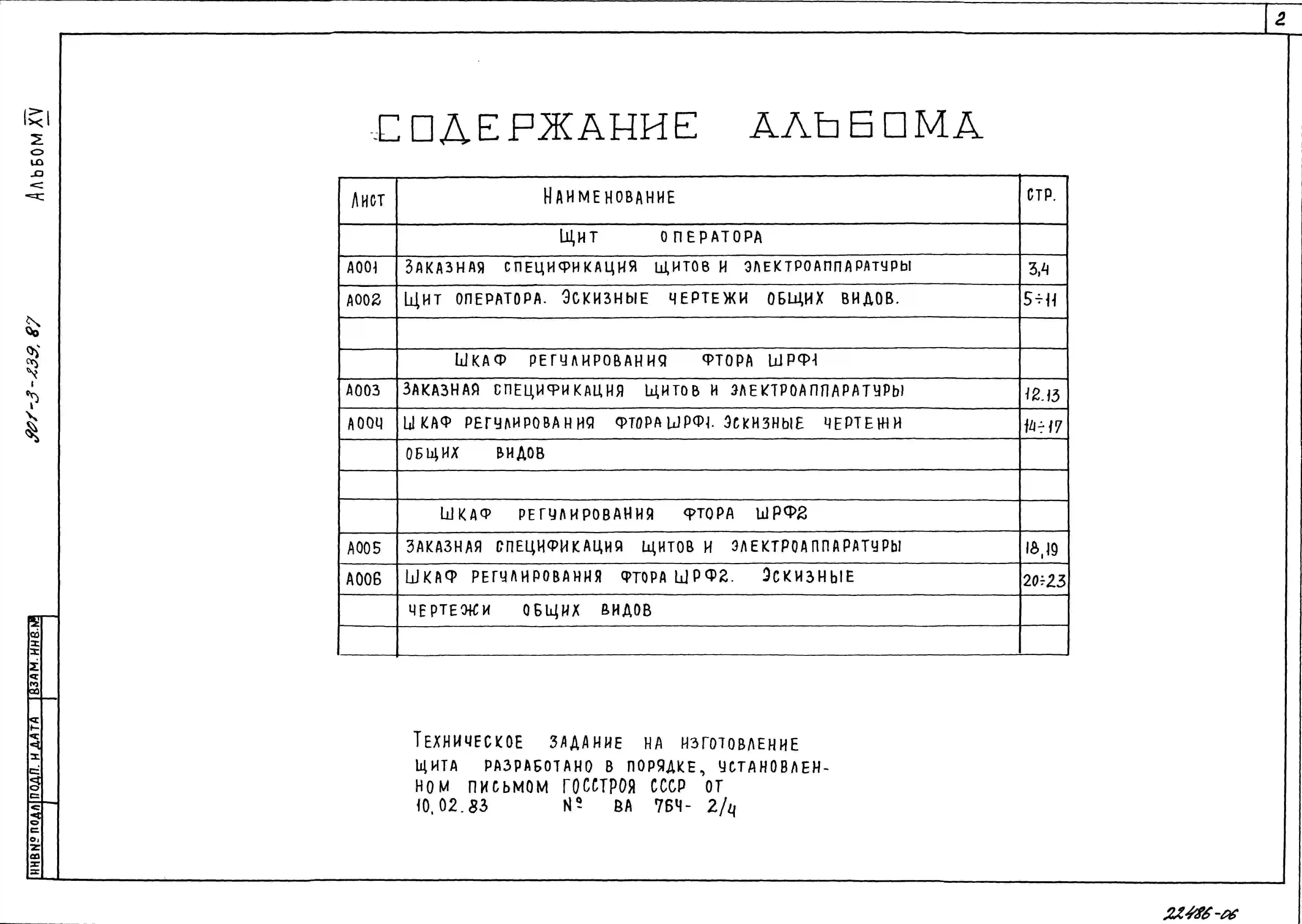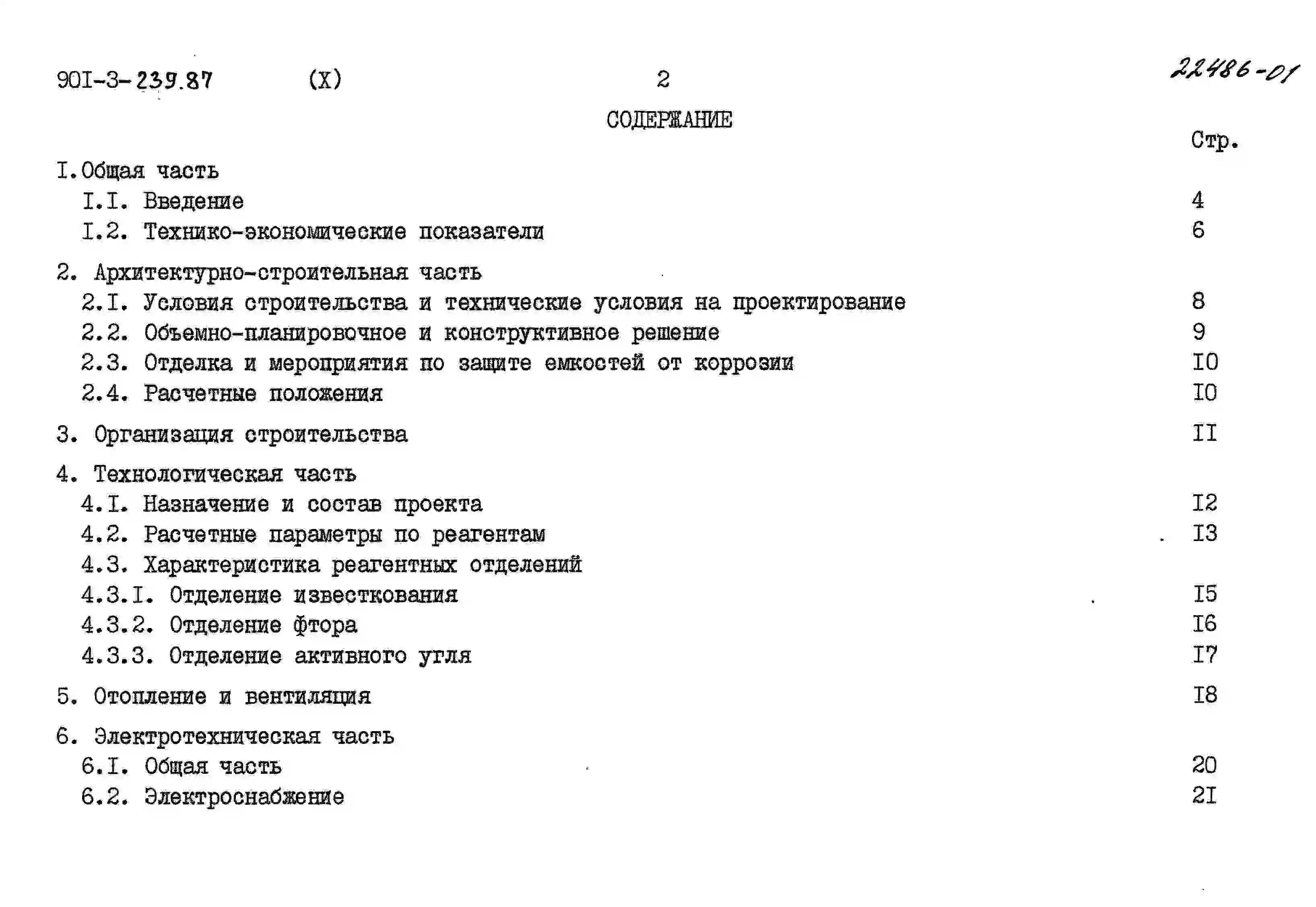 Типовой проект 901-3-239.87 Реагентное хозяйство для станции очистки воды поверхностных источников с содержанием взвешенных веществ до 1500 мг/л производительностью 100 тыс. м3/сут (на 5 реагентов)