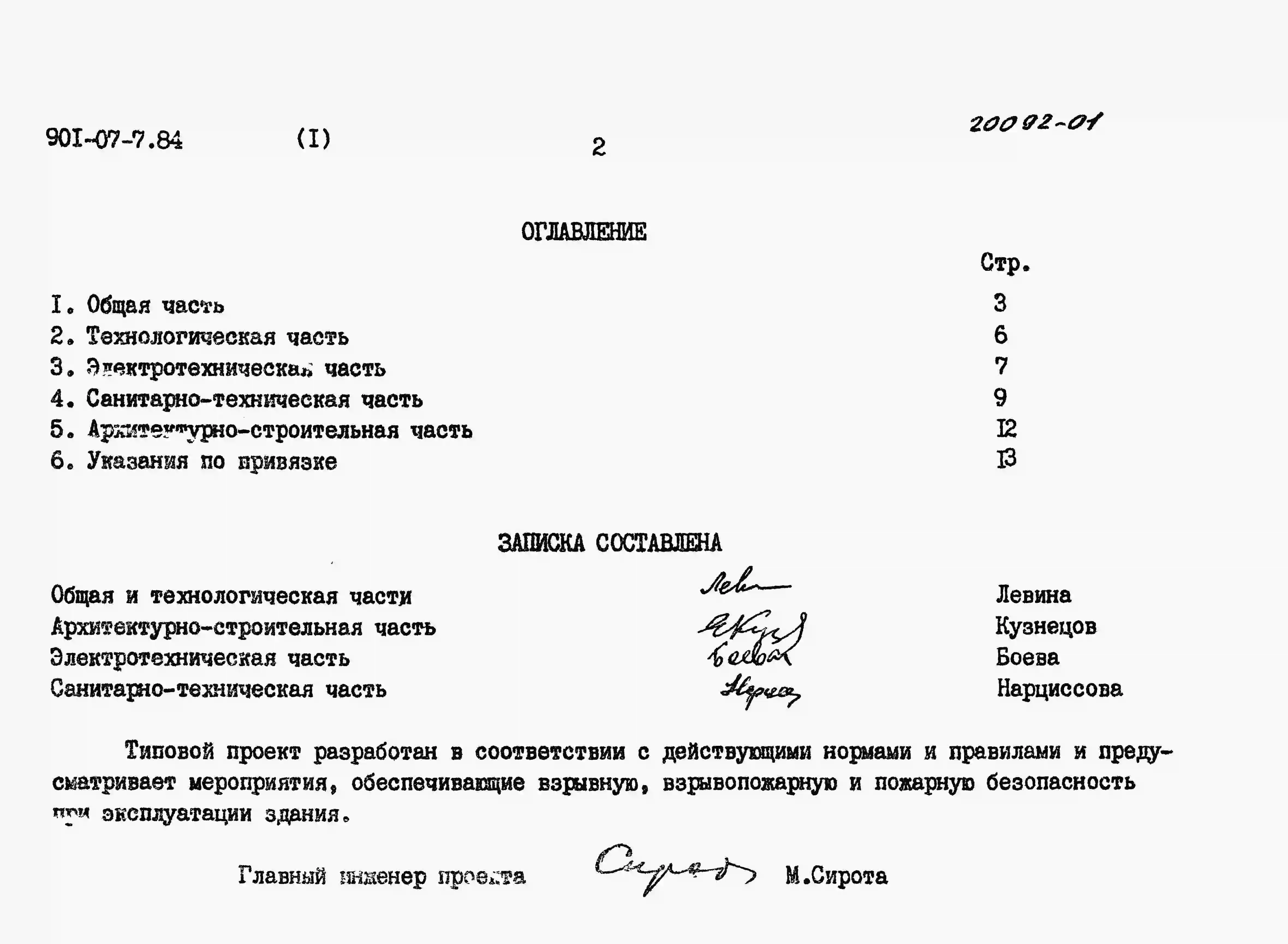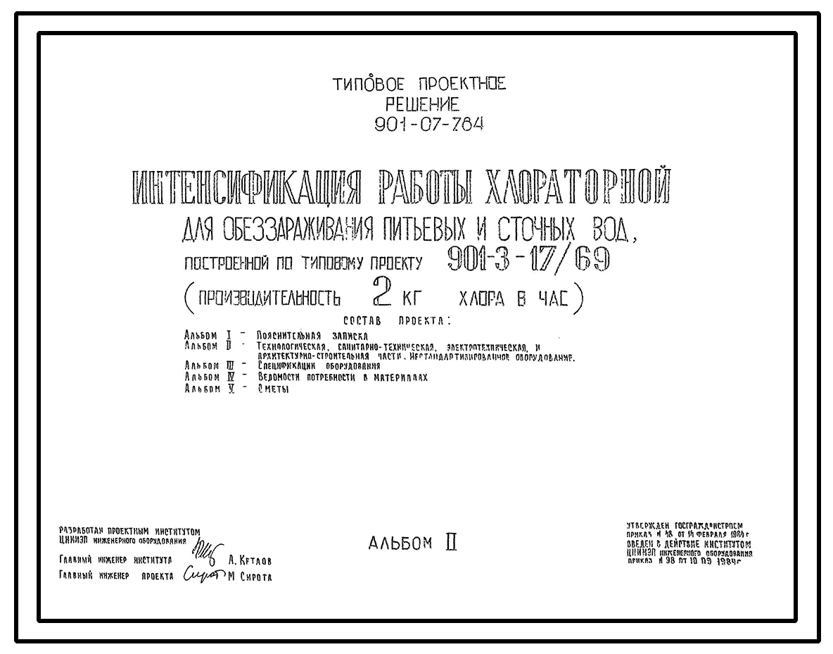 Типовой проект 901-07-7.84 Интенсификация работы хлораторной для обеззараживания питьевых и сточных вод, построенной по типовому проекту 901-3-17/69 (производительностью 2 кг хлора в час)