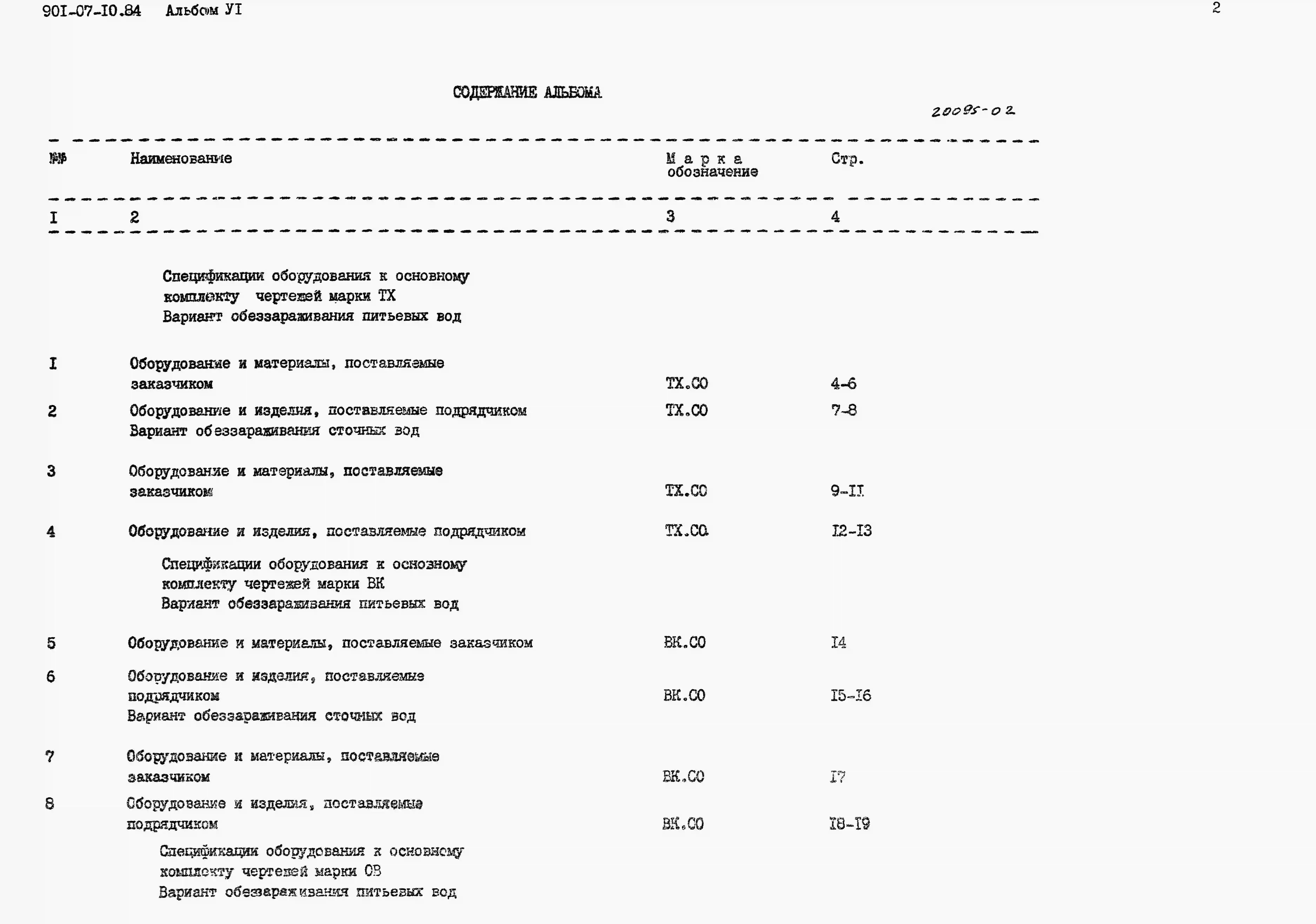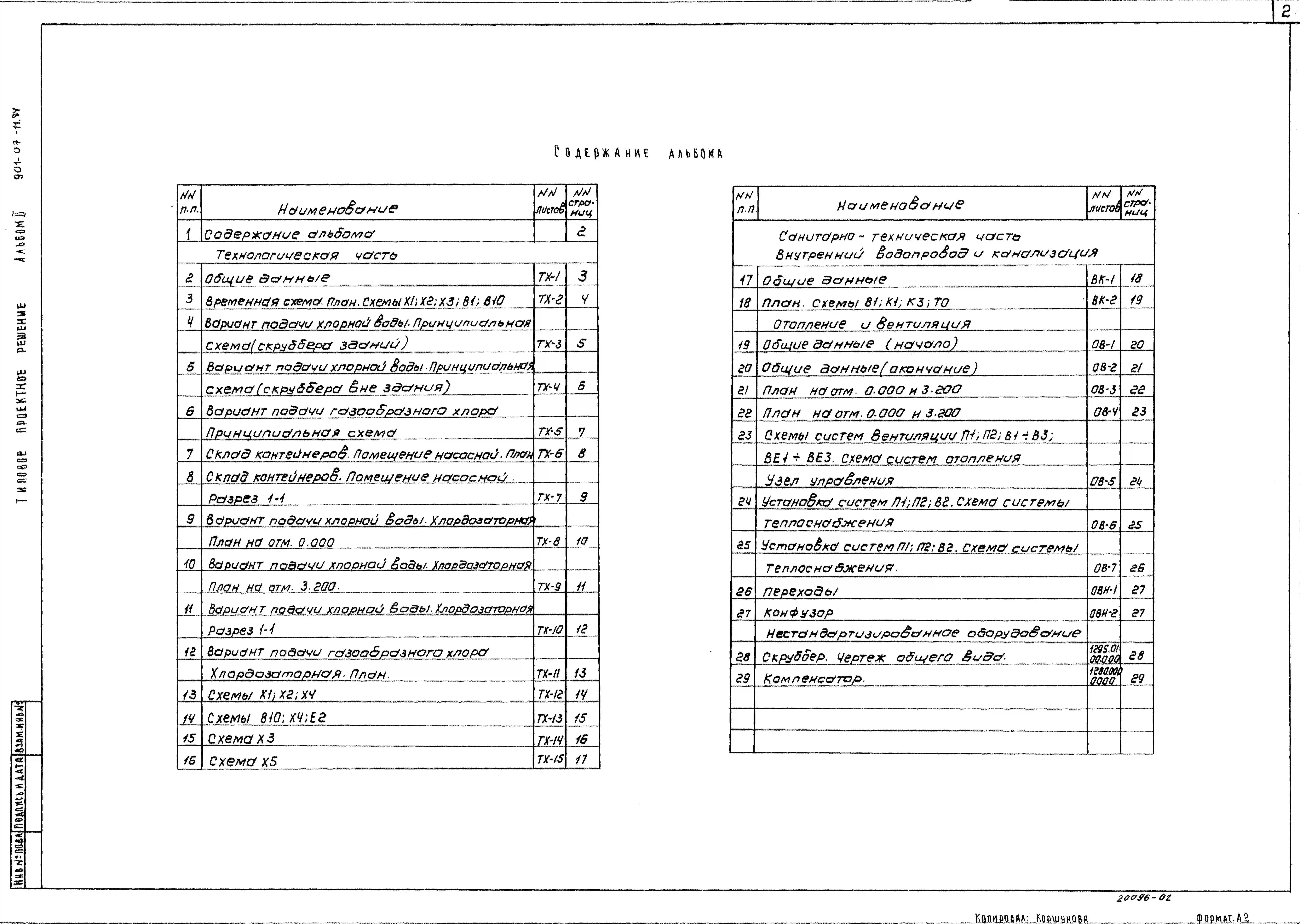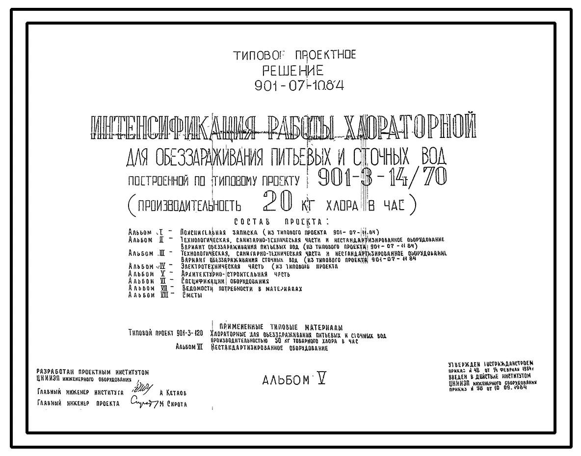 Типовой проект 901-07-10.84 Интенсификация работы хлораторной для обеззараживания питьевых и сточных вод, построенной по типовому проекту 901-3-14/70 (производительностью 20 кг хлора в час)