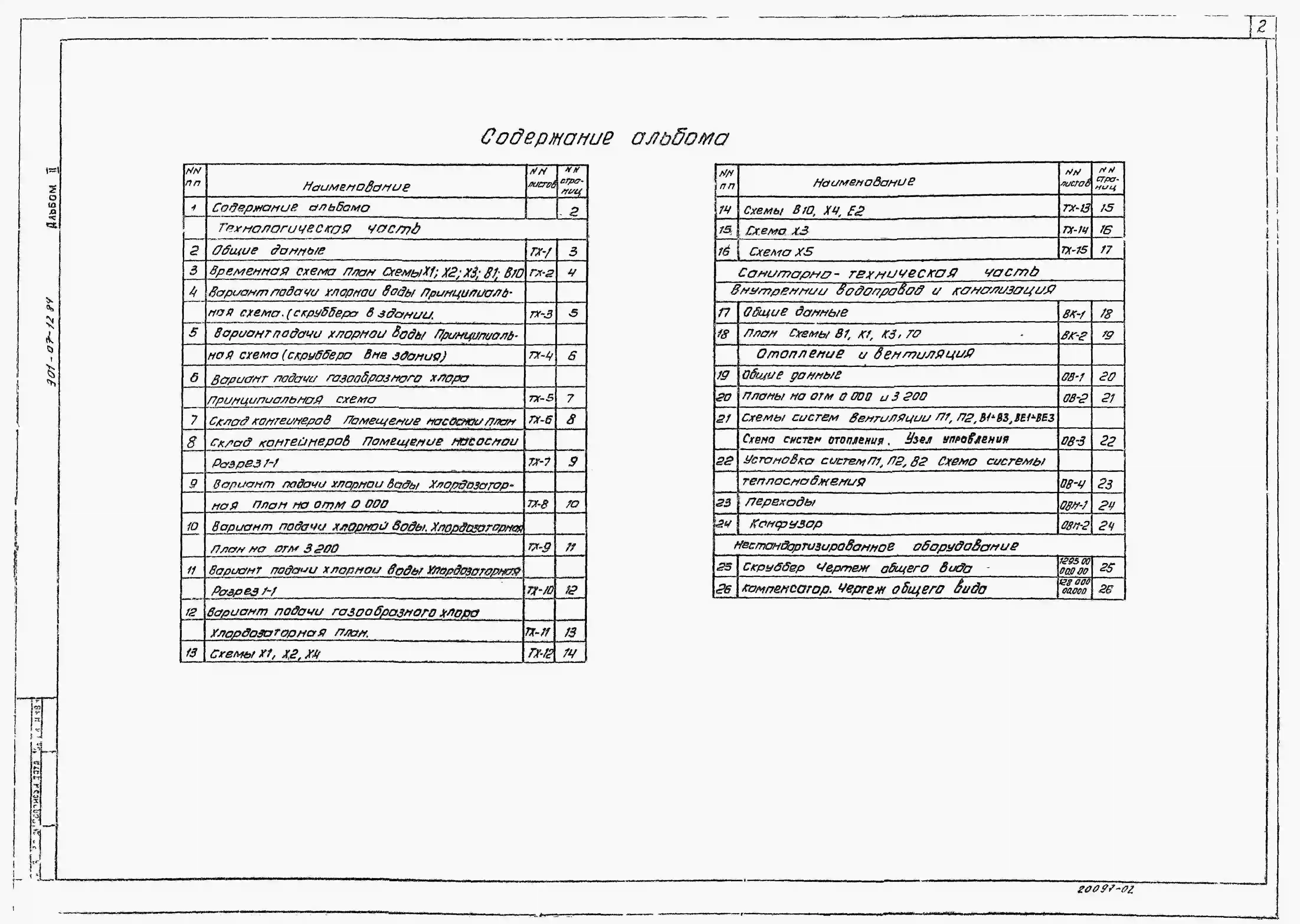 Типовой проект 901-07-12.84 Интенсификация работы хлораторной для обеззараживания питьевых и сточных вод, построенной по типовому проекту 901-3-10/70 (производительностью 50 кг хлора в час)