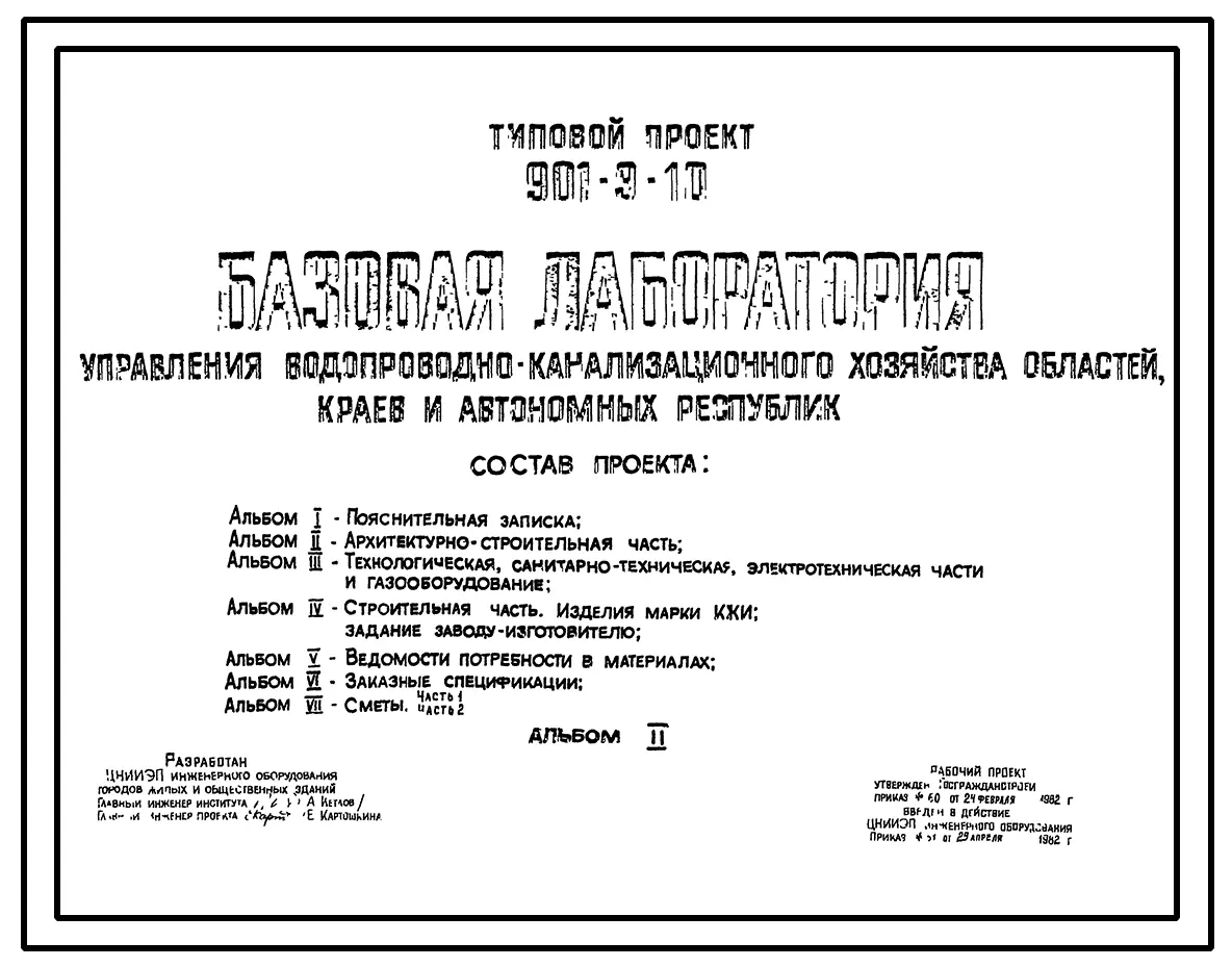 Типовой проект 901-9-10 Базовая лаборатория управления водопроводно-канализационного хозяйства областей. Краев и автономных республик