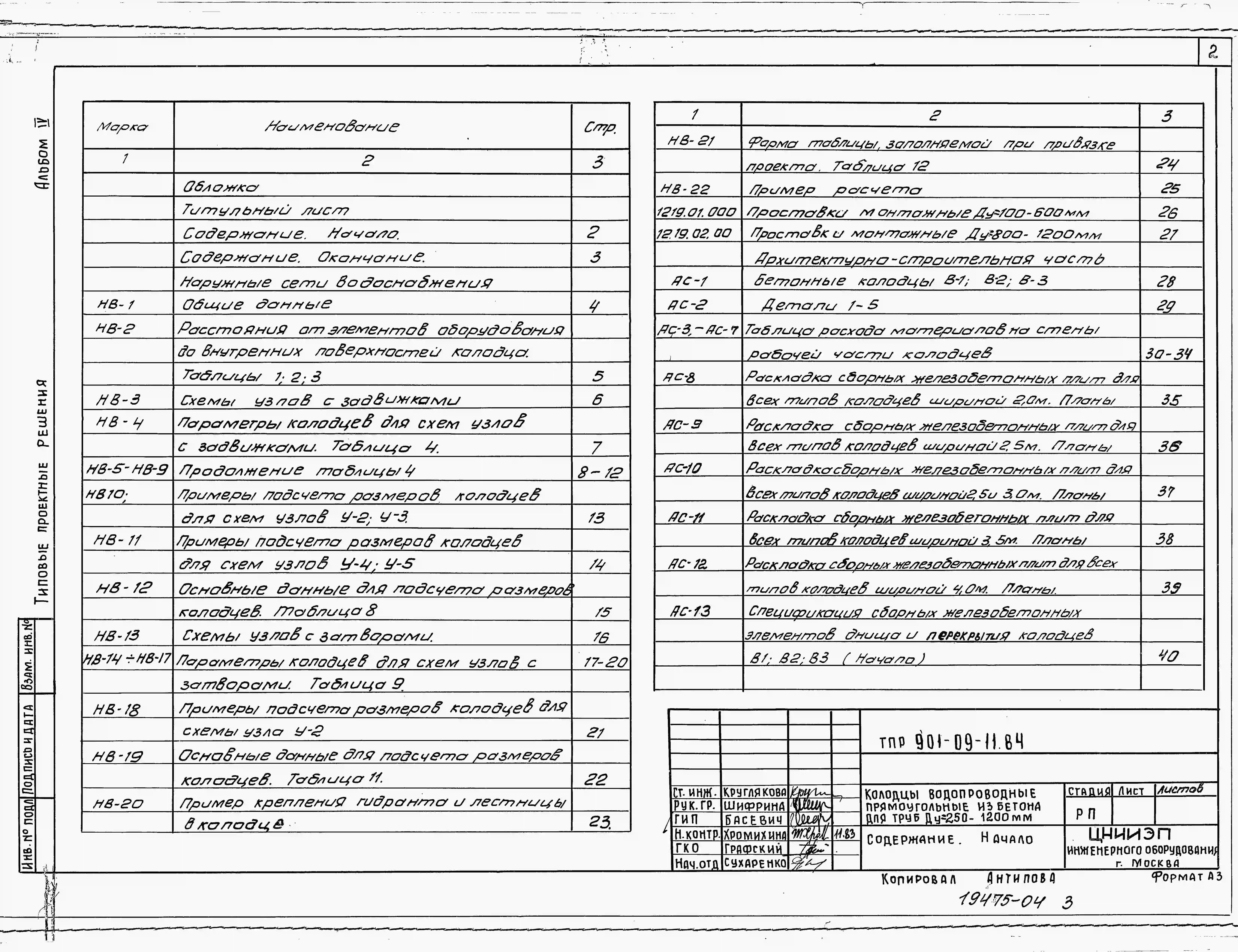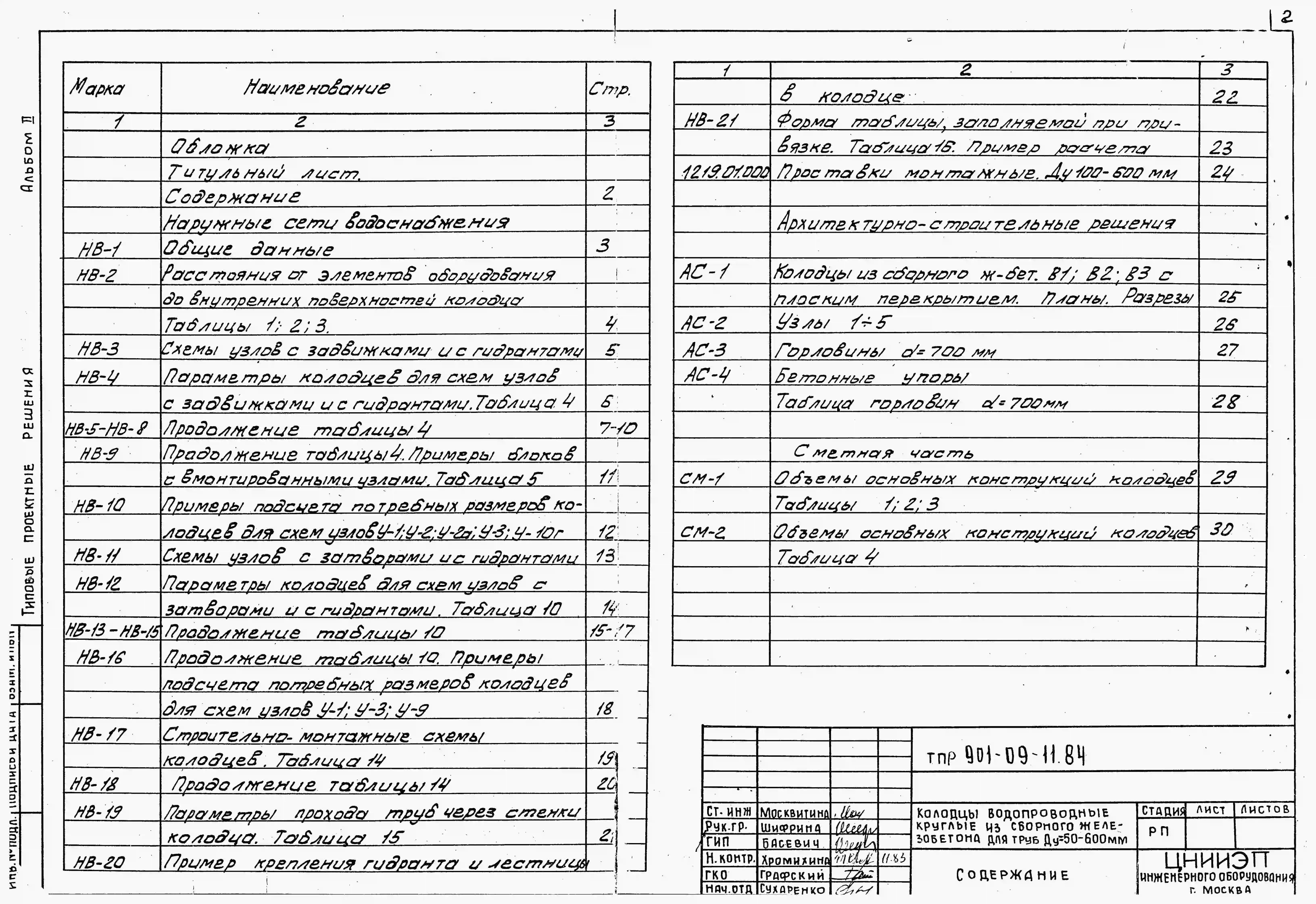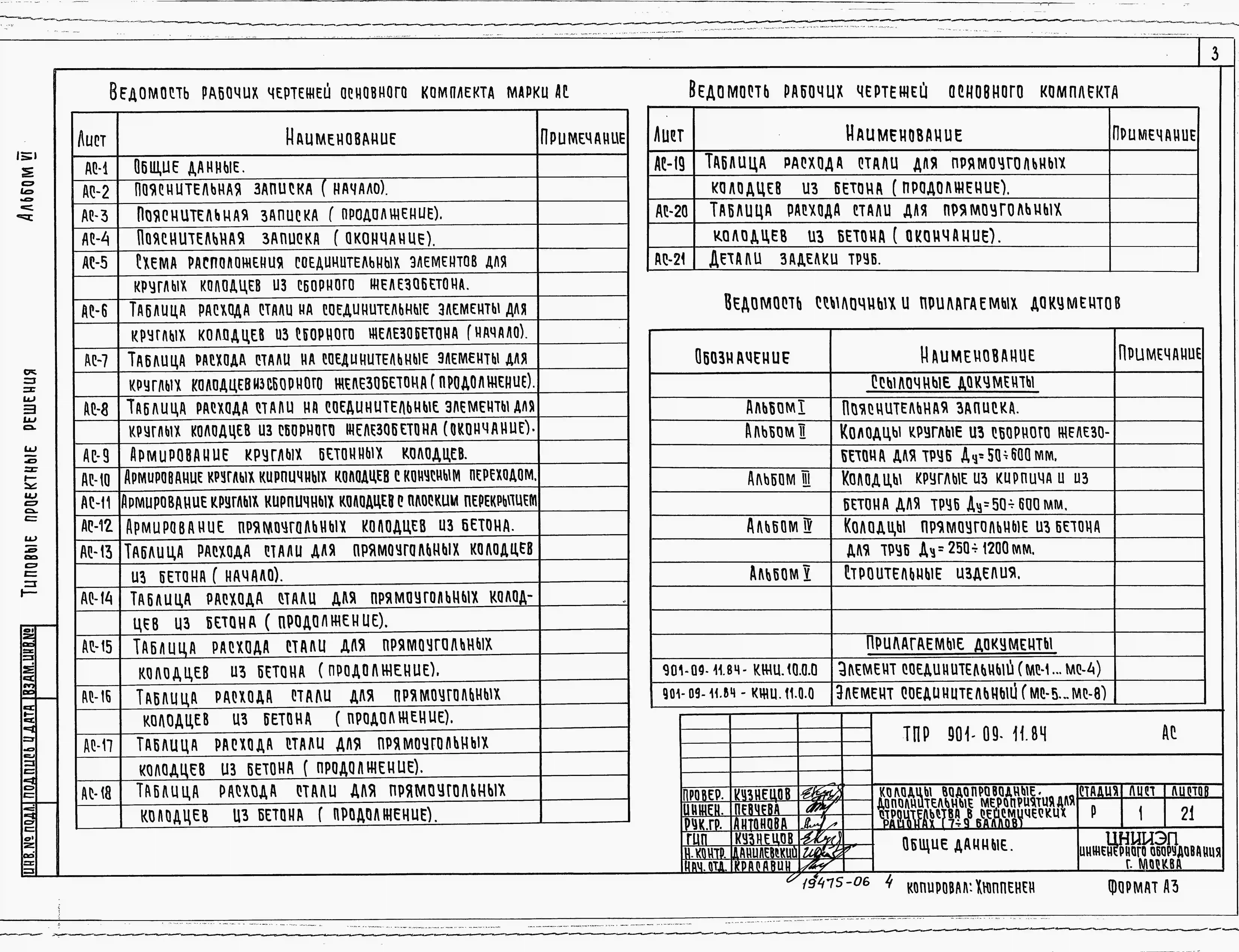 Типовой проект 901-09-11.84 Колодцы водопроводные. Проект в формате DWG
