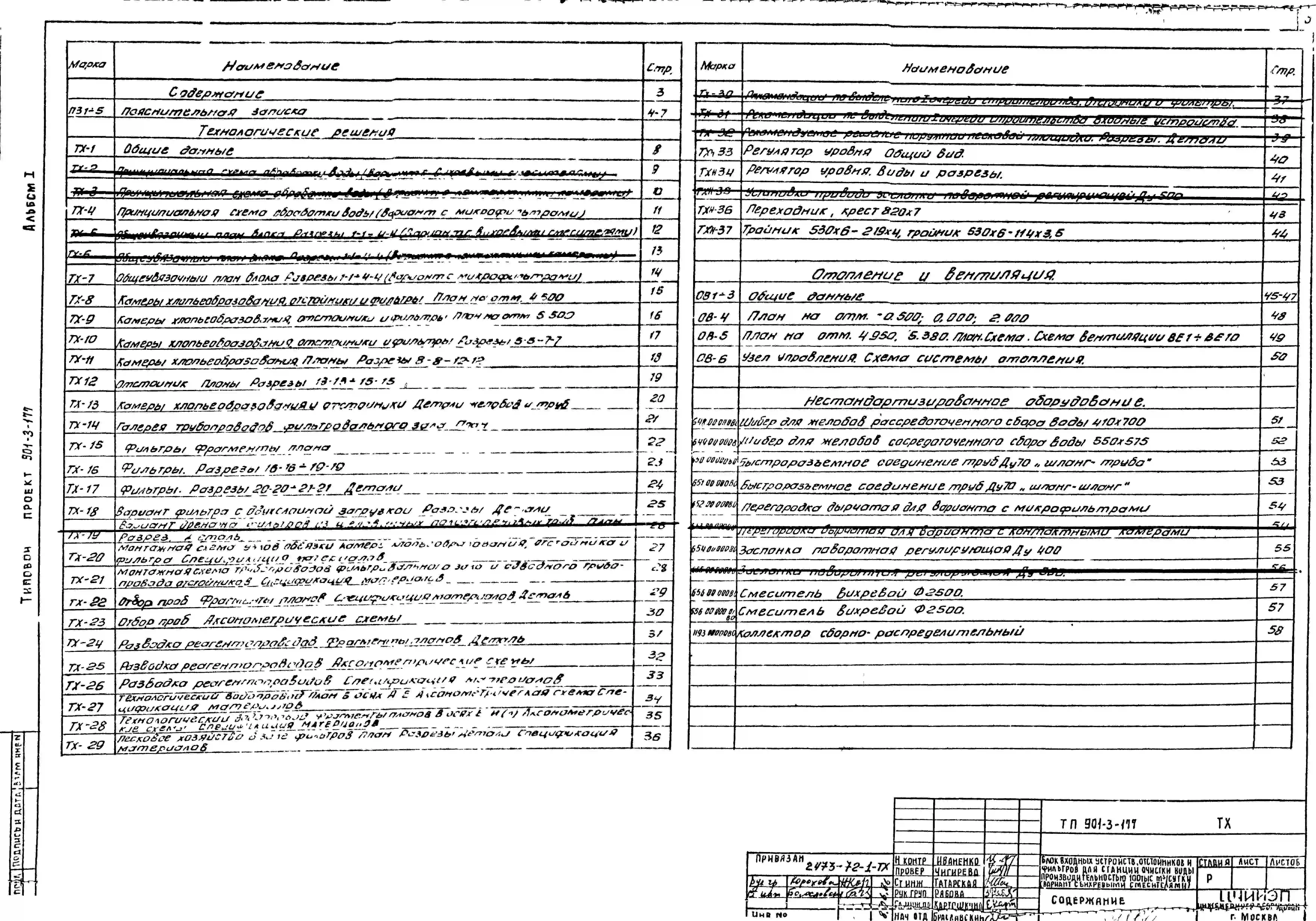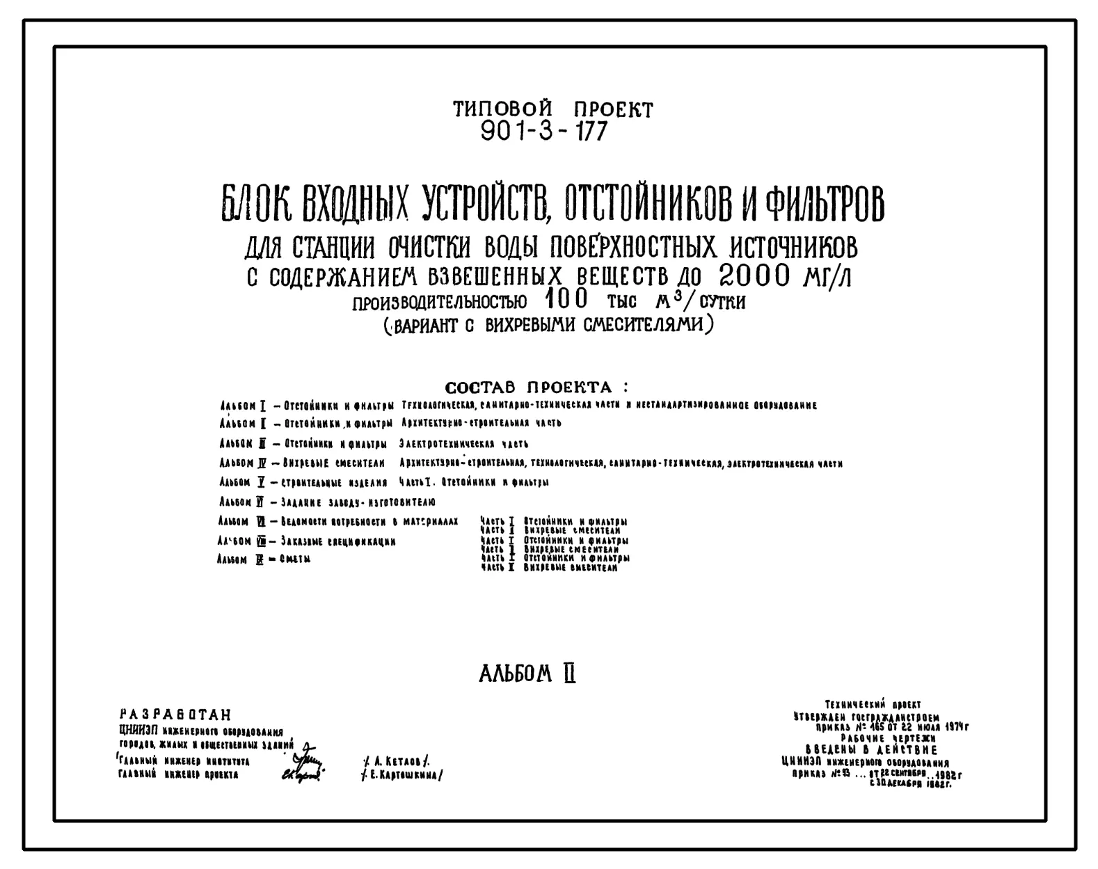 Типовой проект 901-3-177 Блок входных устройств, отстойников и фильтров для станции очистки воды поверхностных источников с содержанием взвешенных веществ до 2000 мг/л производительностью 100 тыс.м.куб./сутки (вариант с вихревыми смесителями)