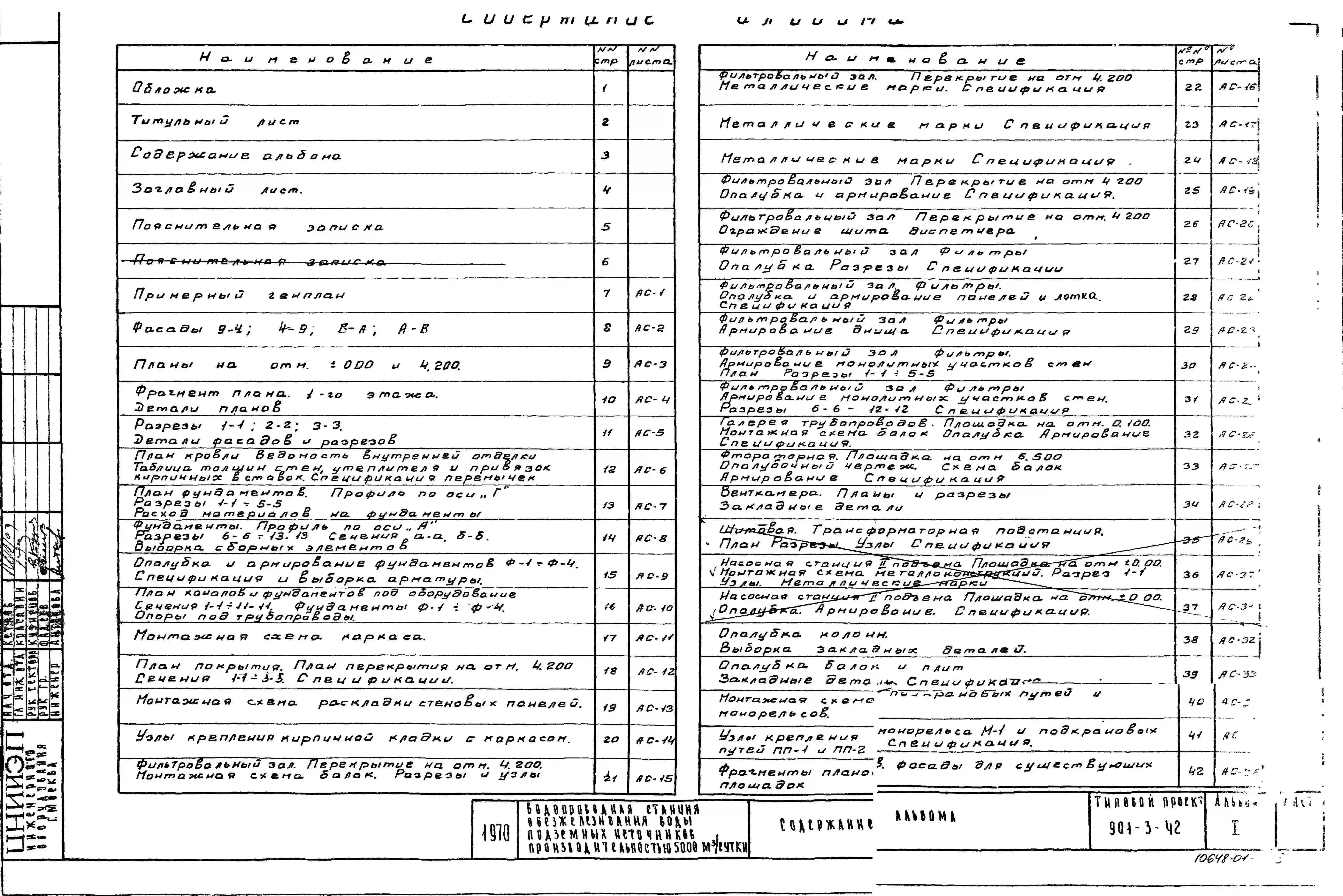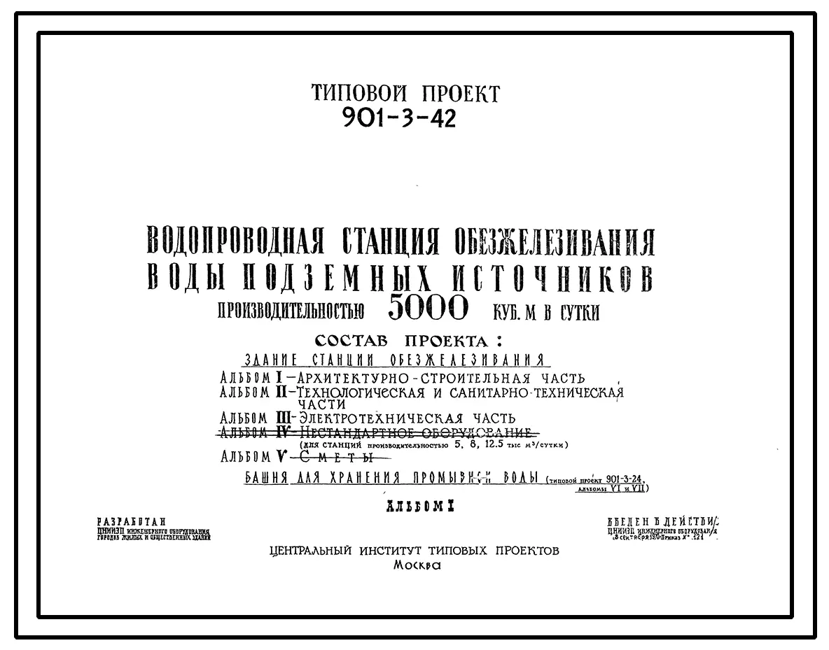 Типовой проект 901-3-42 Водопроводная станция обезжелезивания воды подземных источников производительностью 5000 м3/сутки