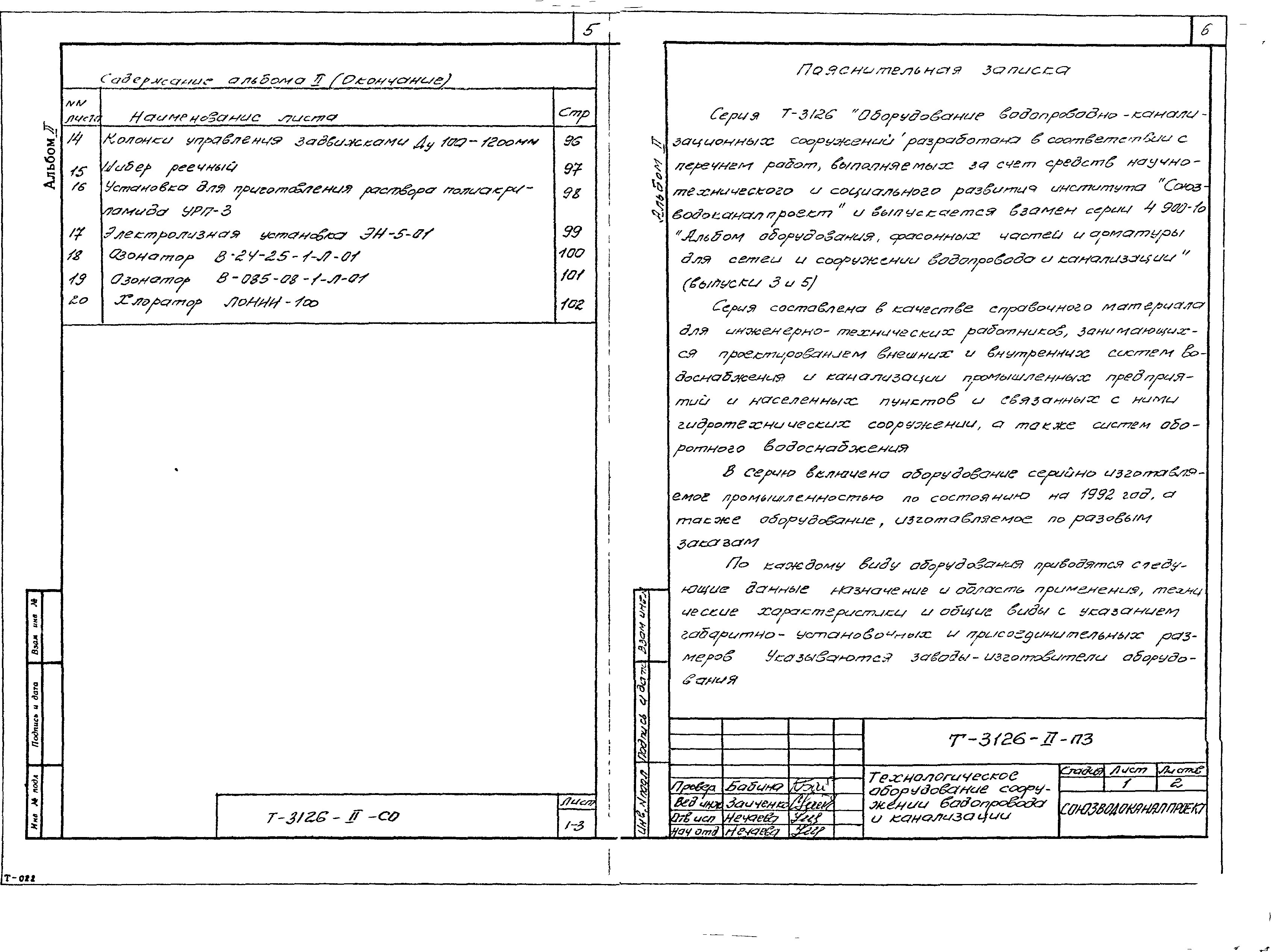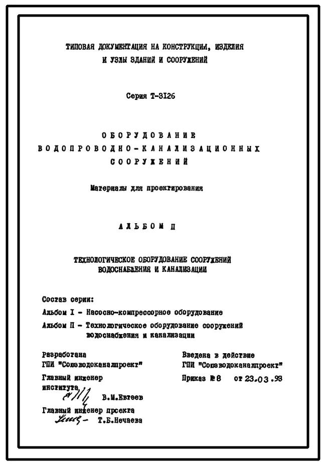 Технический проект Т-3126 Оборудование водопроводно-канализационных сооружений.