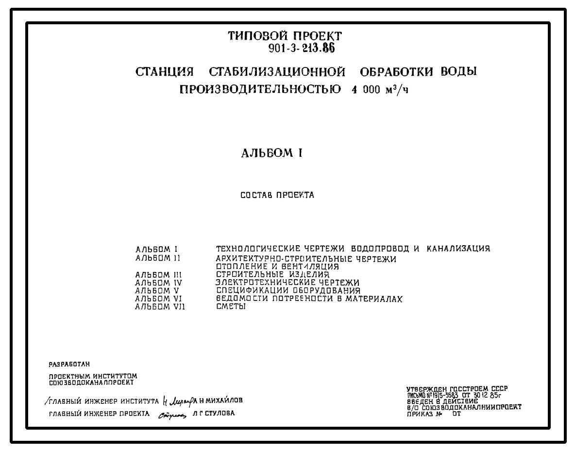 Типовой проект 901-3-213.86 Станция стабилизационной обработки воды производительностью 4000 м.куб./час