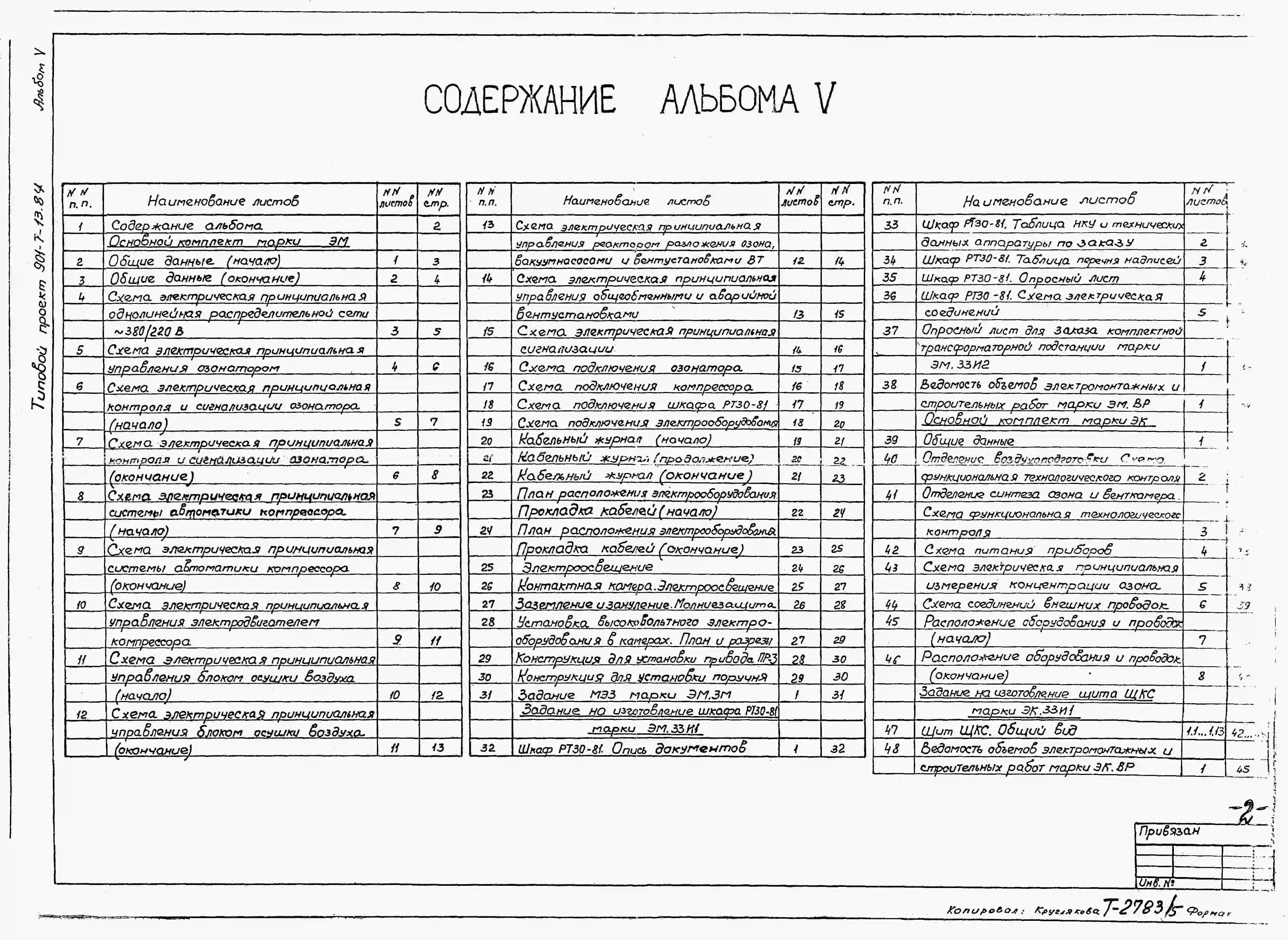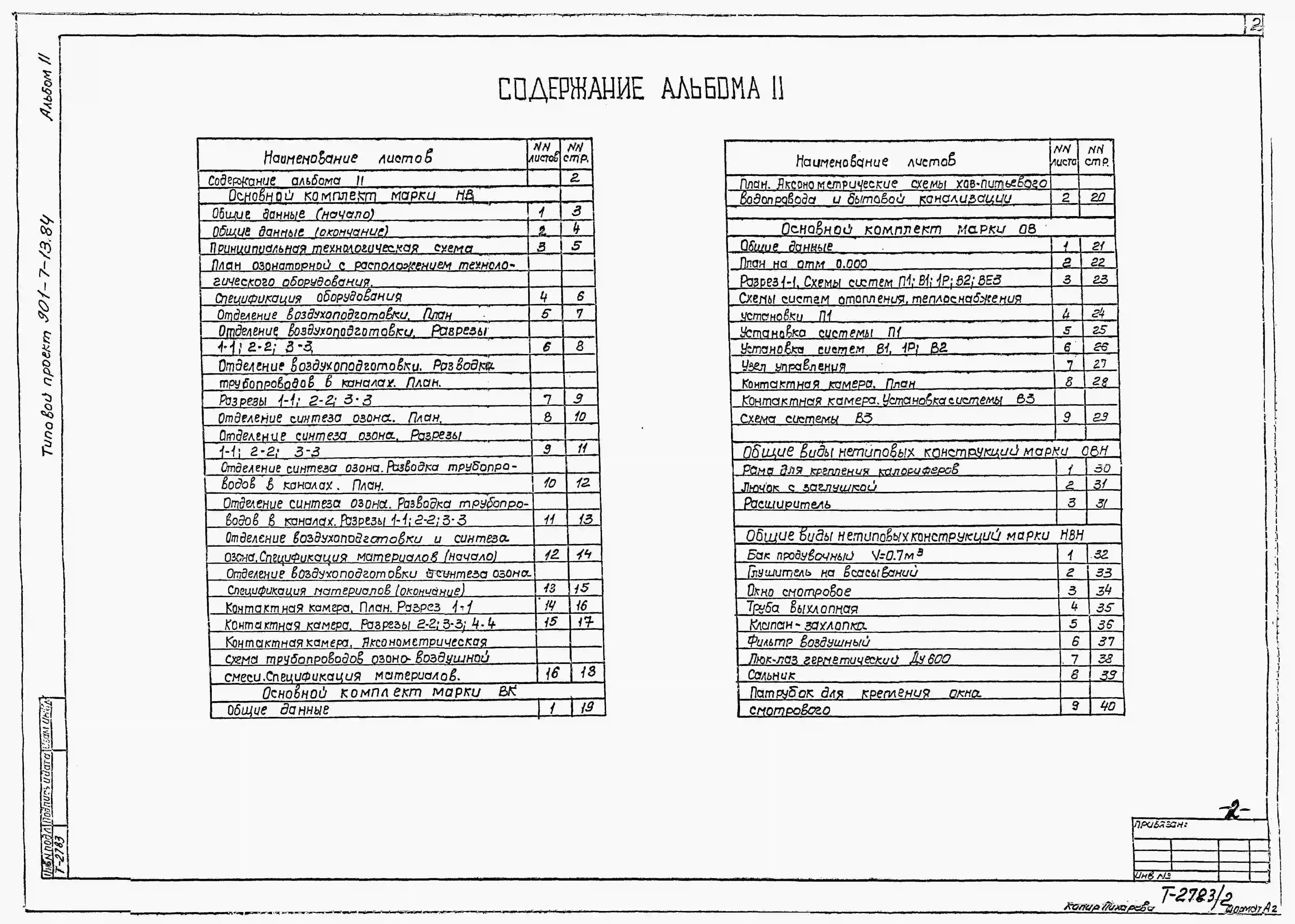 Типовой проект 901-7-13.84 Станция озонирования природных вод производительностью 12кг/ч по озону