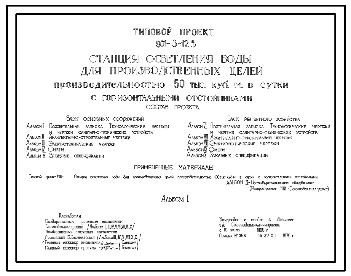 Типовой проект 901-3-125 Станция осветления воды для производственных целей производительностью 50 тыс. м.куб./сутки с горизонтальными отстойниками