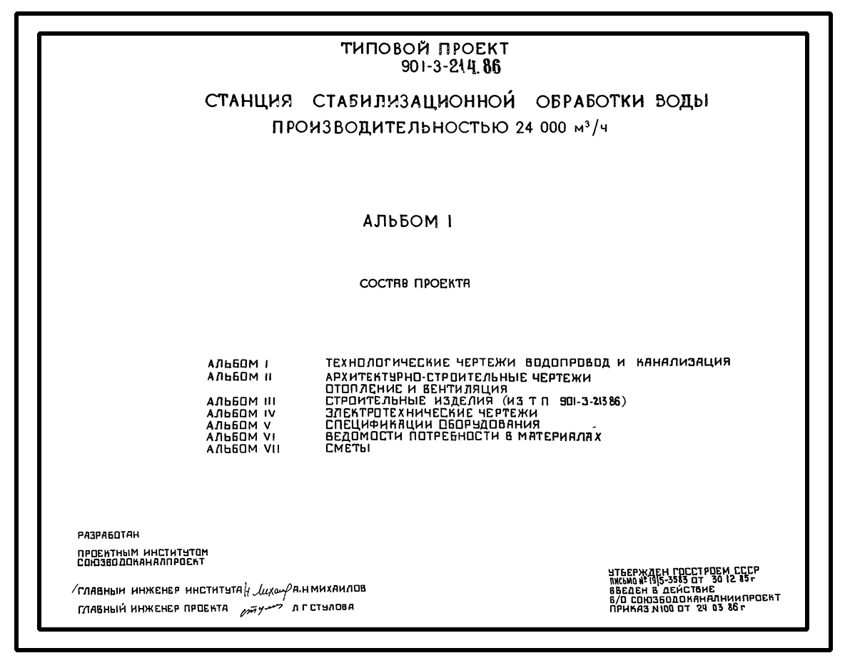 Типовой проект 901-3-214.86 Станция стабилизационной обработки оборотной воды производительностью 24000 м3/ч