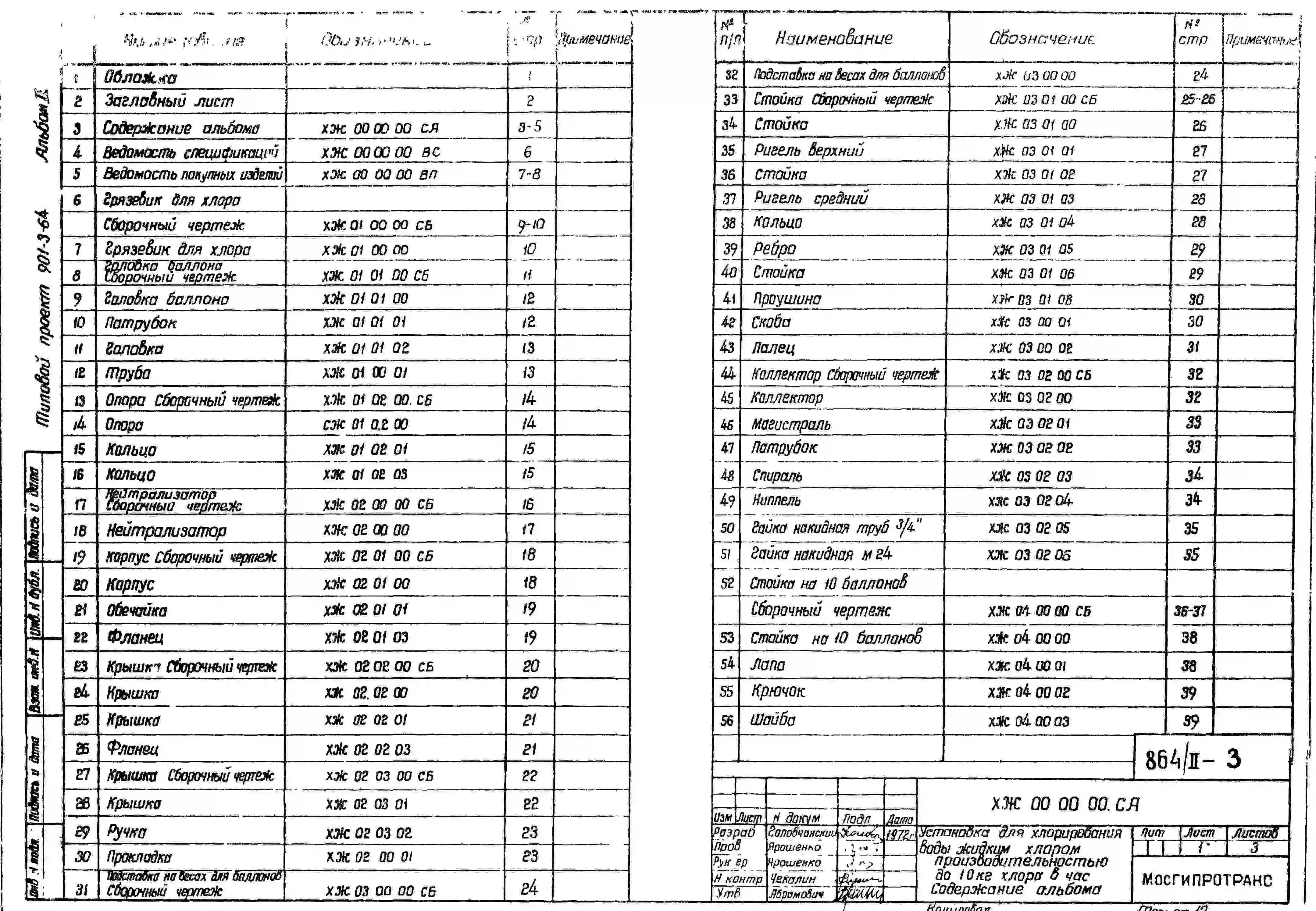 Типовой проект 901-3-64 Установка для хлорирования воды жидким хлором производительностью до 1,0 кг хлора в час