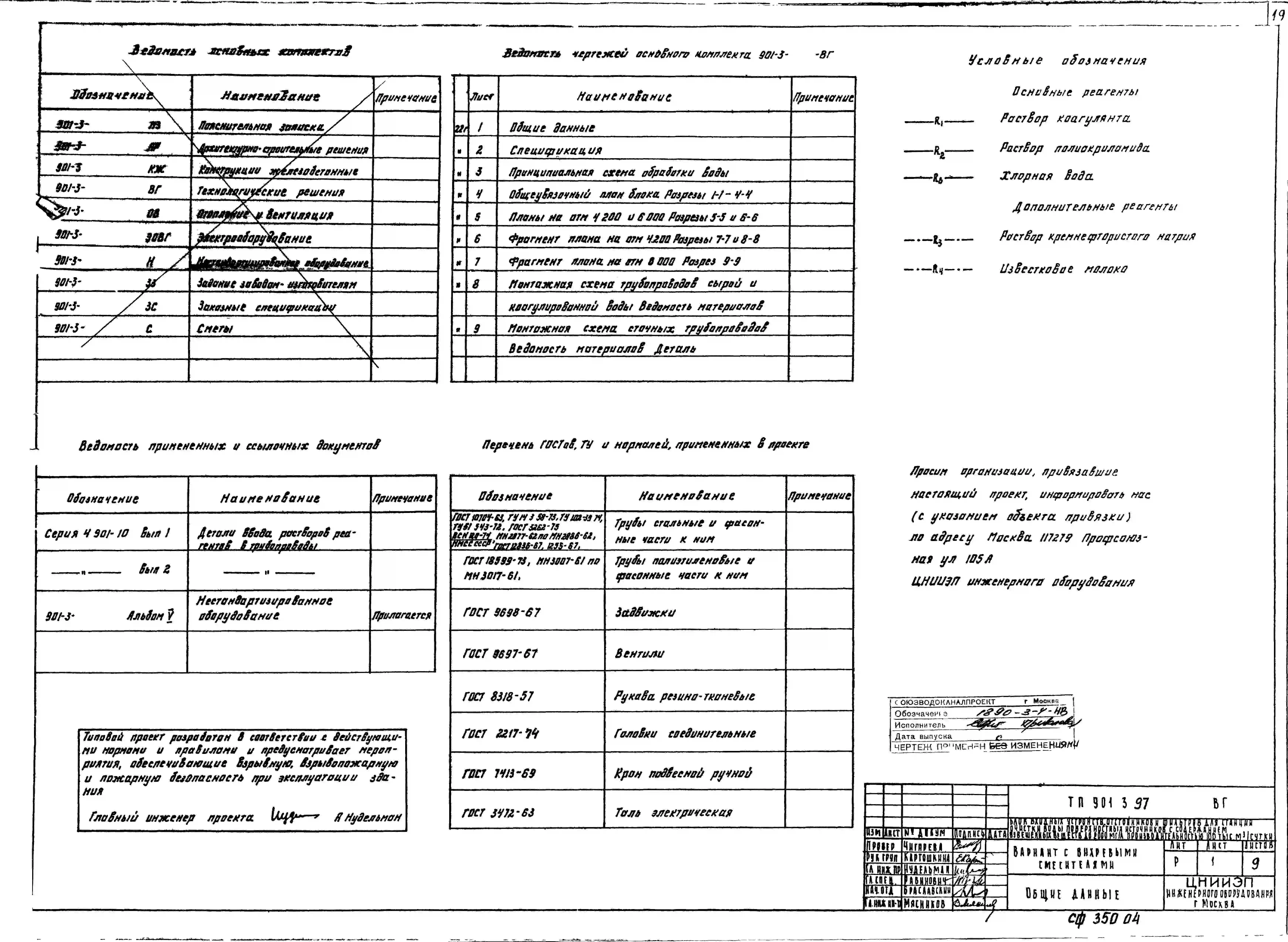 Типовой проект 901-3-97 Блок входных устройств, отстойников и фильтров с содержанием взвешенных веществ до 2000 мг/л производительностью 100 тыс. м3/сутки (вариант с вихревыми смесителем)