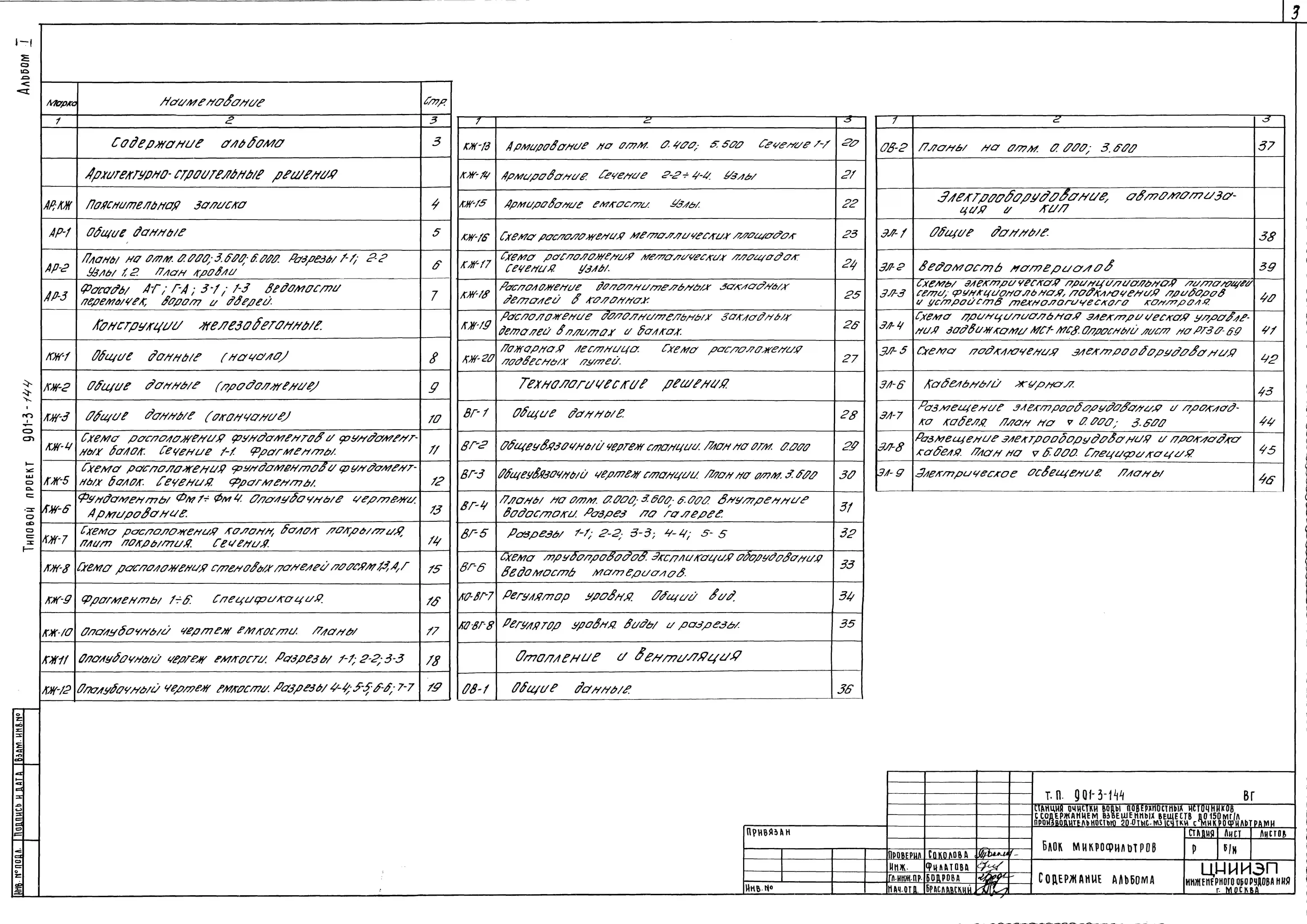 Типовой проект 901-3-144 Блок микрофильтров для станции очистки воды поверхностных источников с содержанием взвешенных веществ до 150 мг/л производительностью 20,0 тыс. м3/сутки