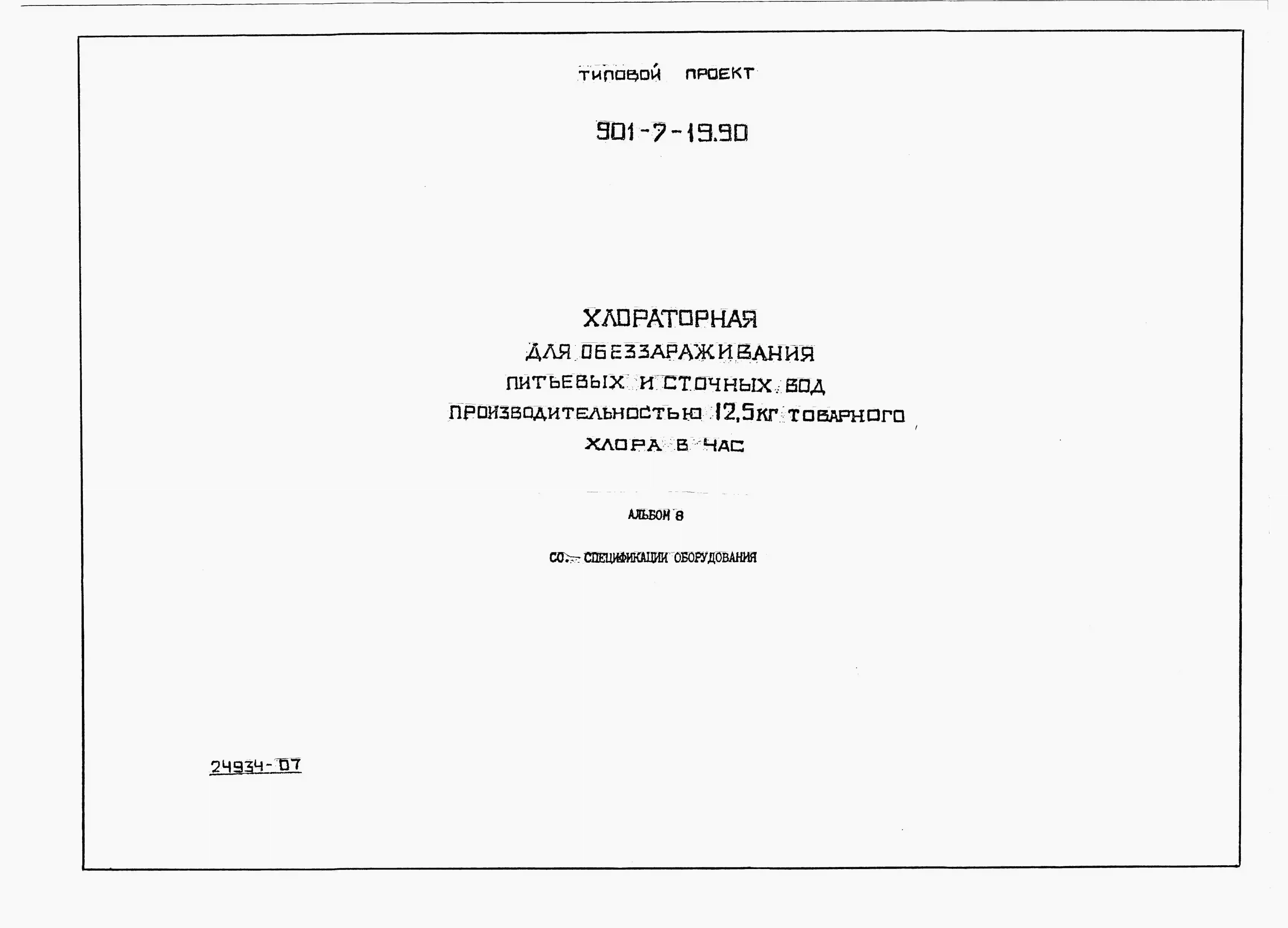 Типовой проект 901-7-19.90 Хлораторная для обеззараживания питьевых и сточных вод производительностью 12,5 кг товарного хлора в час