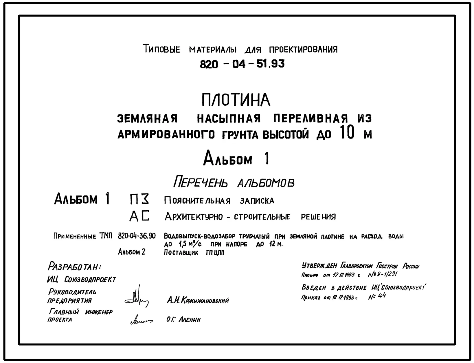 Типовой проект 820-04-51.93 Плотина земляная насыпная переливная из армированного грунта высотой до 10 м