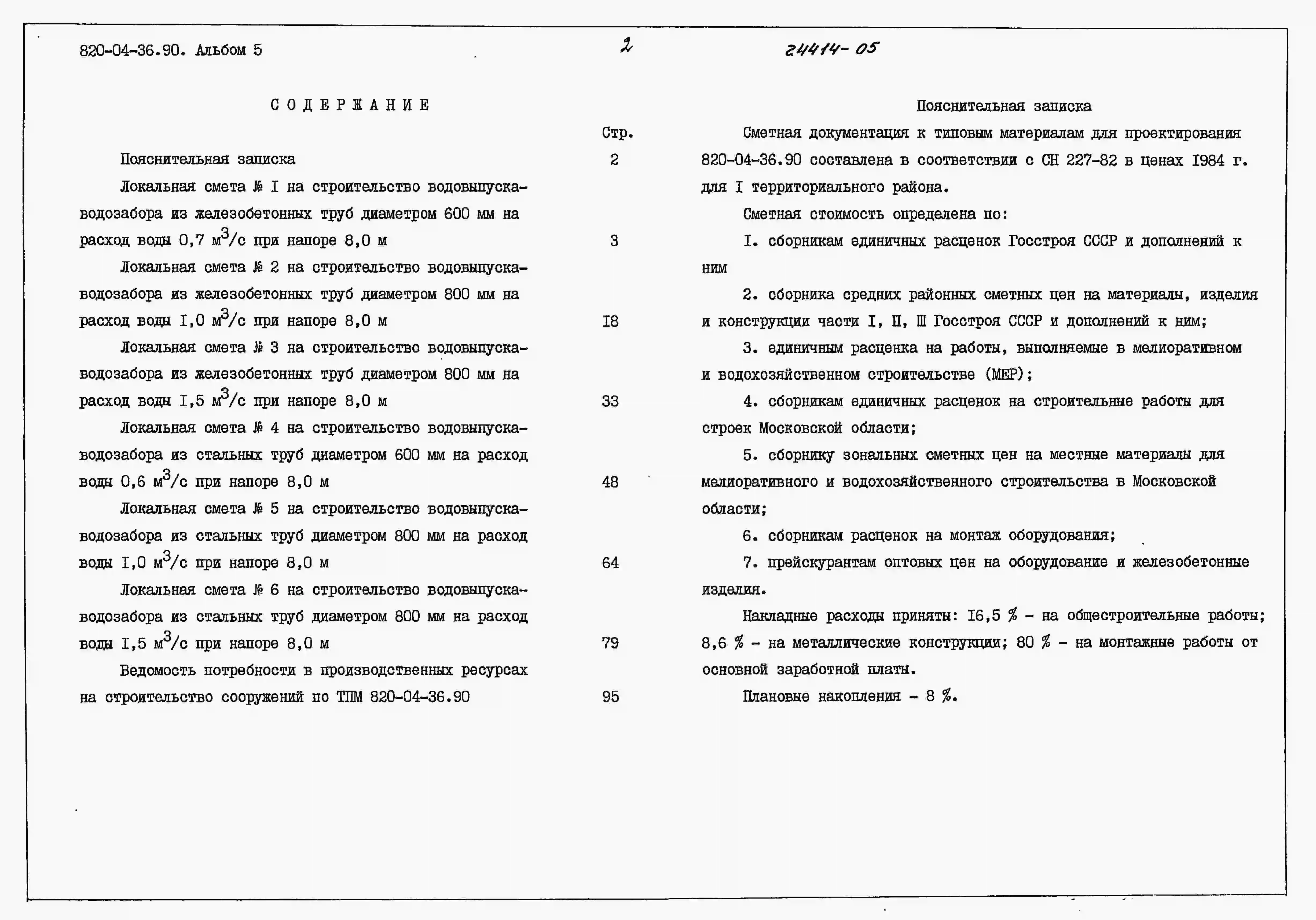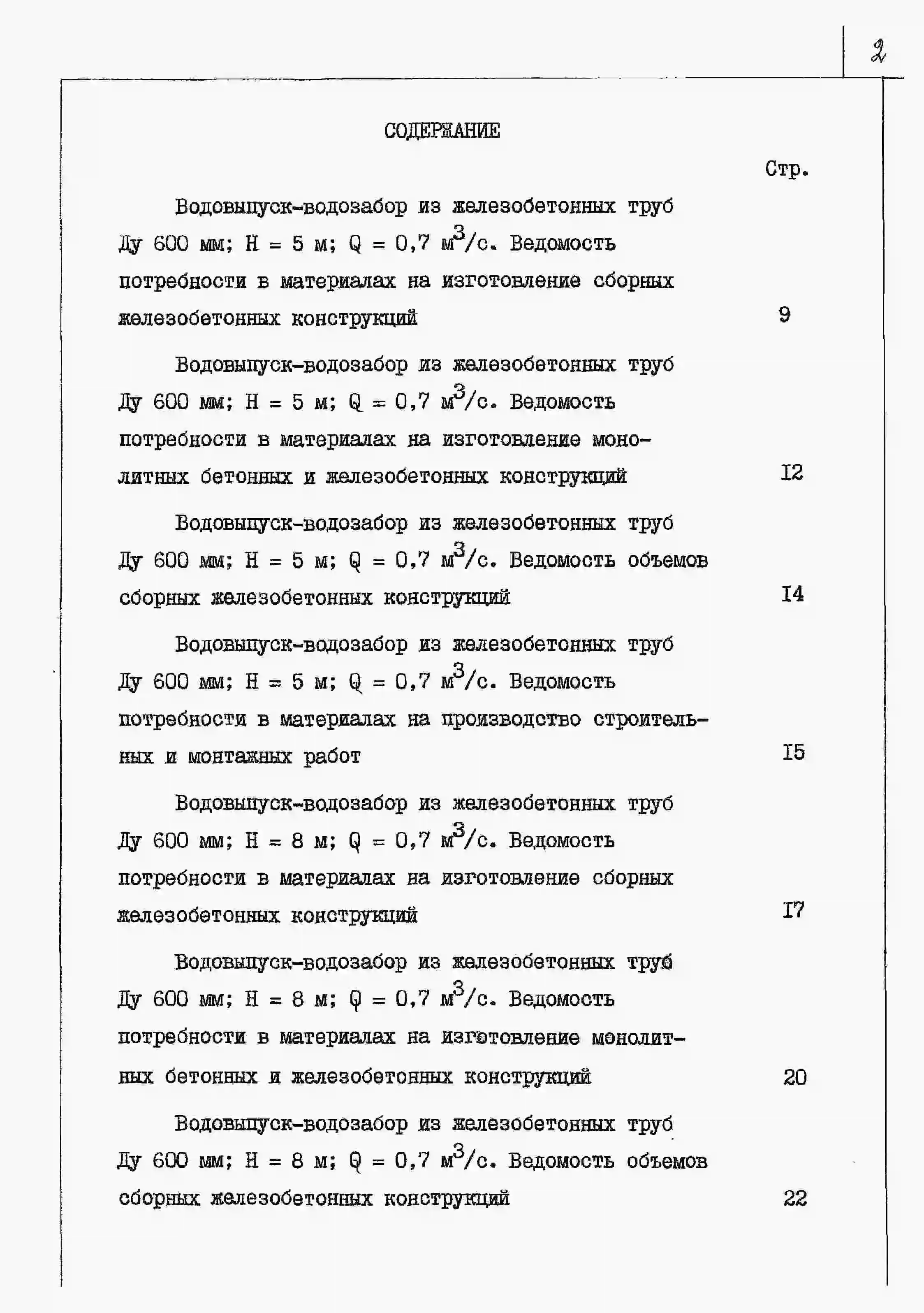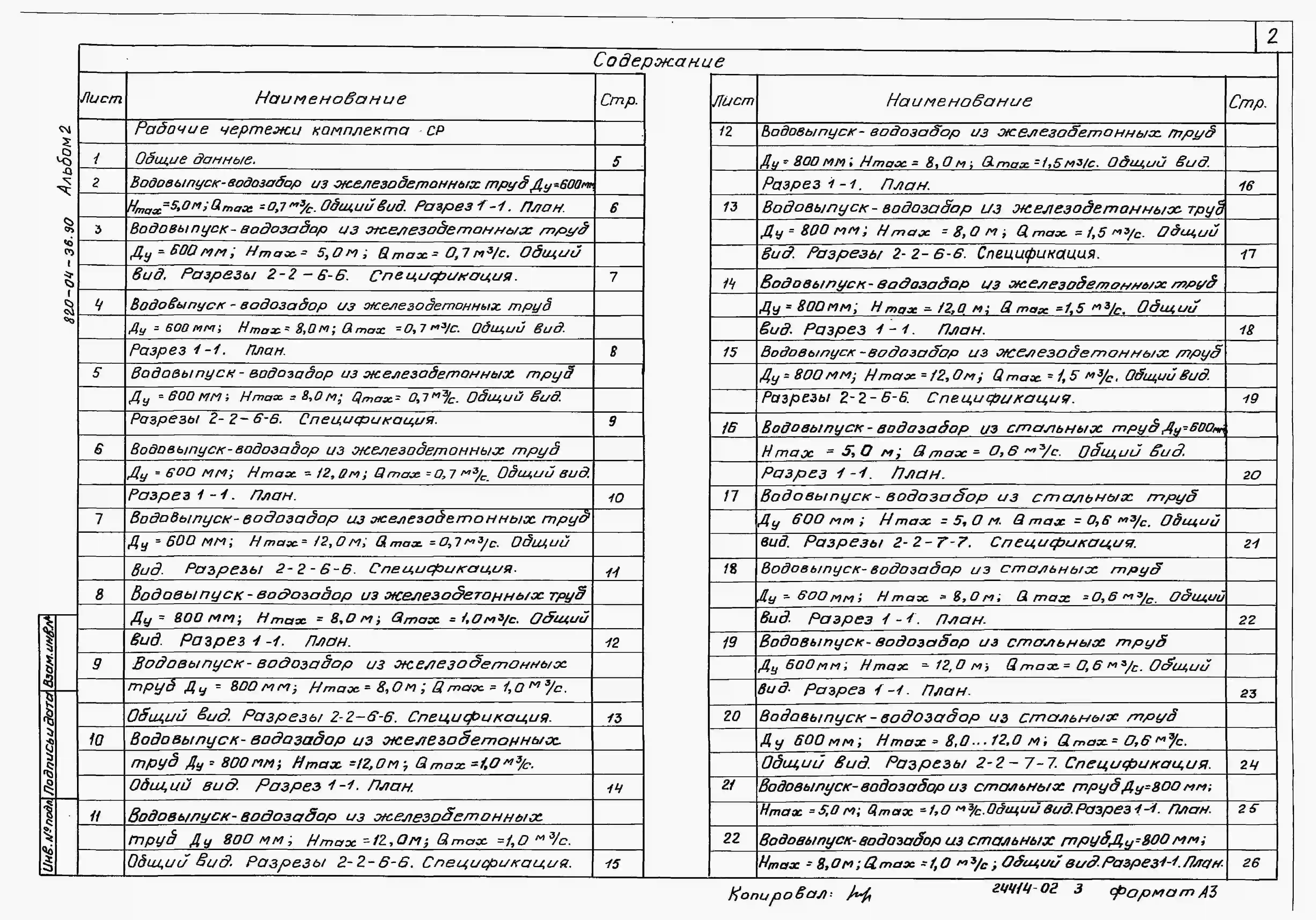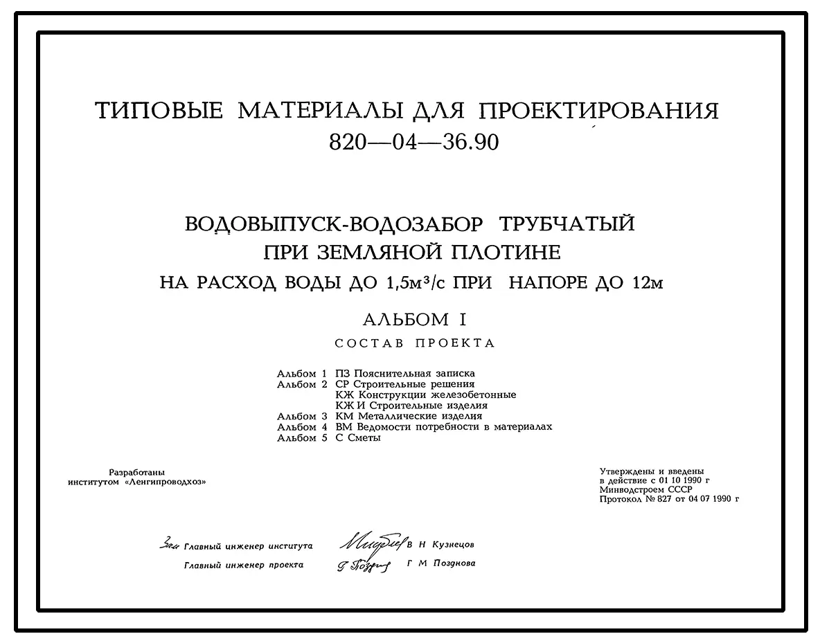 Типовой проект 820-04-36.90 Водовыпуск-водозабор трубчатый при земляной плотине на расход воды до 1,5 м3/с при напоре до 12 м